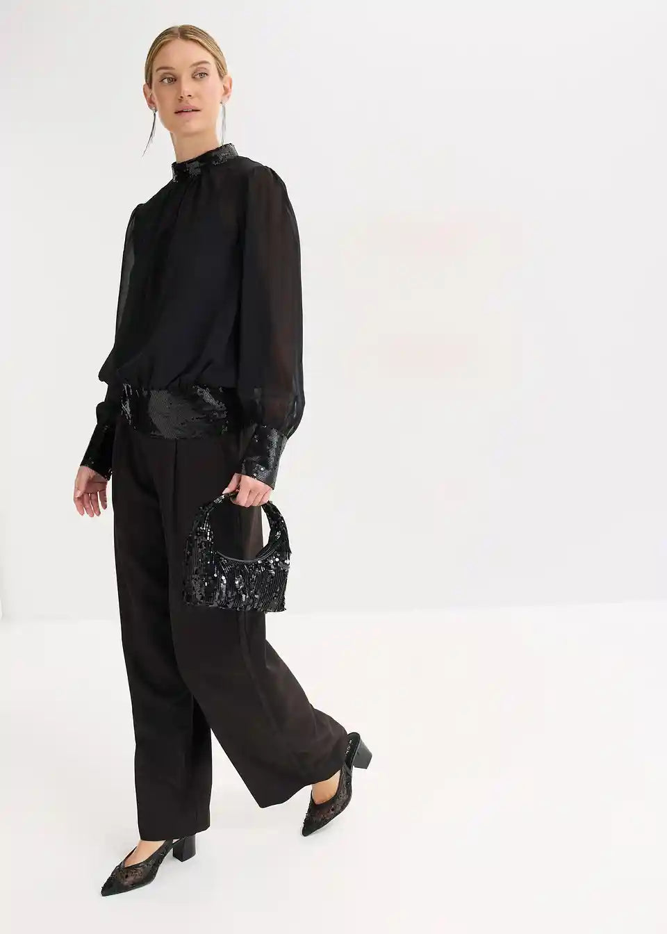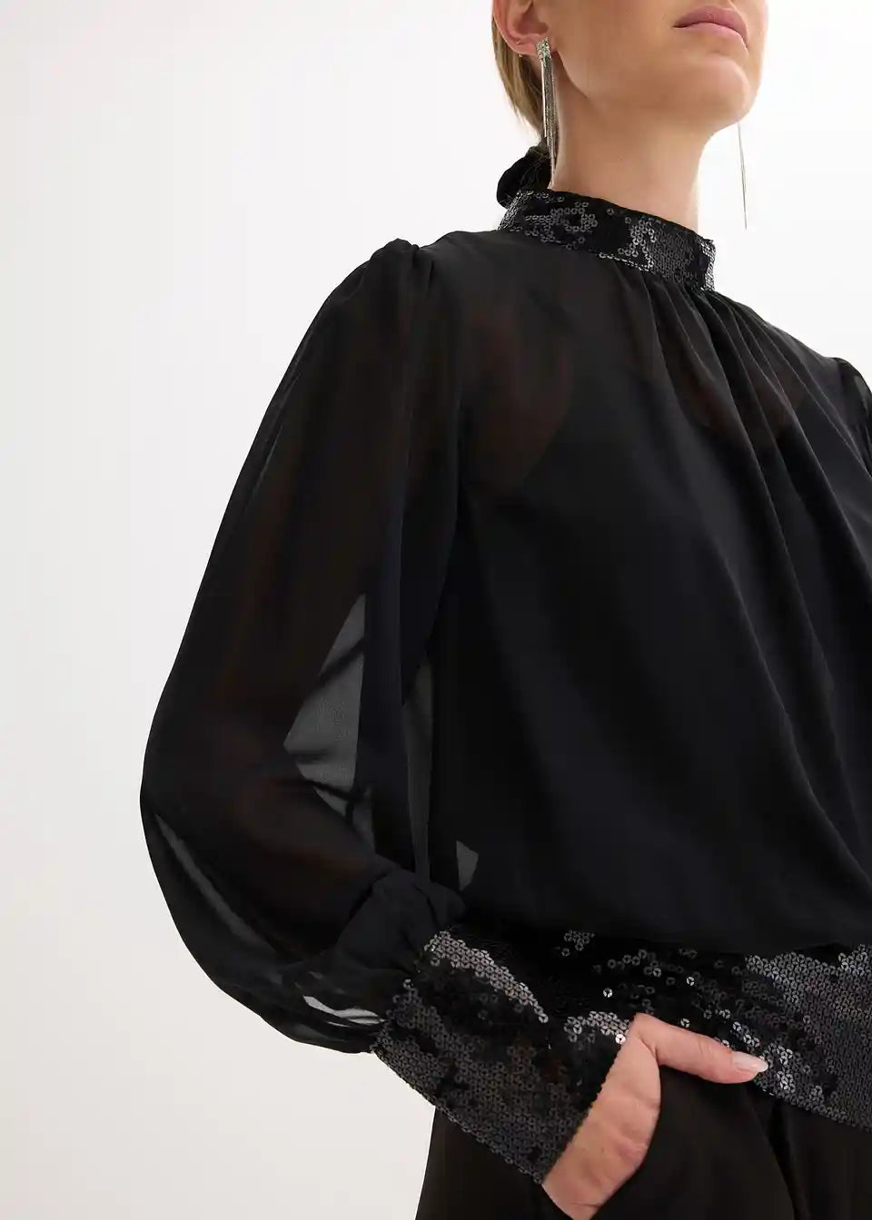 Moderna i ženstvena: bluza od finog šifona s podstavom i umetkom s paetama