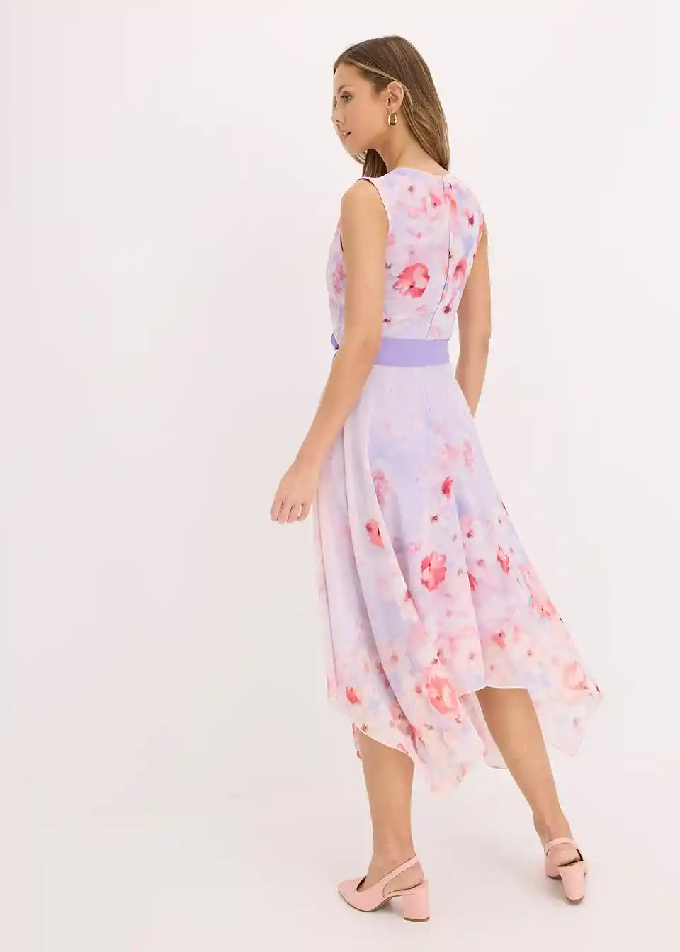 Haljina od šifona asimetrične linije s trakom za vezanje