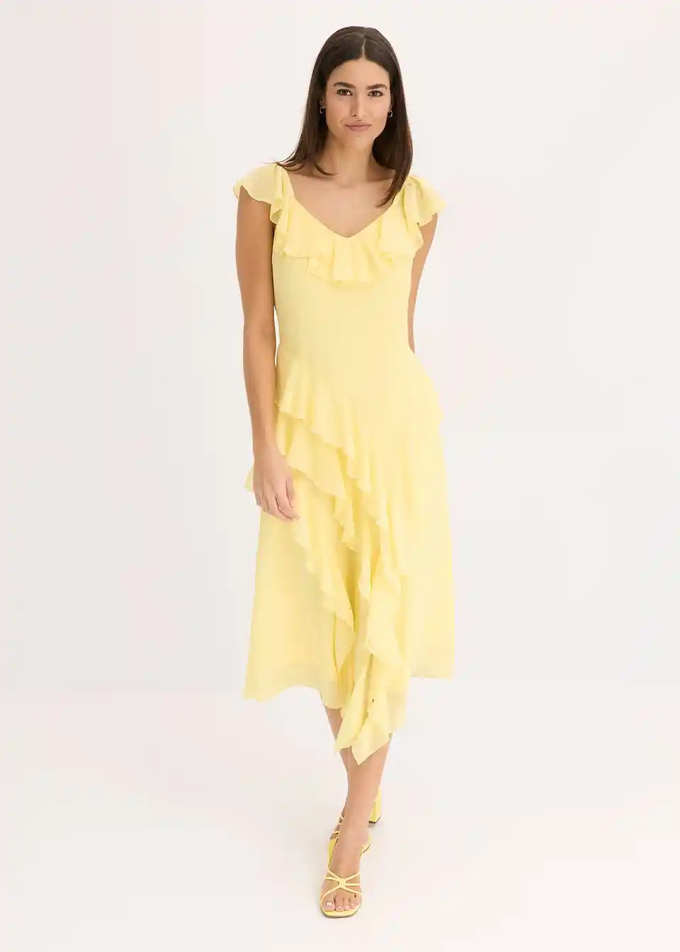 Romantična i moderna: večernja haljina od finog šifona s višeslojnim volanima