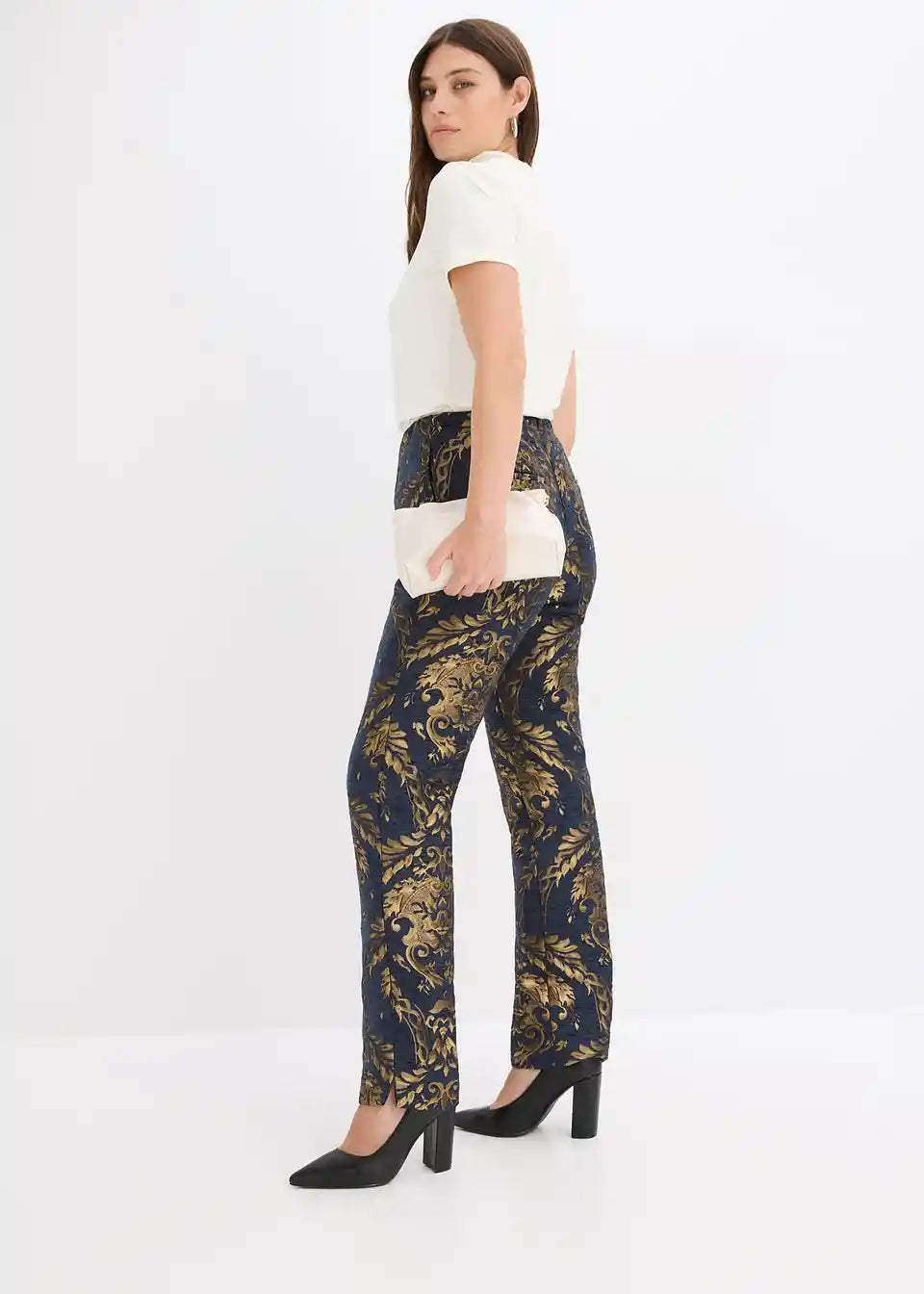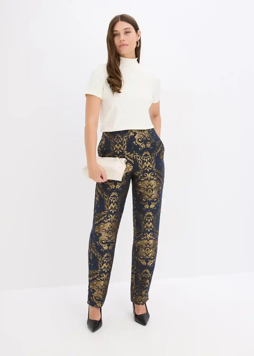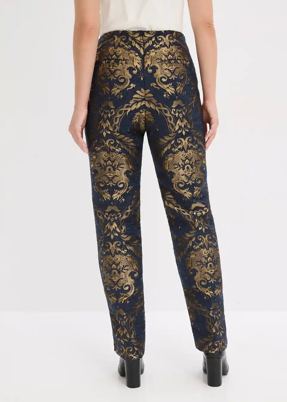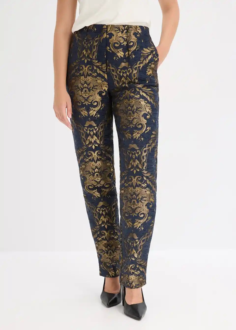 Moderne i ženstvene: duge jacquard-hlače od sjajnog materijala