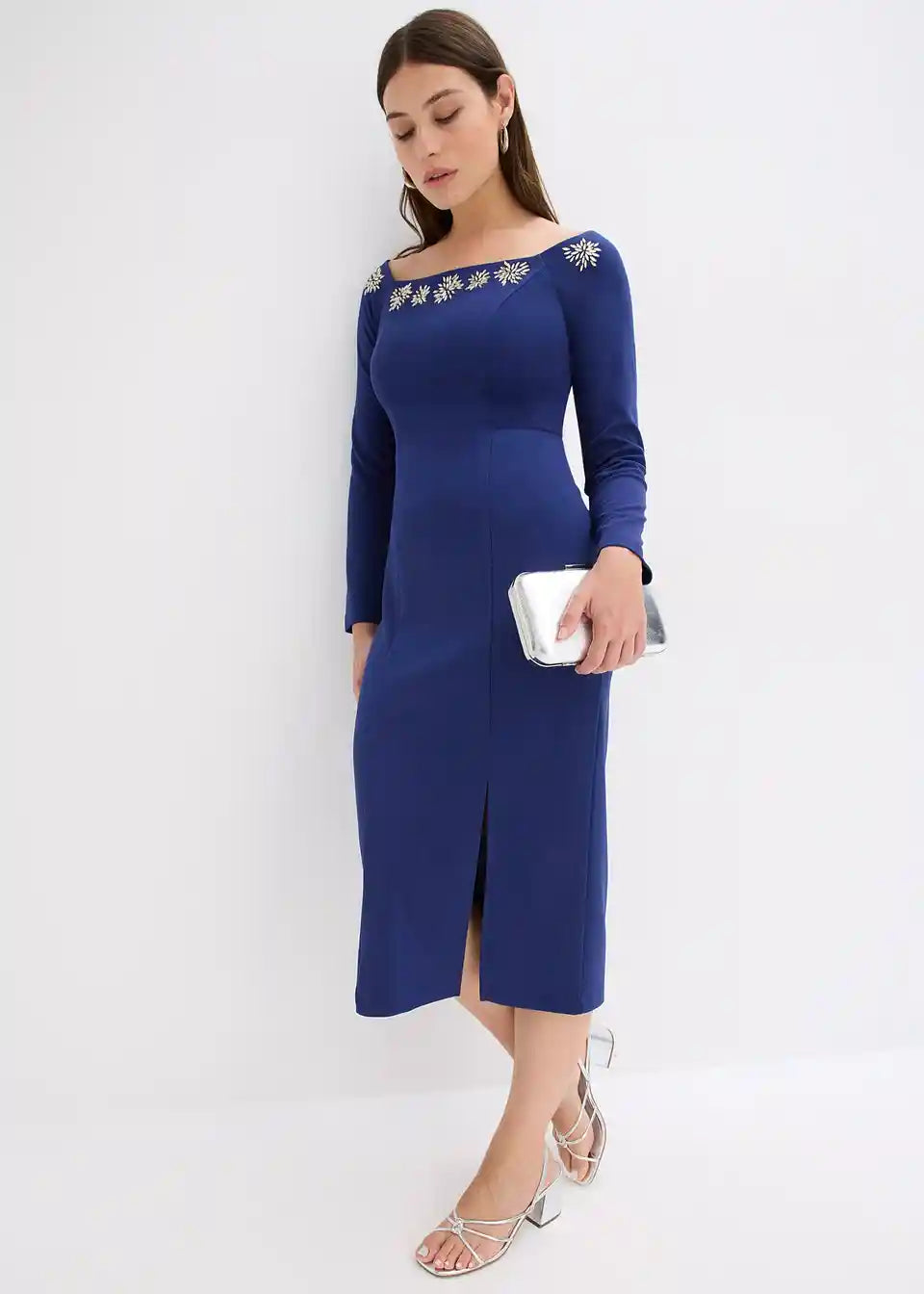 Moderno i ženstveno: haljina maksi dužine s Carmen izrezom i ukrasom od Stras kamenčića na izrezu