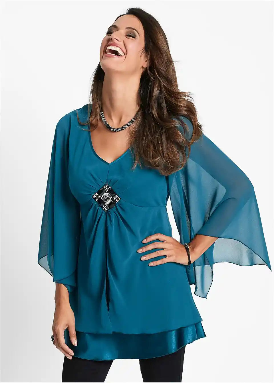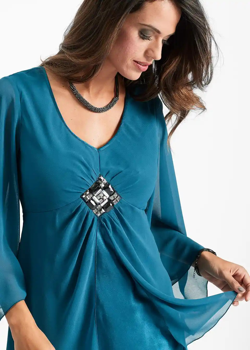 Ekstravagantna tunika s blistavim ukrasom sprijeda