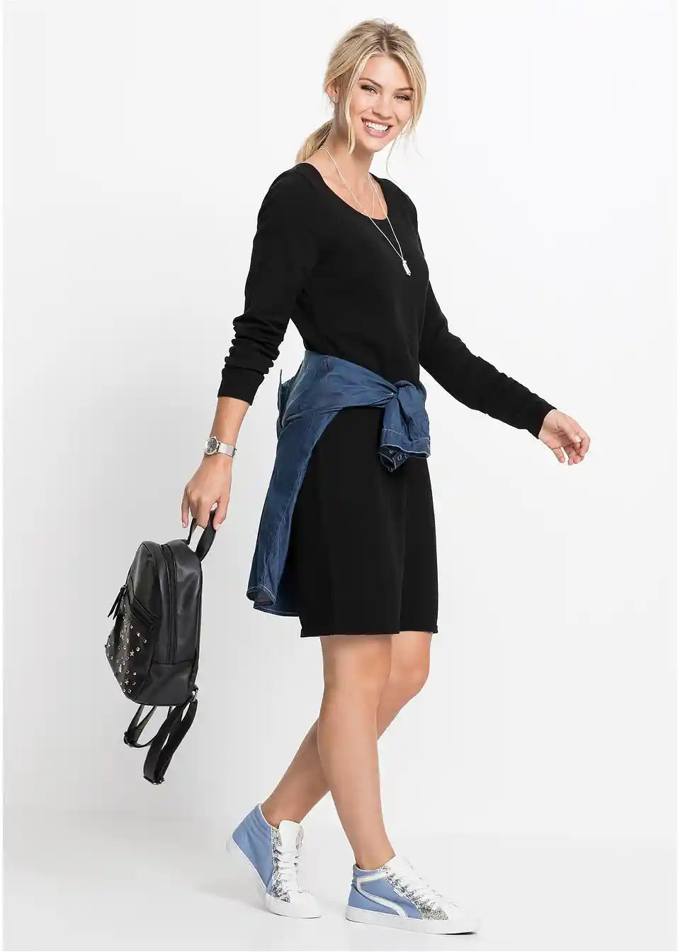 S ovom pletenom haljinom kreirate trendi izgled. Jednostavna haljina je ležerno krojena i zahvaljujući mekanom materijalu vrlo ugodna. S dodatnim okruglim izrezom i dugim rukavima dolazi do izražaja i ispod prsluka i pletenih jakni kao i samostalno sa statement ogrlicom. Haljina doseže otprilike do koljena.