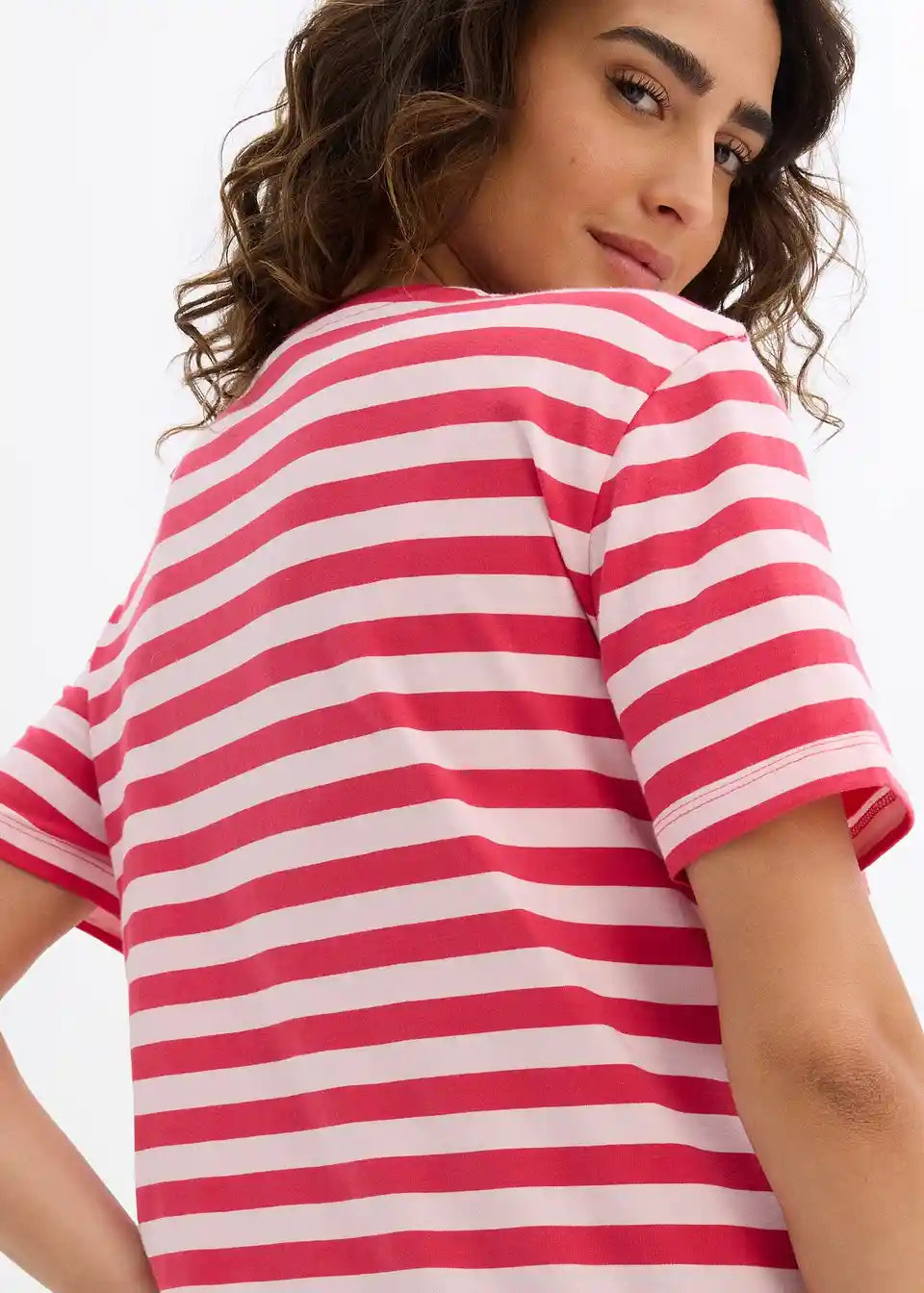 Mekane majice za trudnoću od jerseya s diskretnom funkcijom dojenja putem bočnog proreza za podizanje. Dizajn s dvostrukim slojevima pomaže u sprječavanju gubitka topline i omogućuje ugodno dojenje za majku i dijete. S opuštenim ramenima i laskavim, poludugim rukavima.
