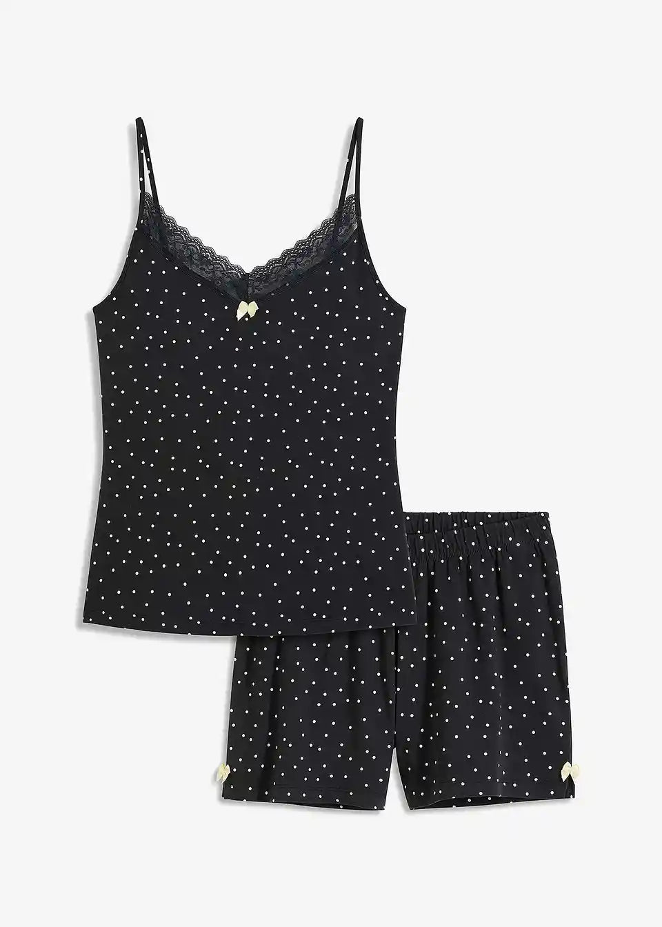 Kratka pidžama s dekorativnom čipkom i mašnama