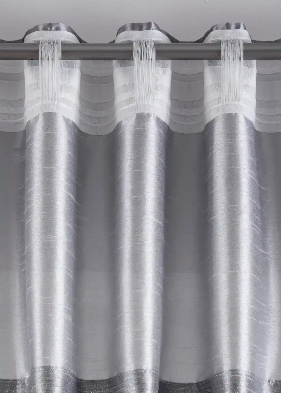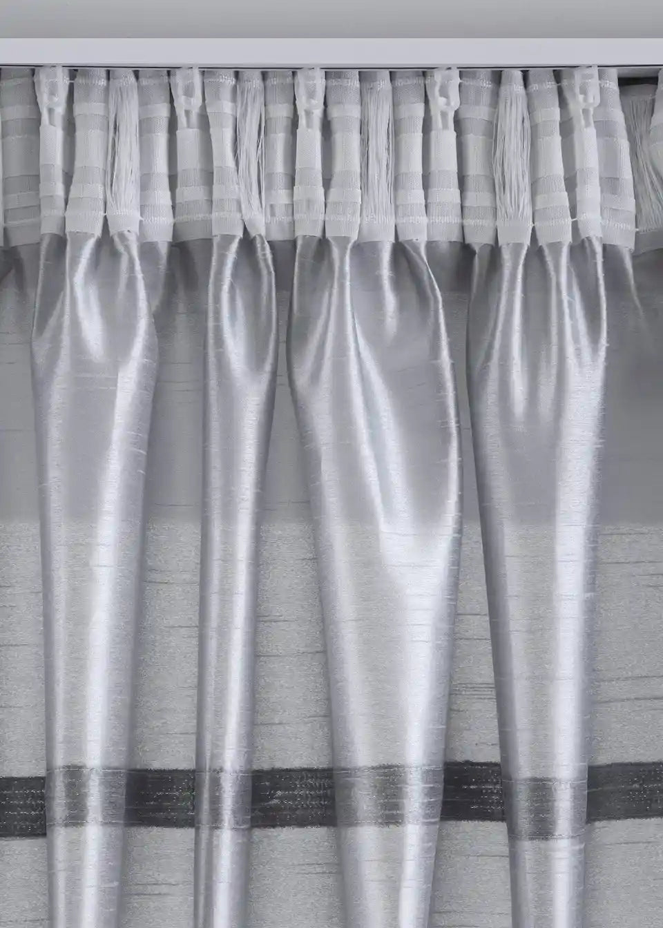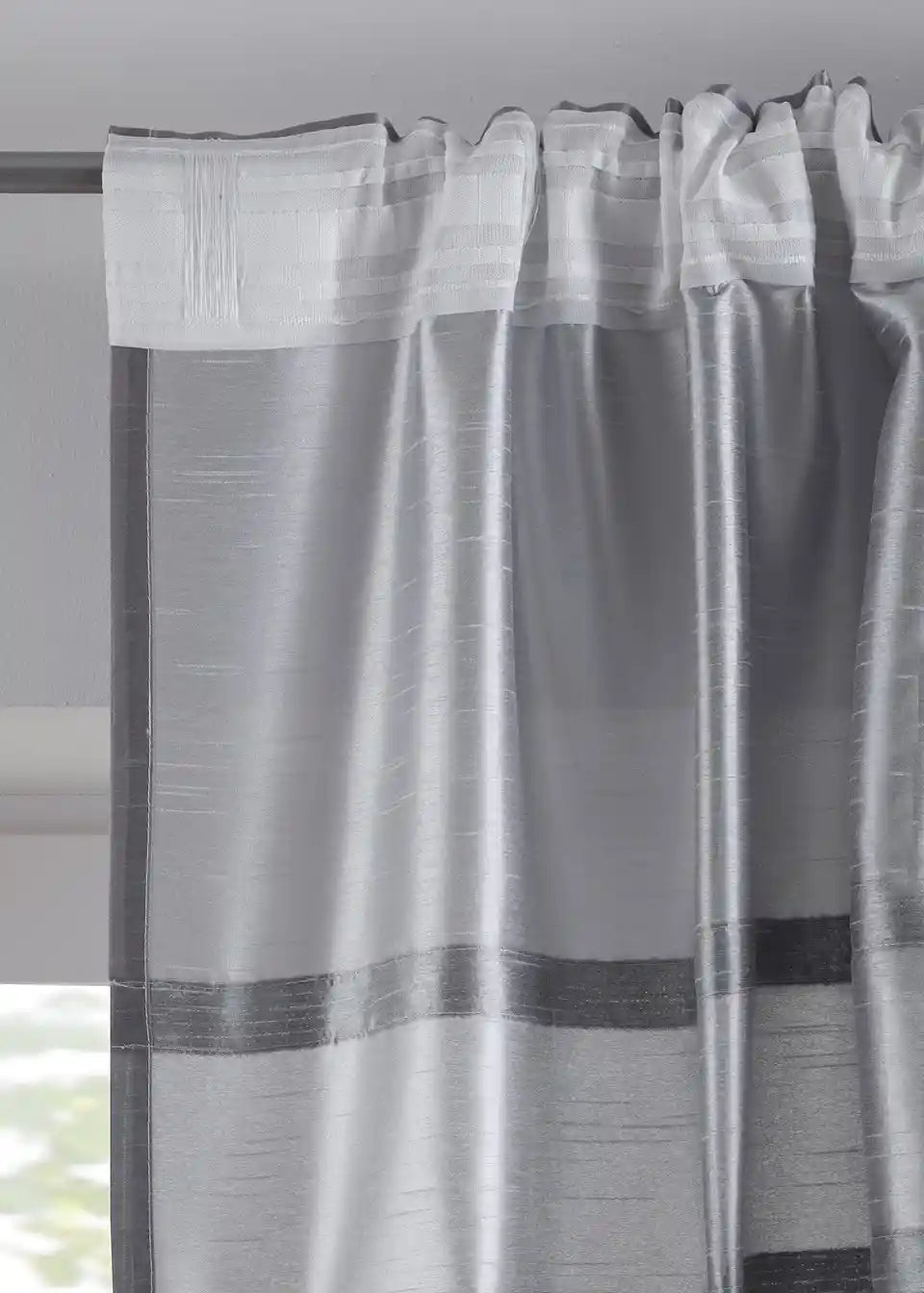 Glamurozna zavjesa s dekorativnim prugama i obojenim rubom. Jednostavna i sjajna, naša zavjesa se savršeno uklapa u tvoje prostorije!