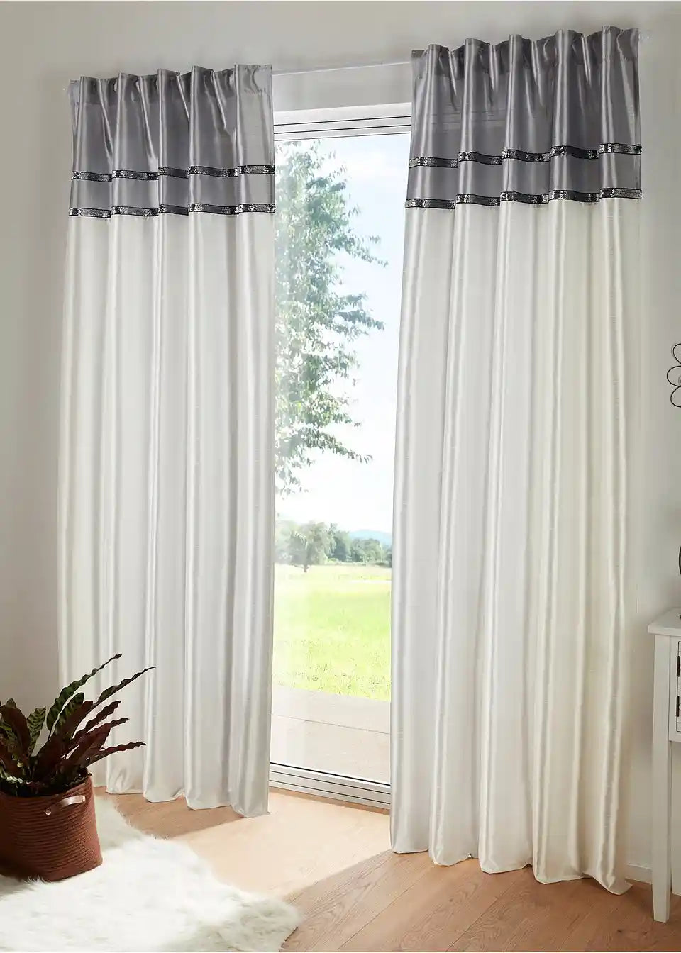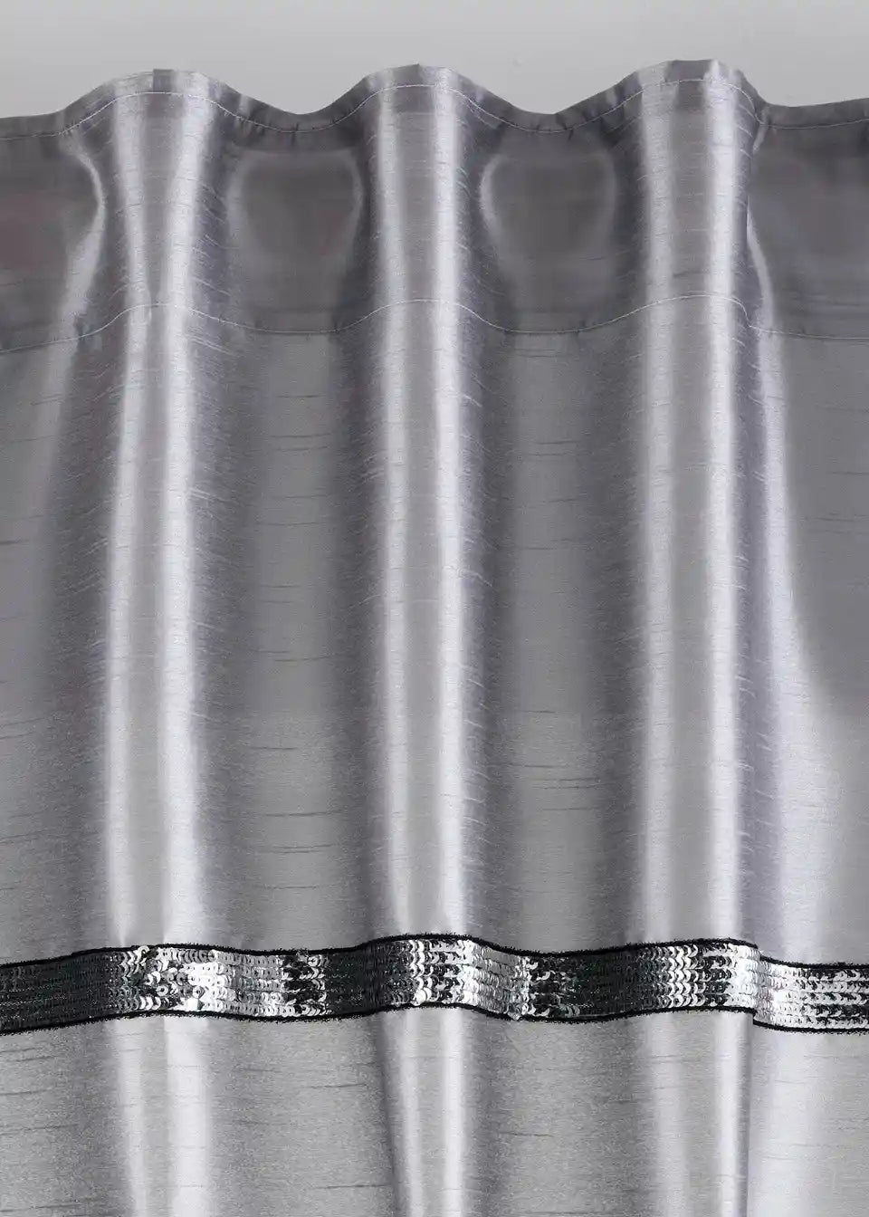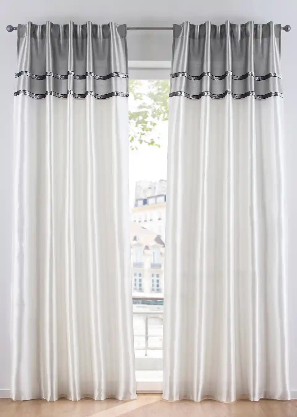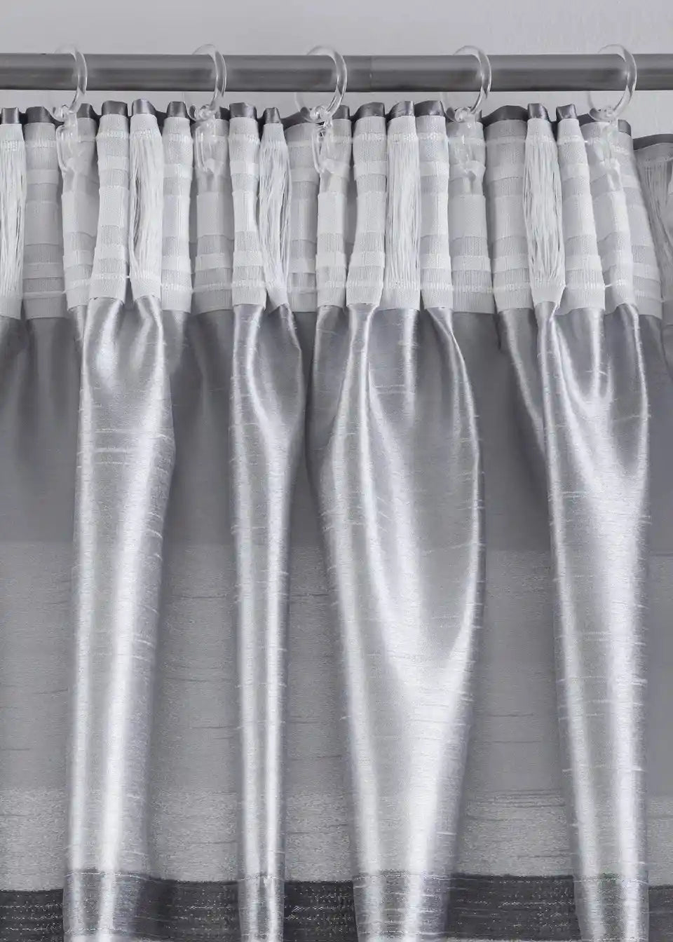 Glamurozna zavjesa s dekorativnim prugama i obojenim rubom. Jednostavna i sjajna, naša zavjesa se savršeno uklapa u tvoje prostorije!