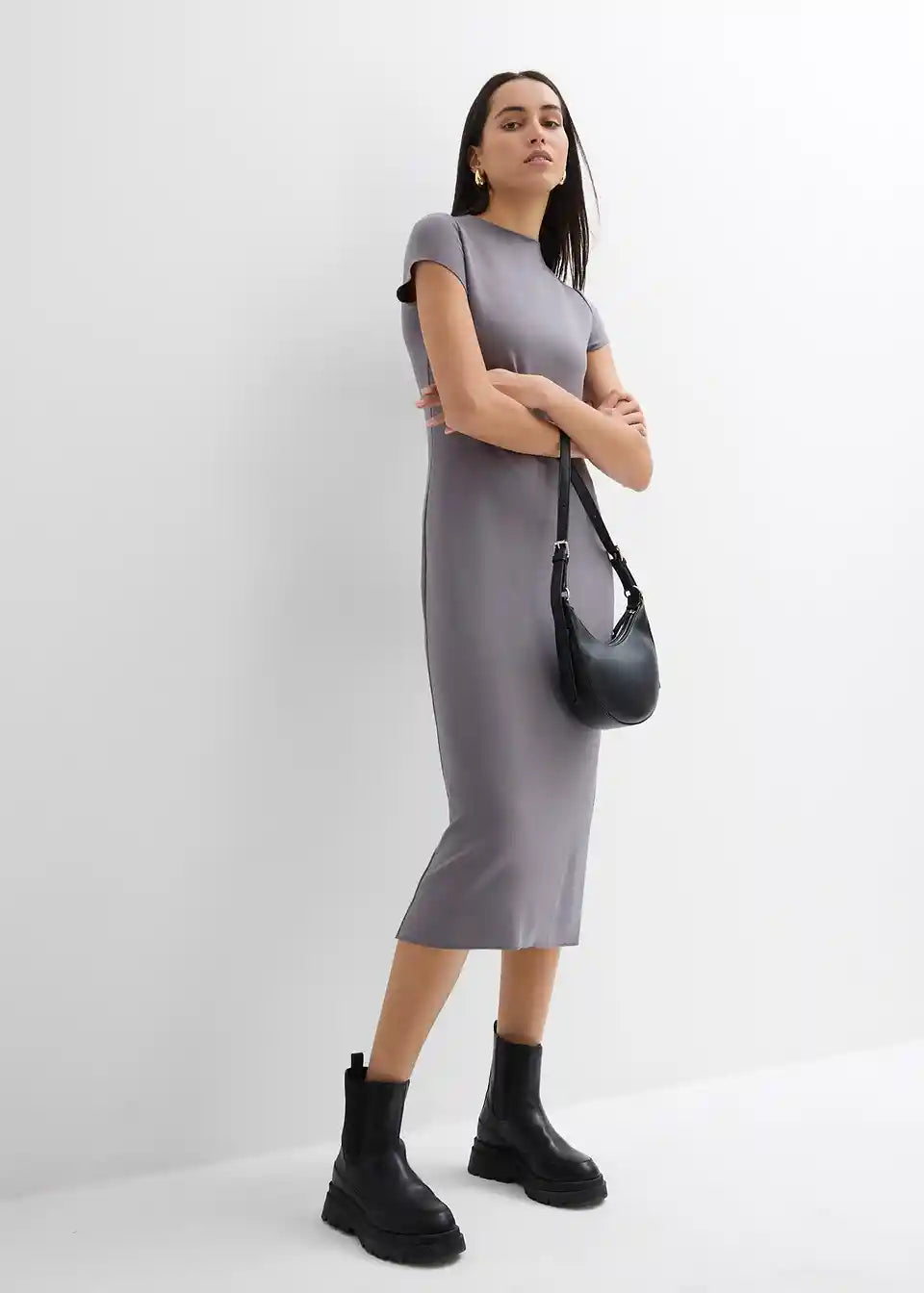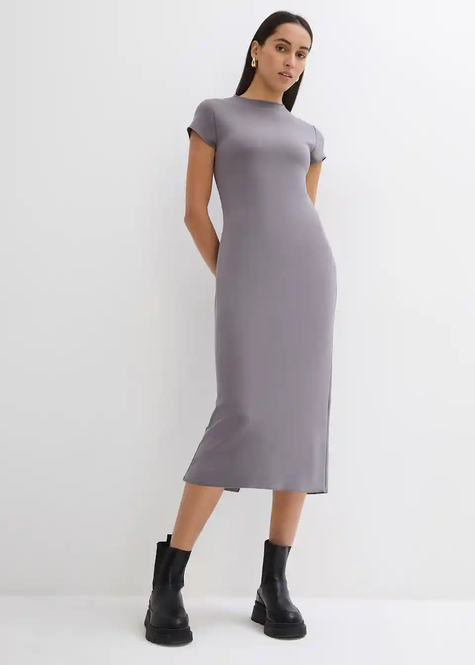 Pripijena midi haljina s kratkim rukavima