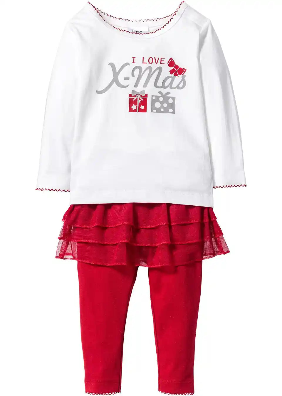 Božićna majica i tajice sa suknjicom od organskog pamuka za bebe