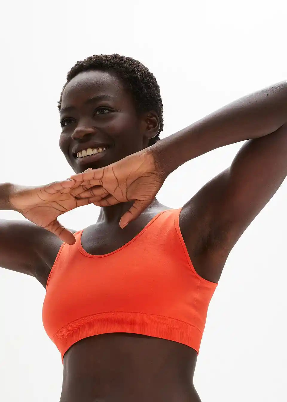 Bešavno izrađen sportski grudnjak s laganom potporom. Pogodan za košarice A-D.