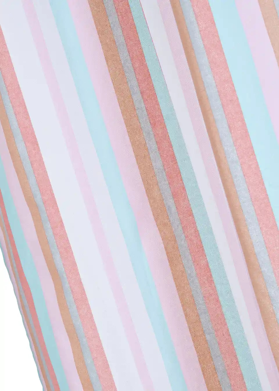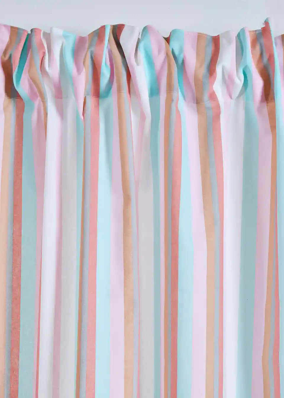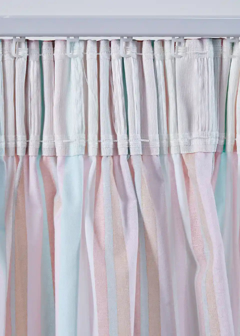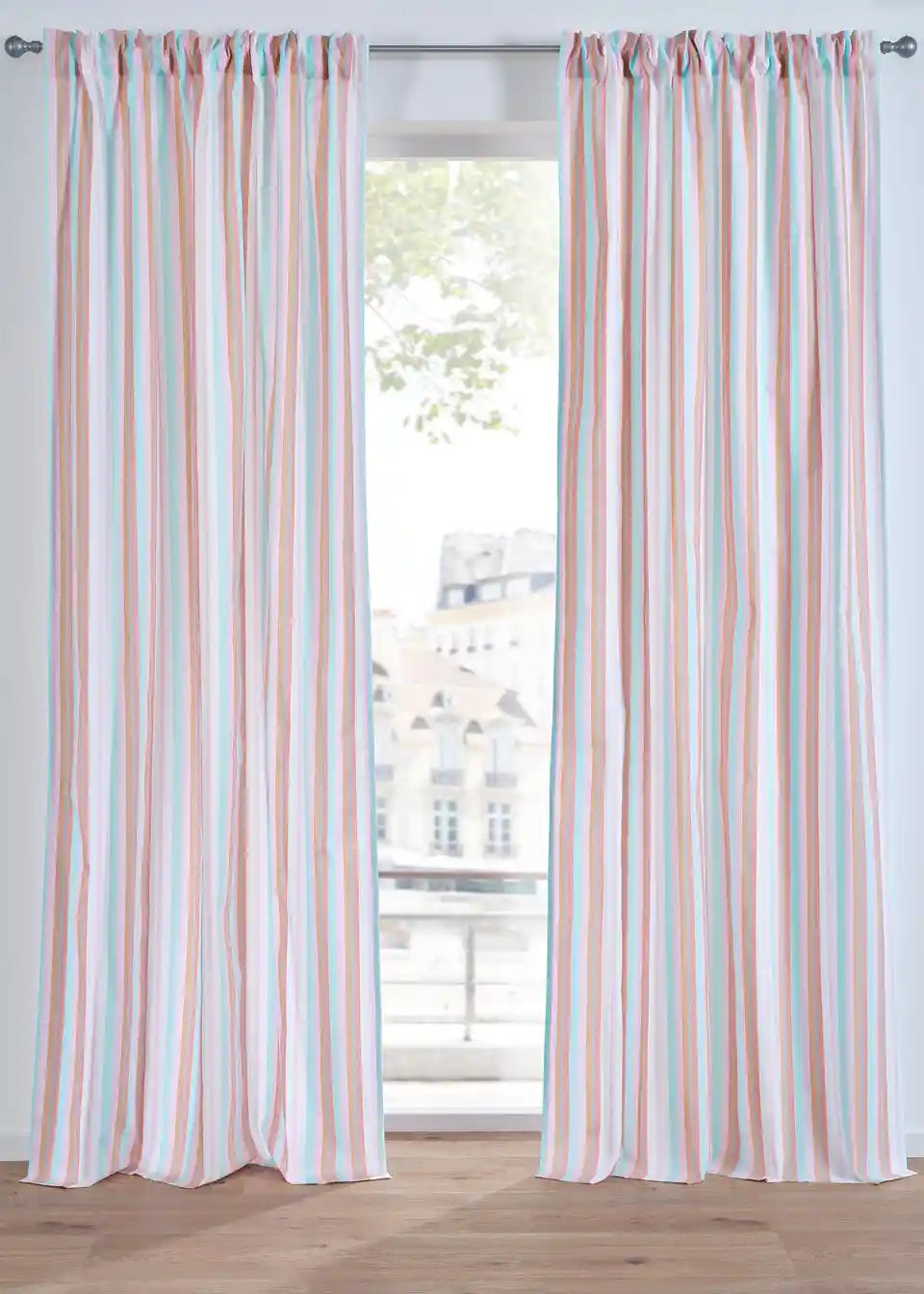 Zavjesa ima mekan dodir i izrađena je od visokokvalitetne bio pamuka. Fina pruga je otisnuta na prednjoj strani, dok je stražnja strana jednobojna bez uzorka.