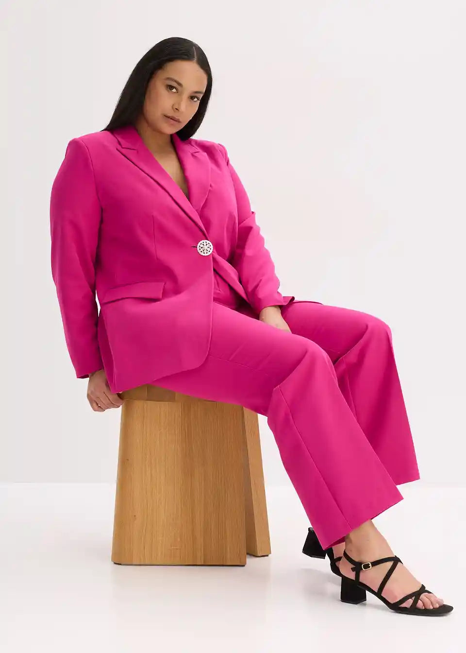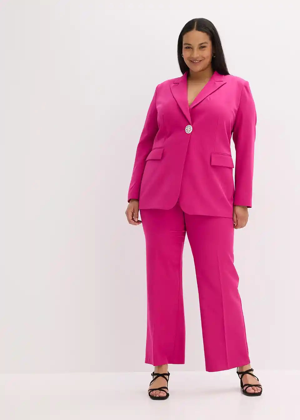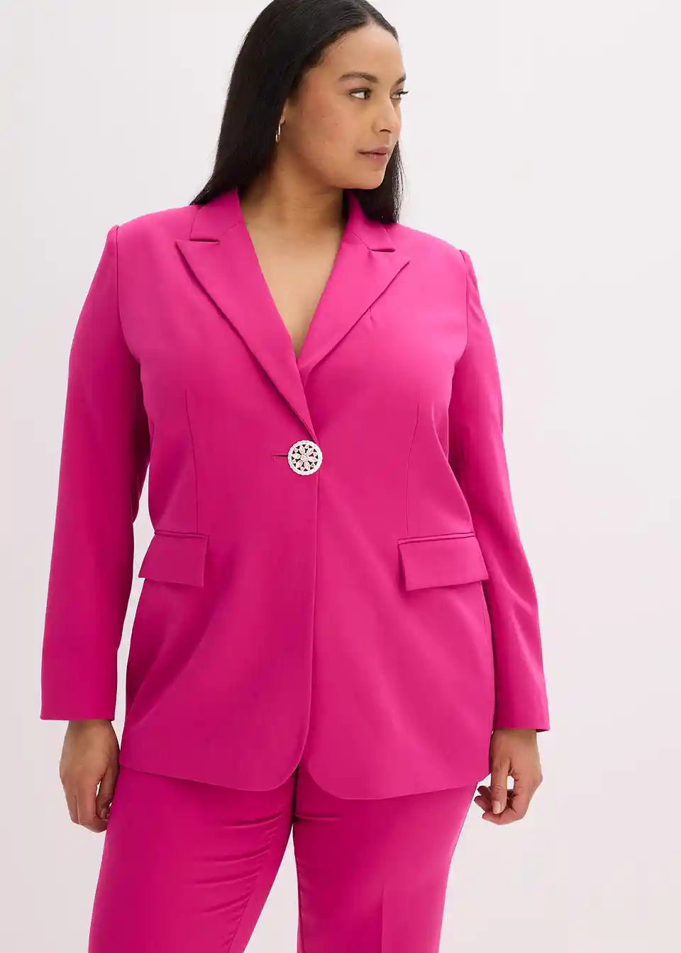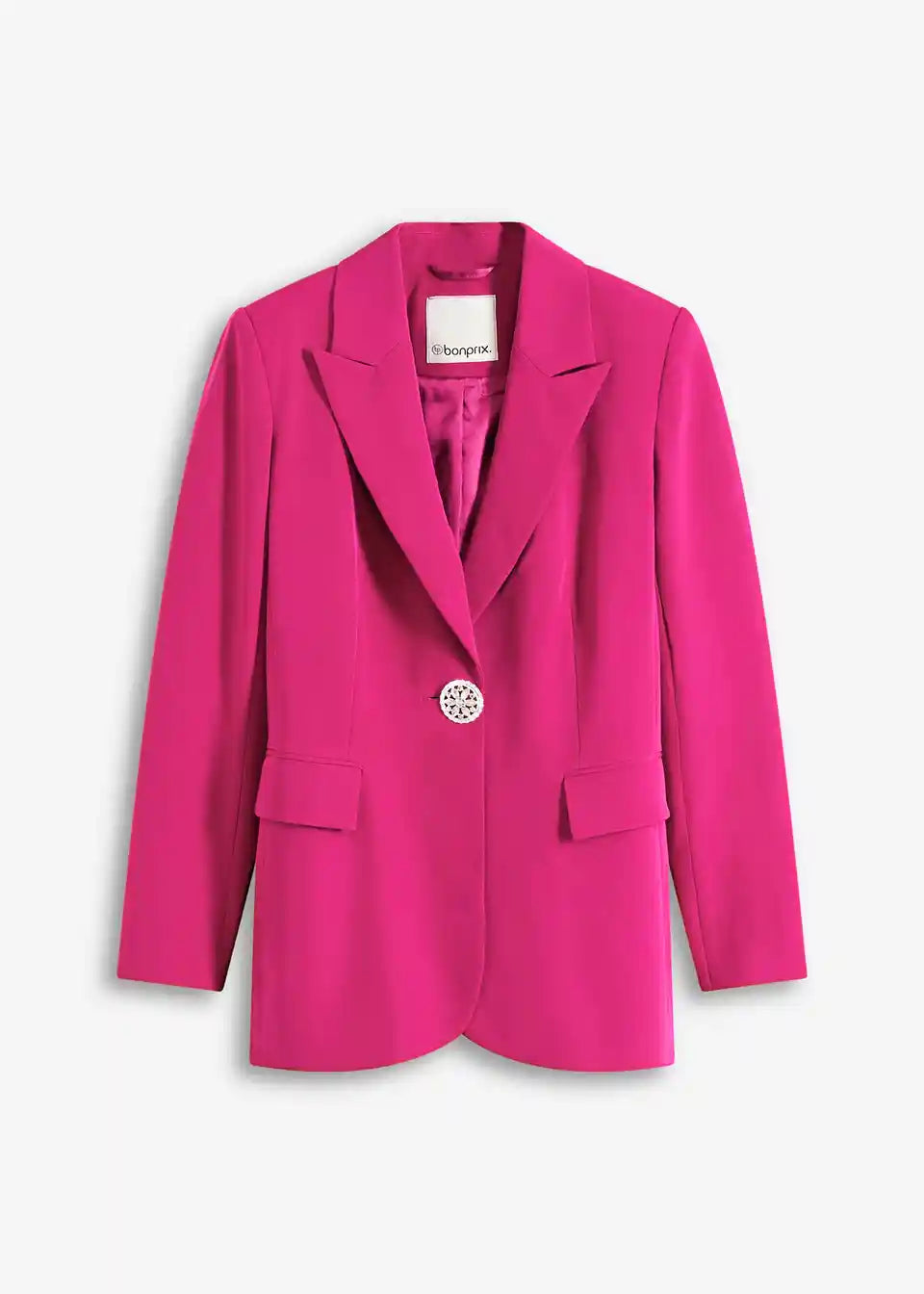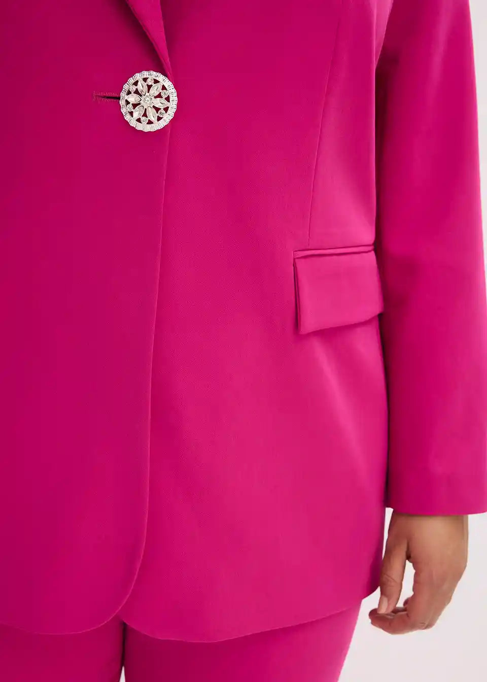 Moderan i ženstven: Blazer s laganim strukiranjem i ukrasnim gumbom sa sjajnim kamenčićima