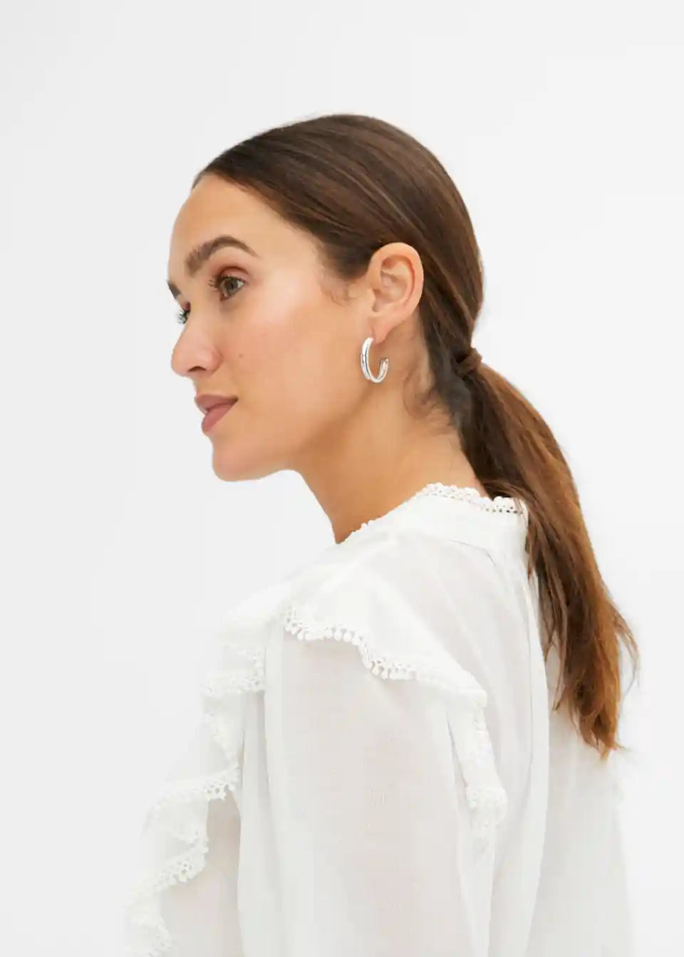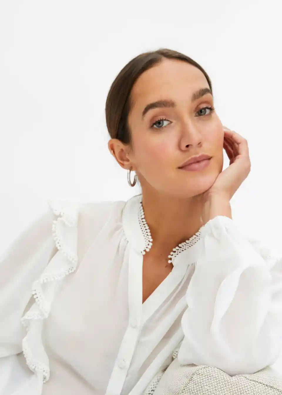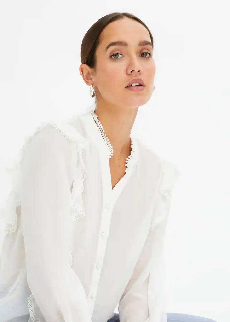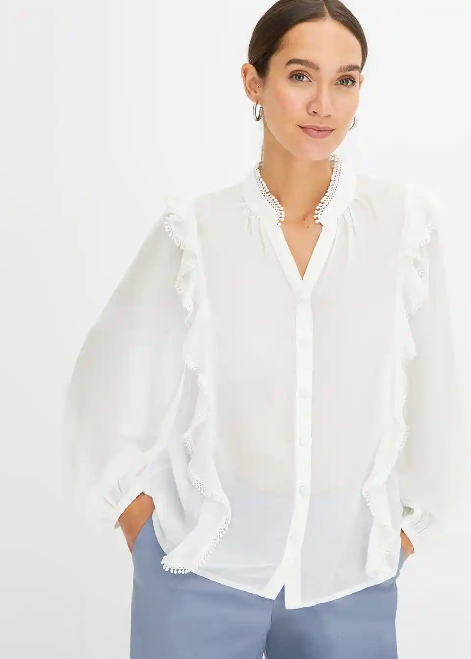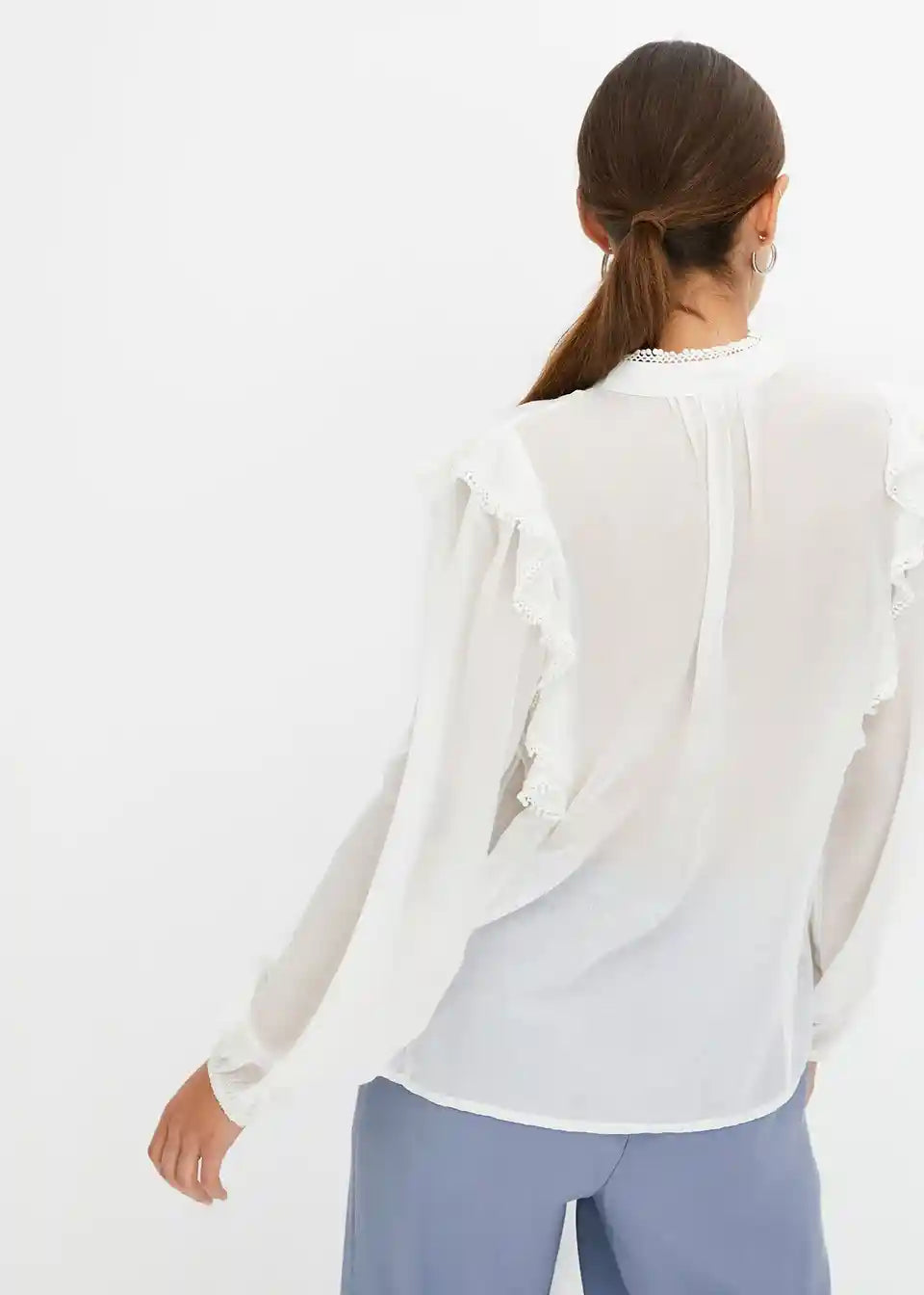feminina bluza s volanima i čipkom.