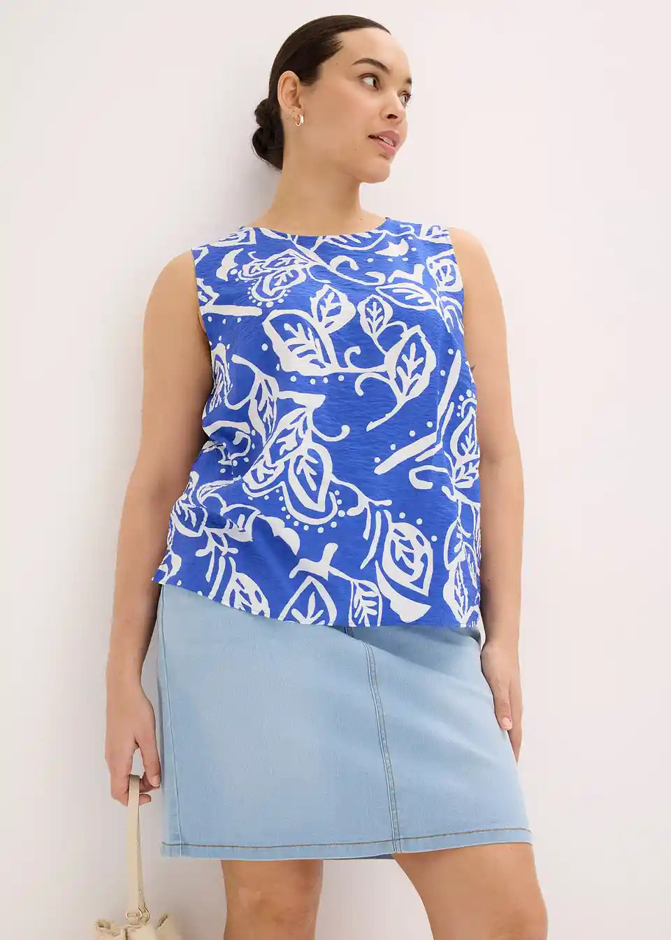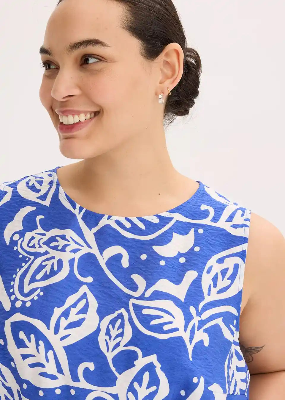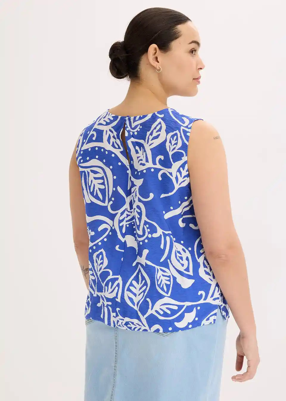 moderna bluza bez rukava s printom i s kopčanjem na gumb straga na izrezu