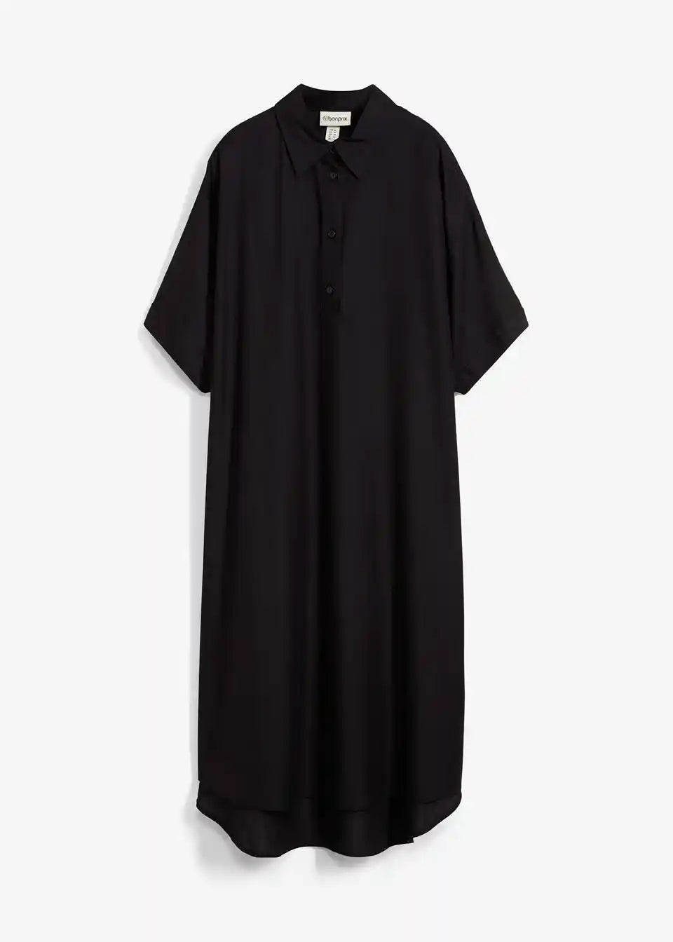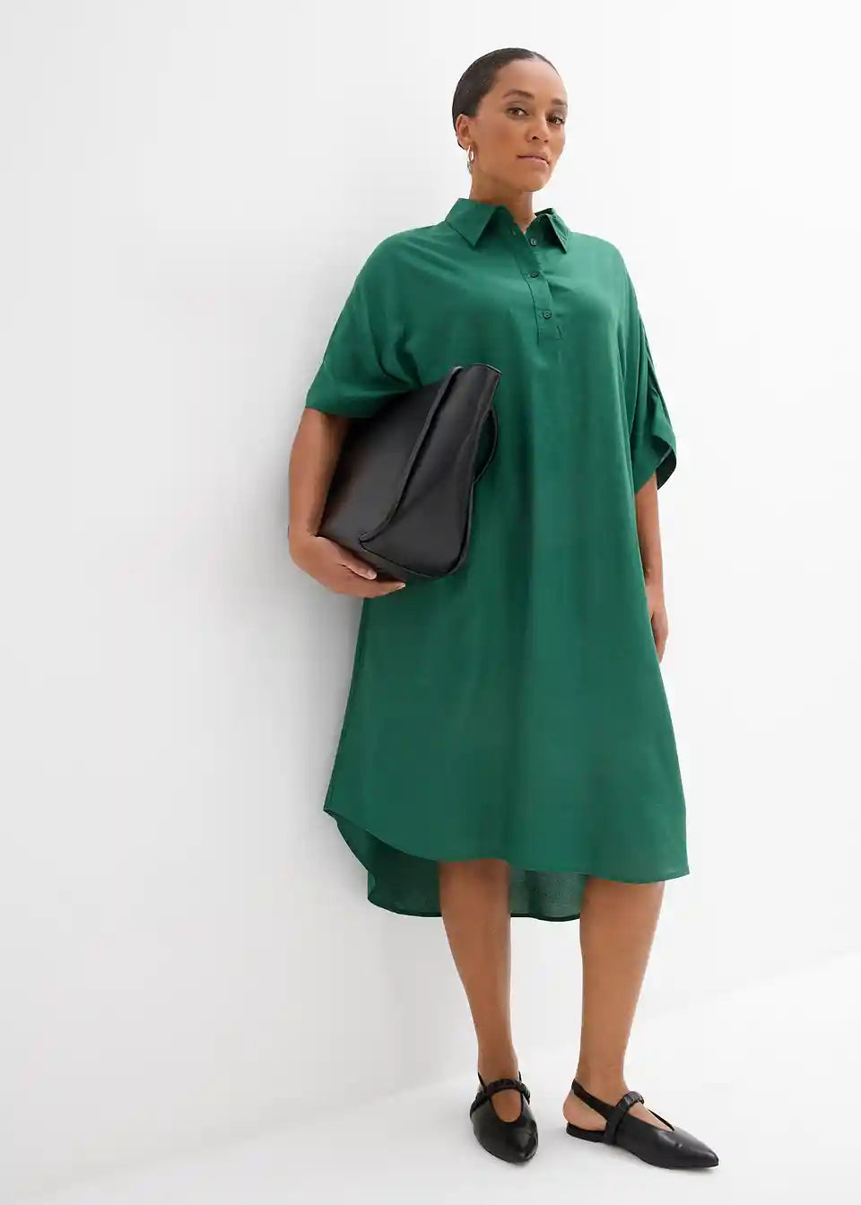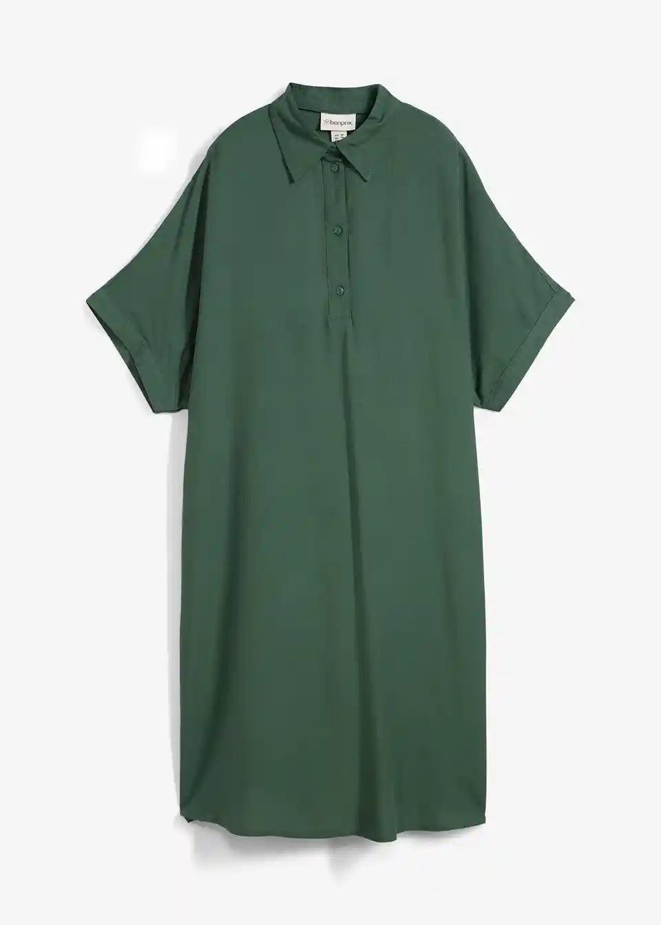Bluza haljina sa stojećim ovratnikom, kopčanjem na prednjoj strani i zaobljenim rubom