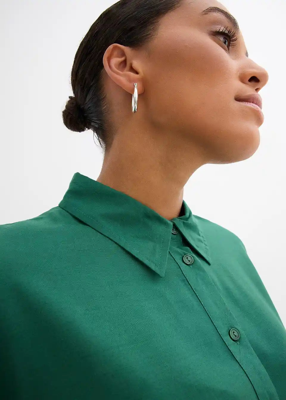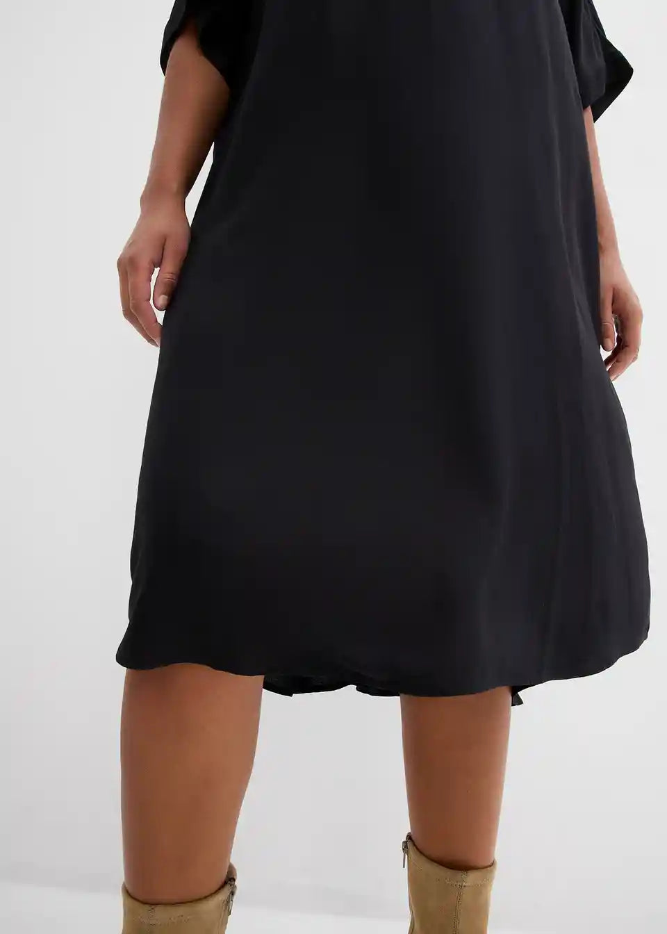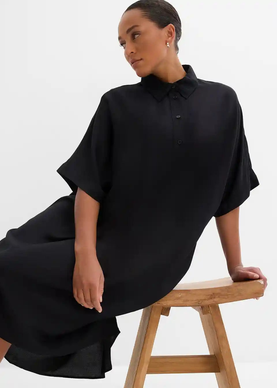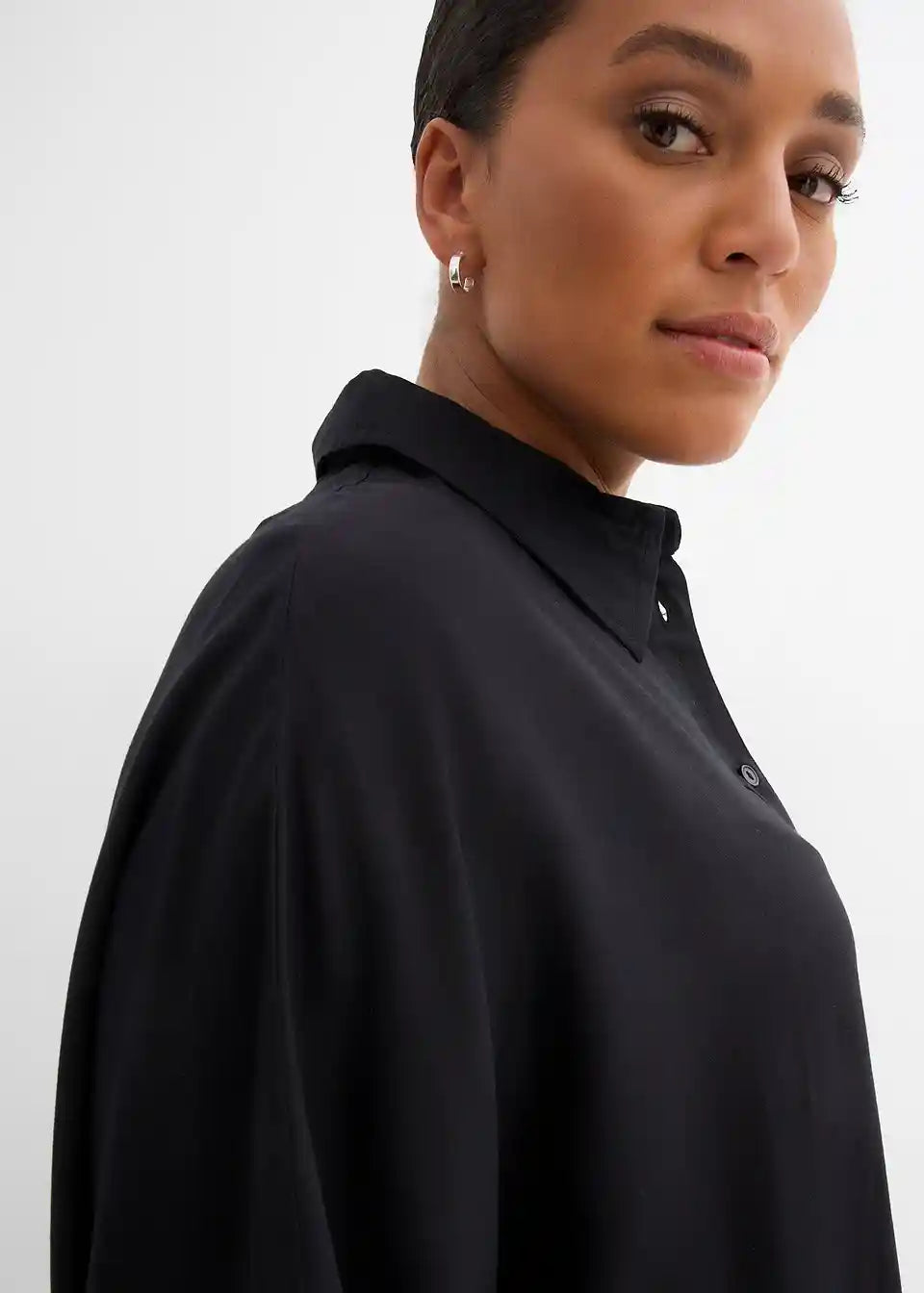 Bluza haljina sa stojećim ovratnikom, kopčanjem na prednjoj strani i zaobljenim rubom