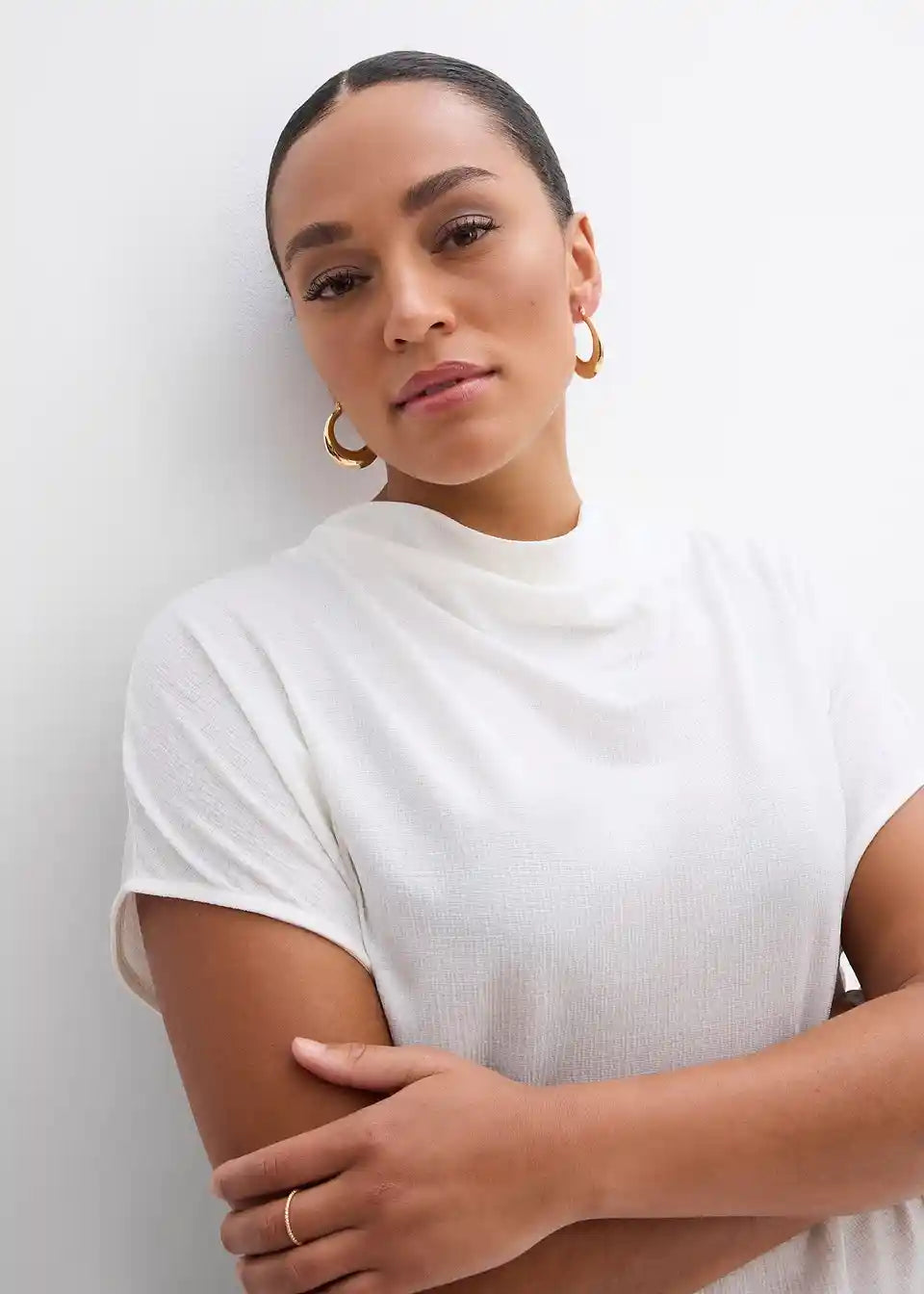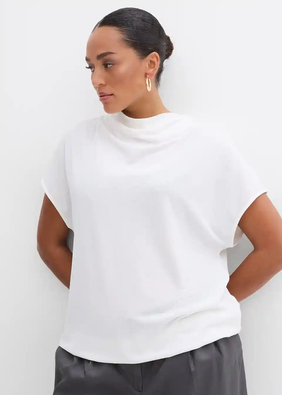 Top bez rukava s vodoravnim ovratnikom i blago naboranim porubom s elastičnim završetkom