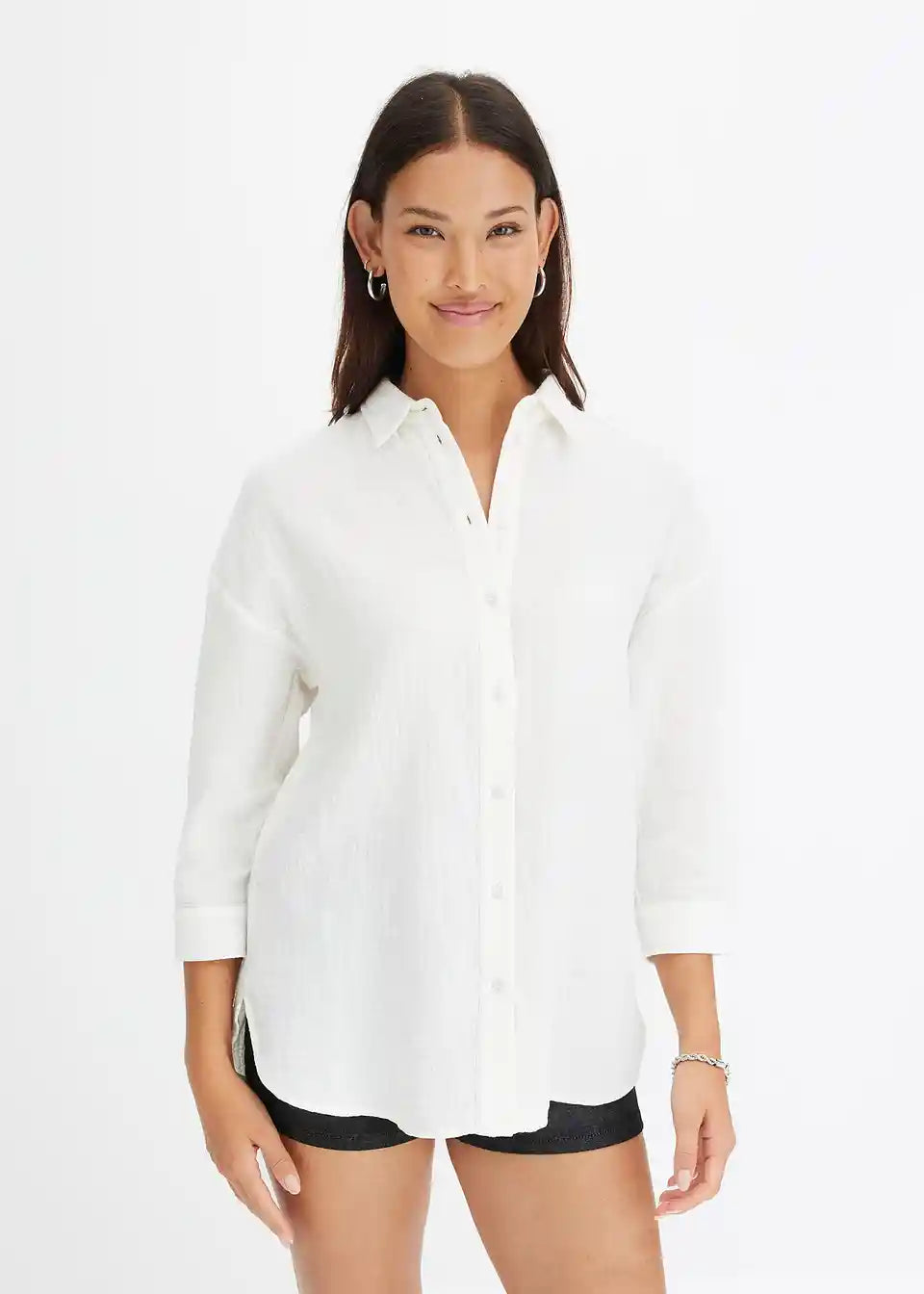 Ležerna duga bluza od muselina s gumbima