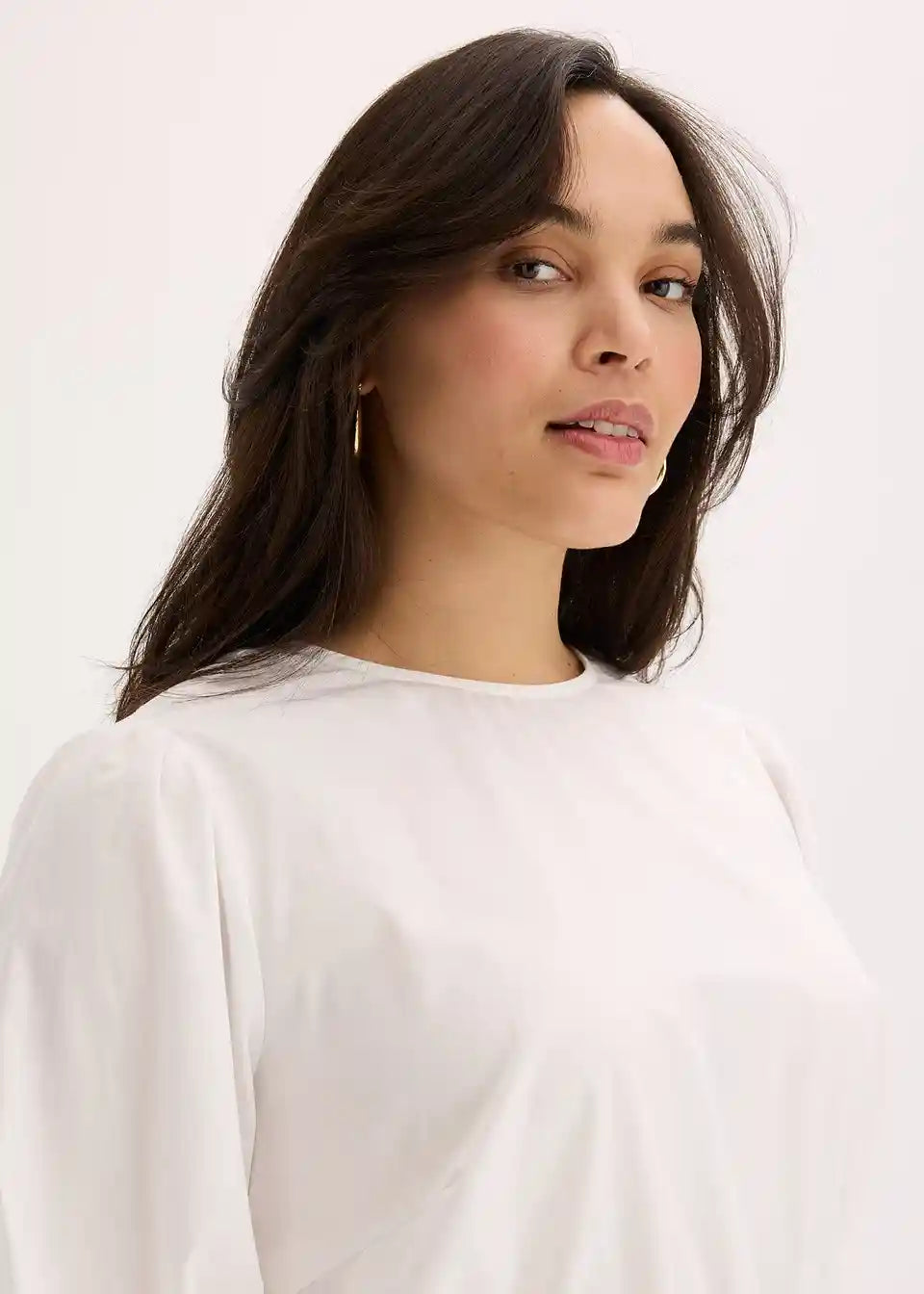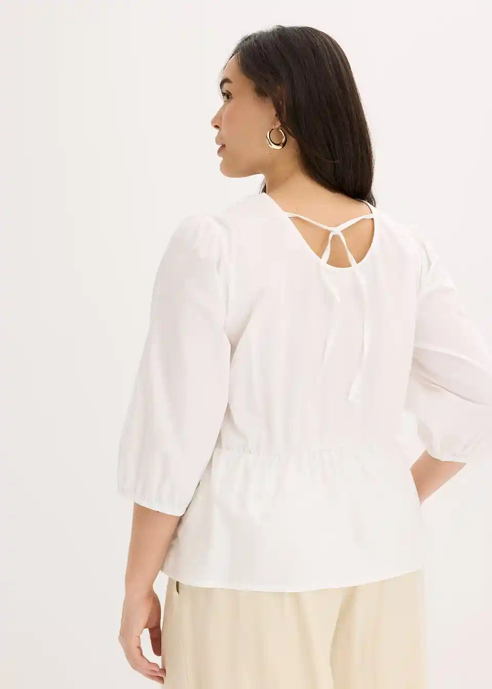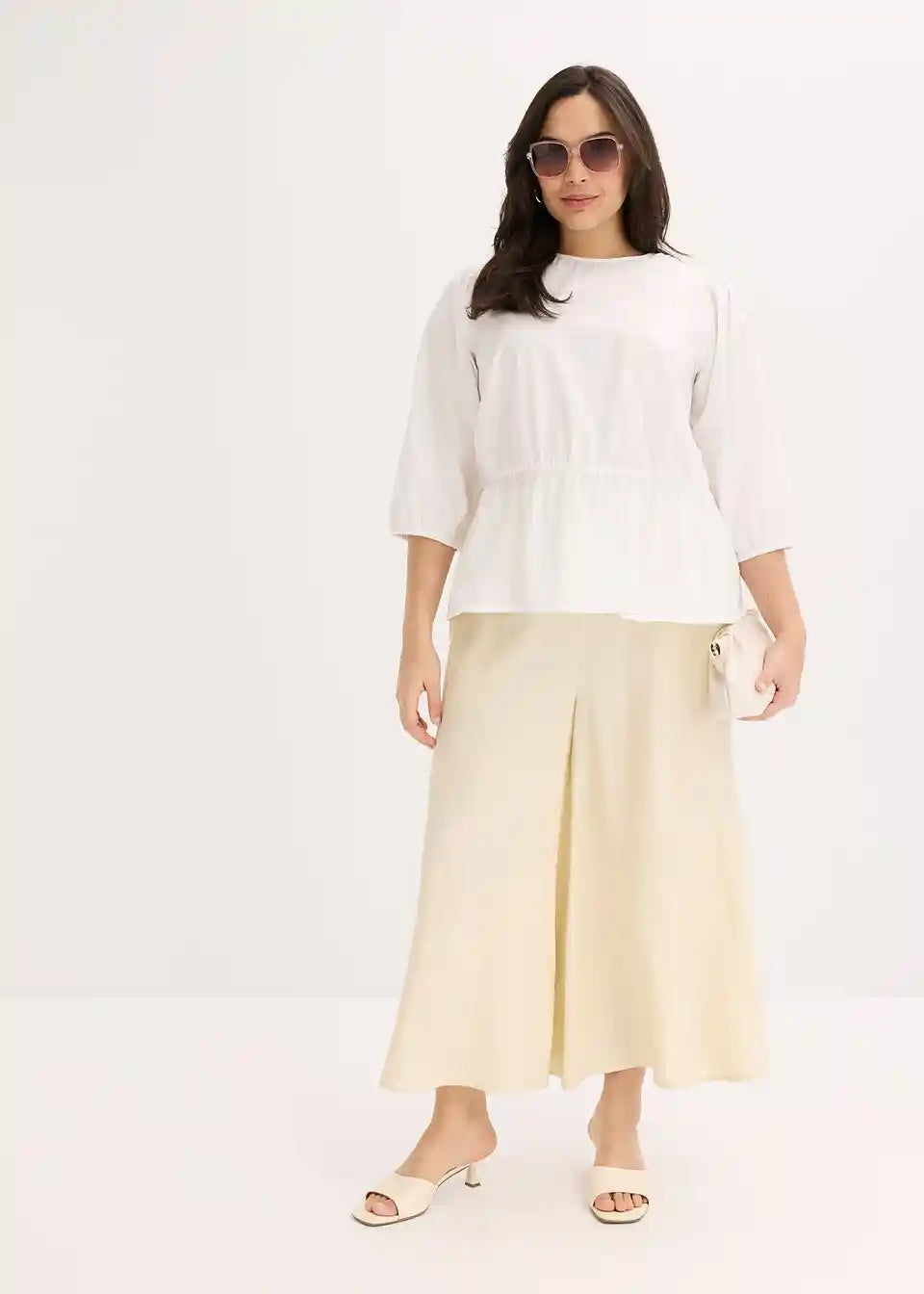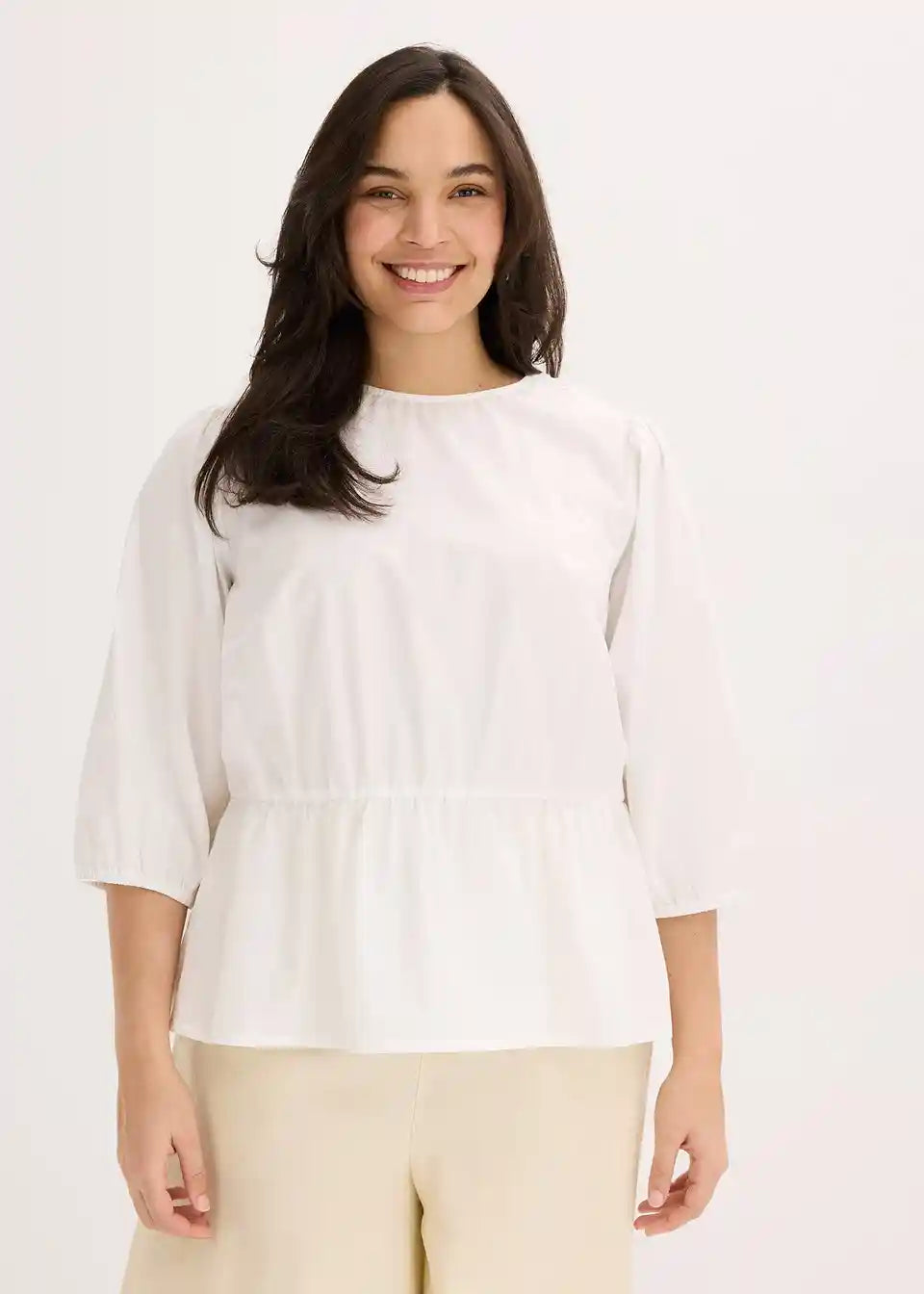 Bluza s okruglim izrezom, elastičnim pojasom u struku i 3/4 rukavima