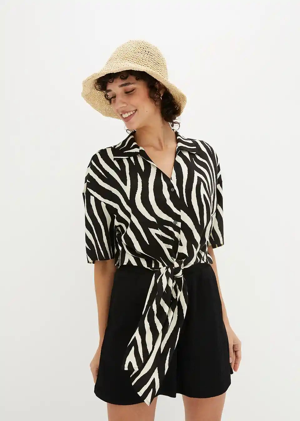 Kratka bluzica s detaljem u obliku čvora od viskoze