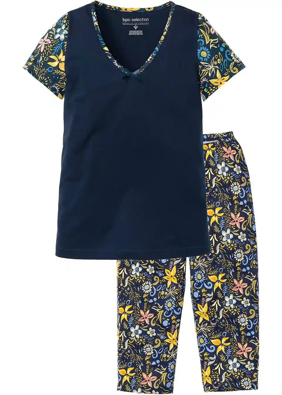 Uvući se, osjećati se ugodno i opustiti se - ova Capri pidžama oduševljava materijalom ugodnim za kožu. Pidžama se sastoji od majice s kratkim rukavima i zaobljenim V-izrezom te boje usklađenih 3/4 hlača za spavanje. Elastični pojas na hlačama osigurava dodatnu udobnost.