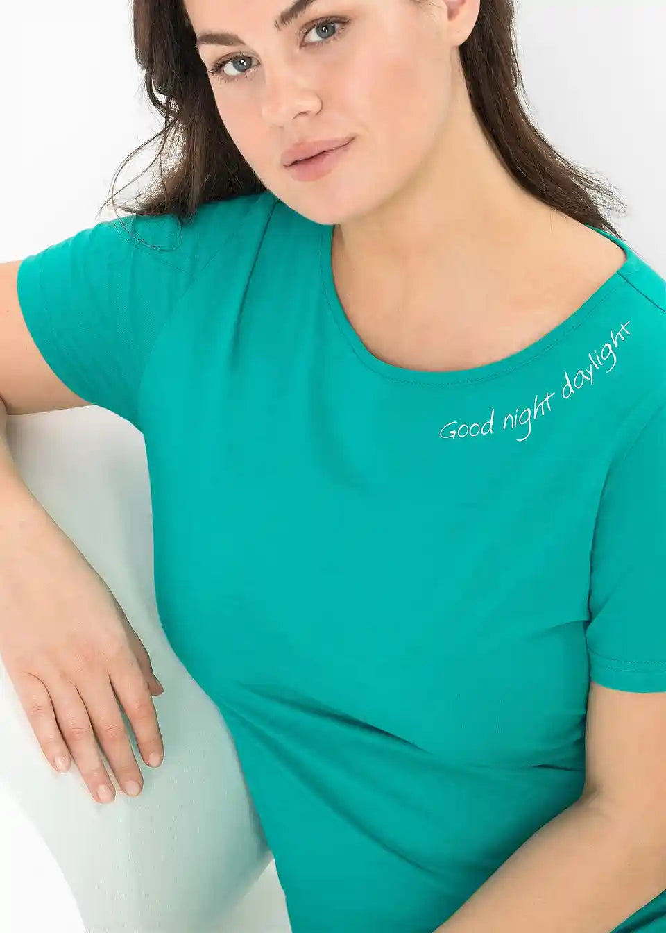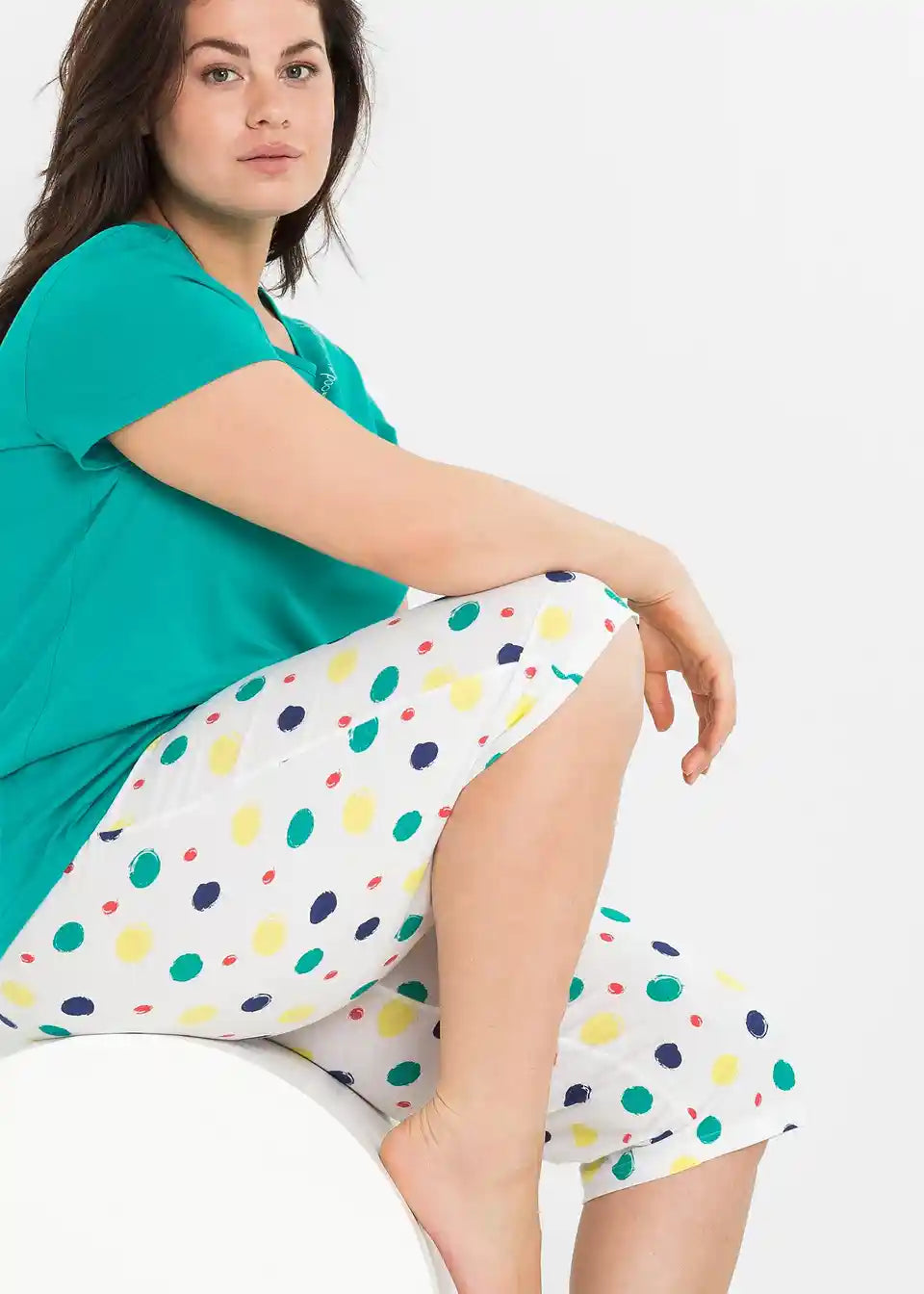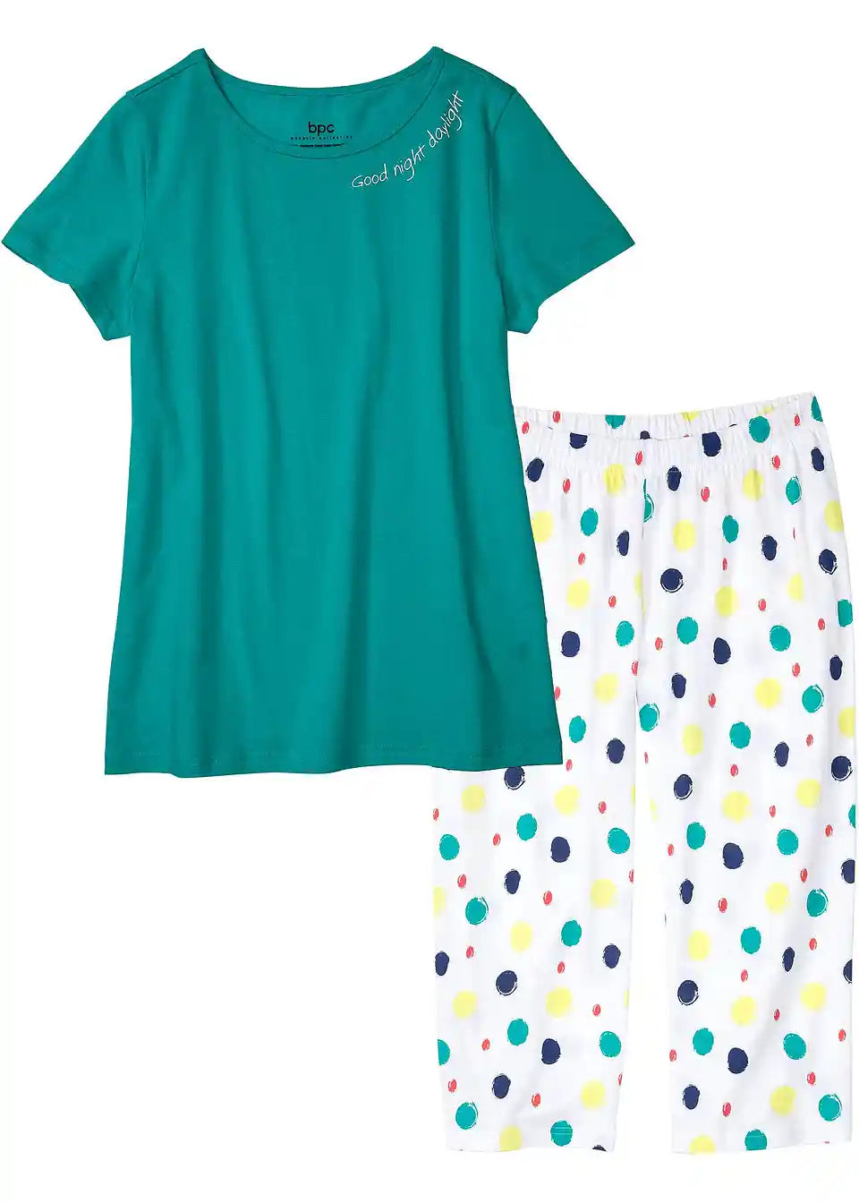 Zahvaljujući visokom udjelu pamuka, ova pidžama je posebno ugodna za nošenje. Model ima okrugli izrez i kratke rukave.