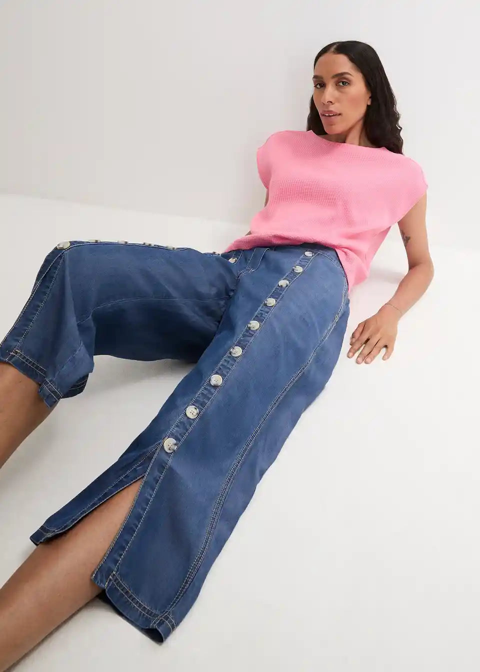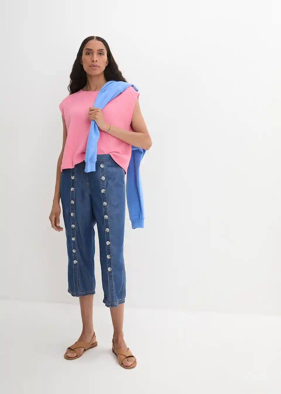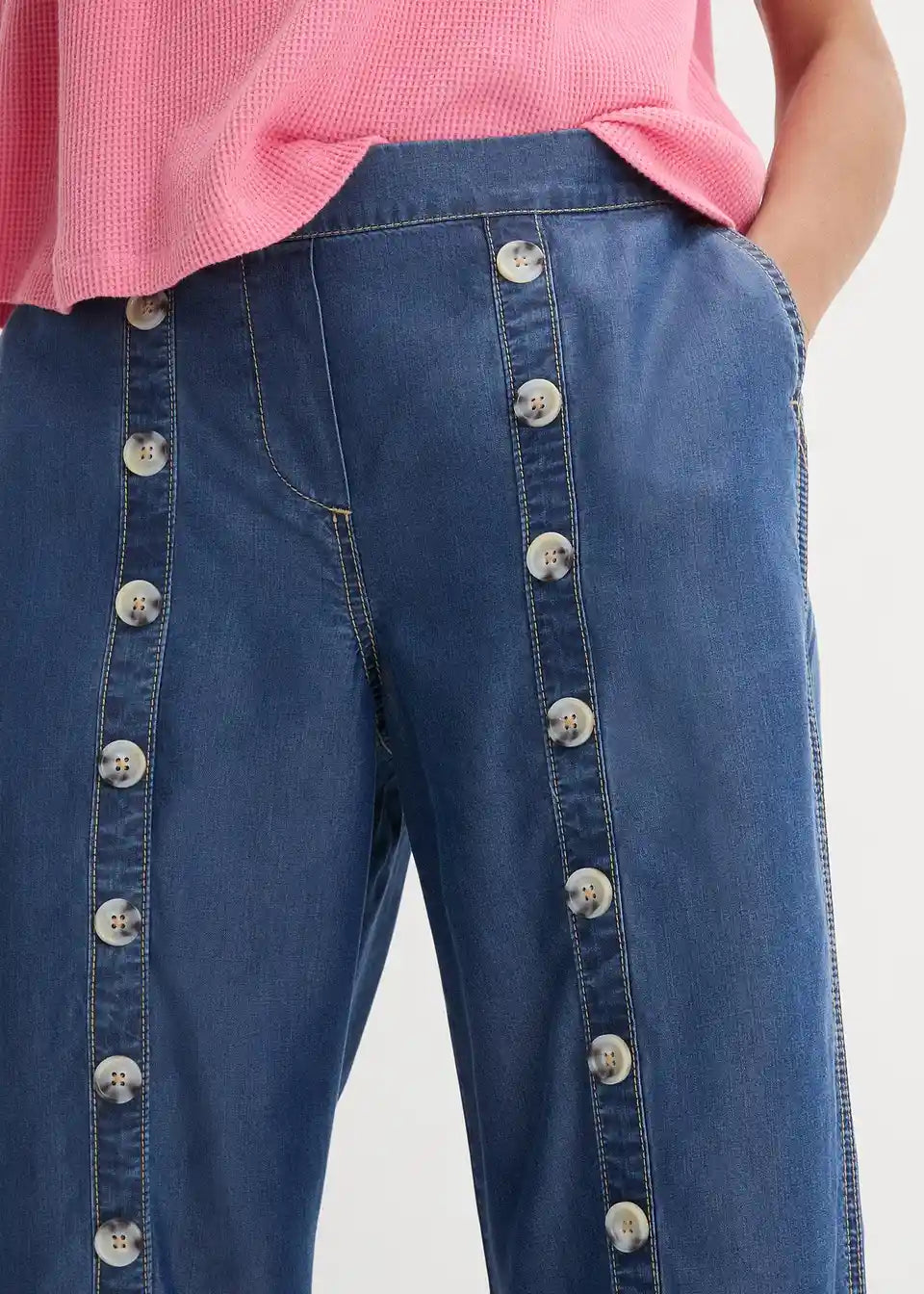 Udobne 3/4 traperice s dekorativnim gumbima i elastičnim pojasom