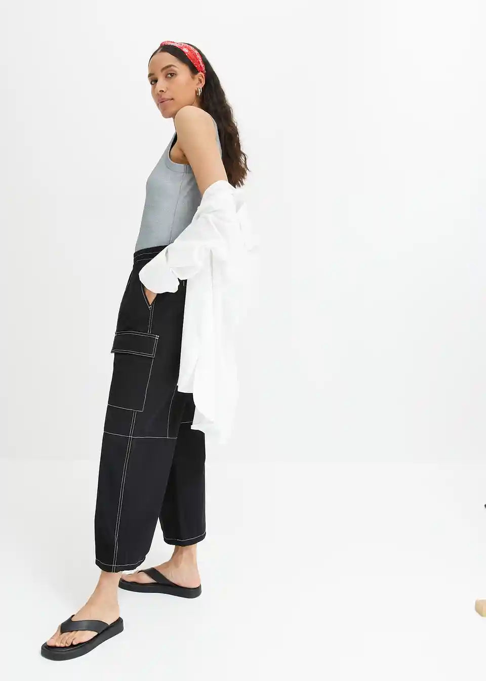 Hlače s cargo džepovima s kontrastnim šavovima