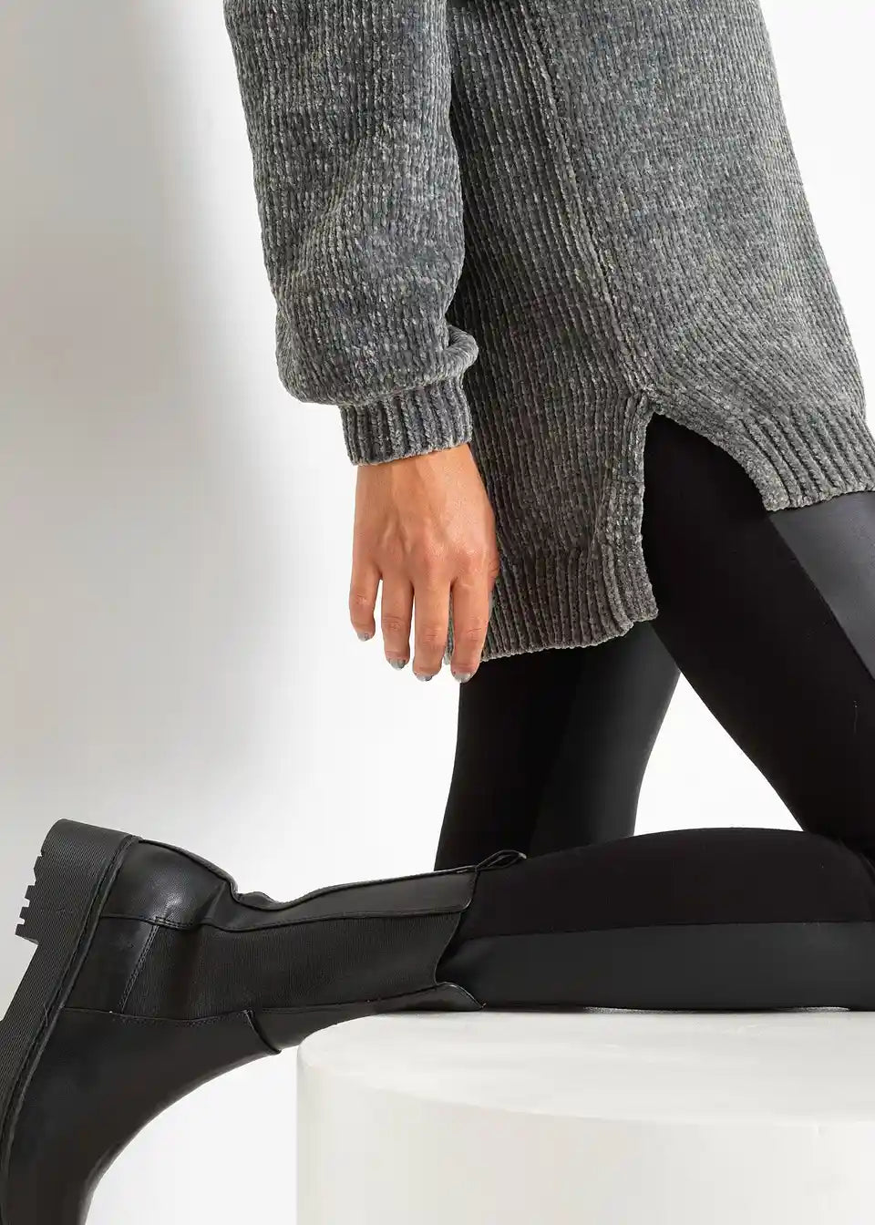 Baršunasti Chenille-Pulover s bočnim prorezima