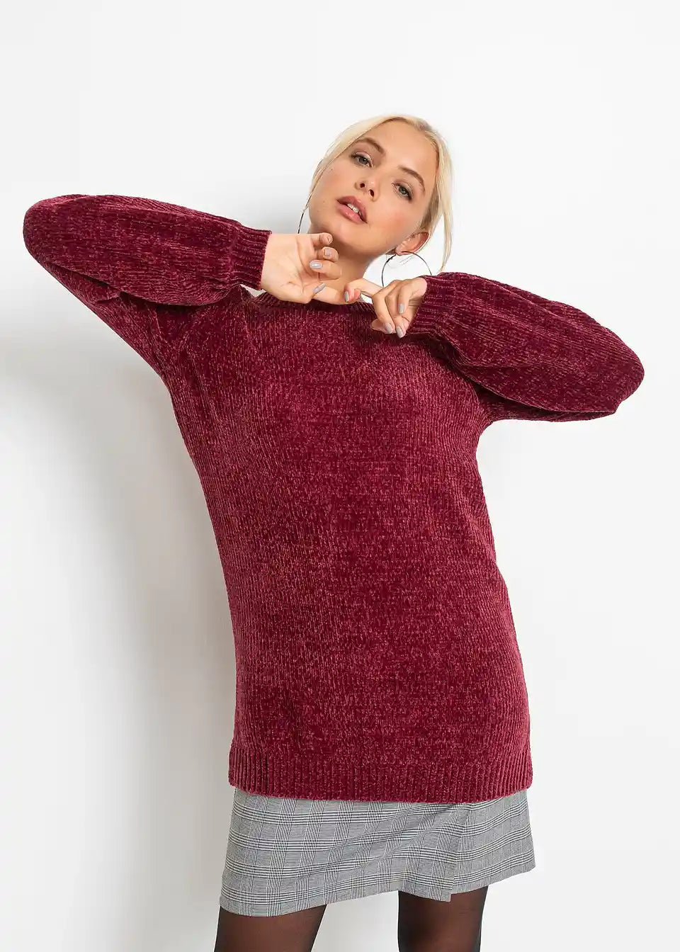Ovaj trendovski Chenille-Longpullover idealan je za hladne dane. Mekana i topla pređa stvara baršunastu površinu koja model čini izuzetno ugodnim na koži. Dug, ležeran kroj daje puloveru opušten izgled. Popularni detalji uključuju bočne proreze, široki izrez u stilu brodskog izreza i produženi stražnji dio. Široki rukavi su skupljeni uskim manšetama.