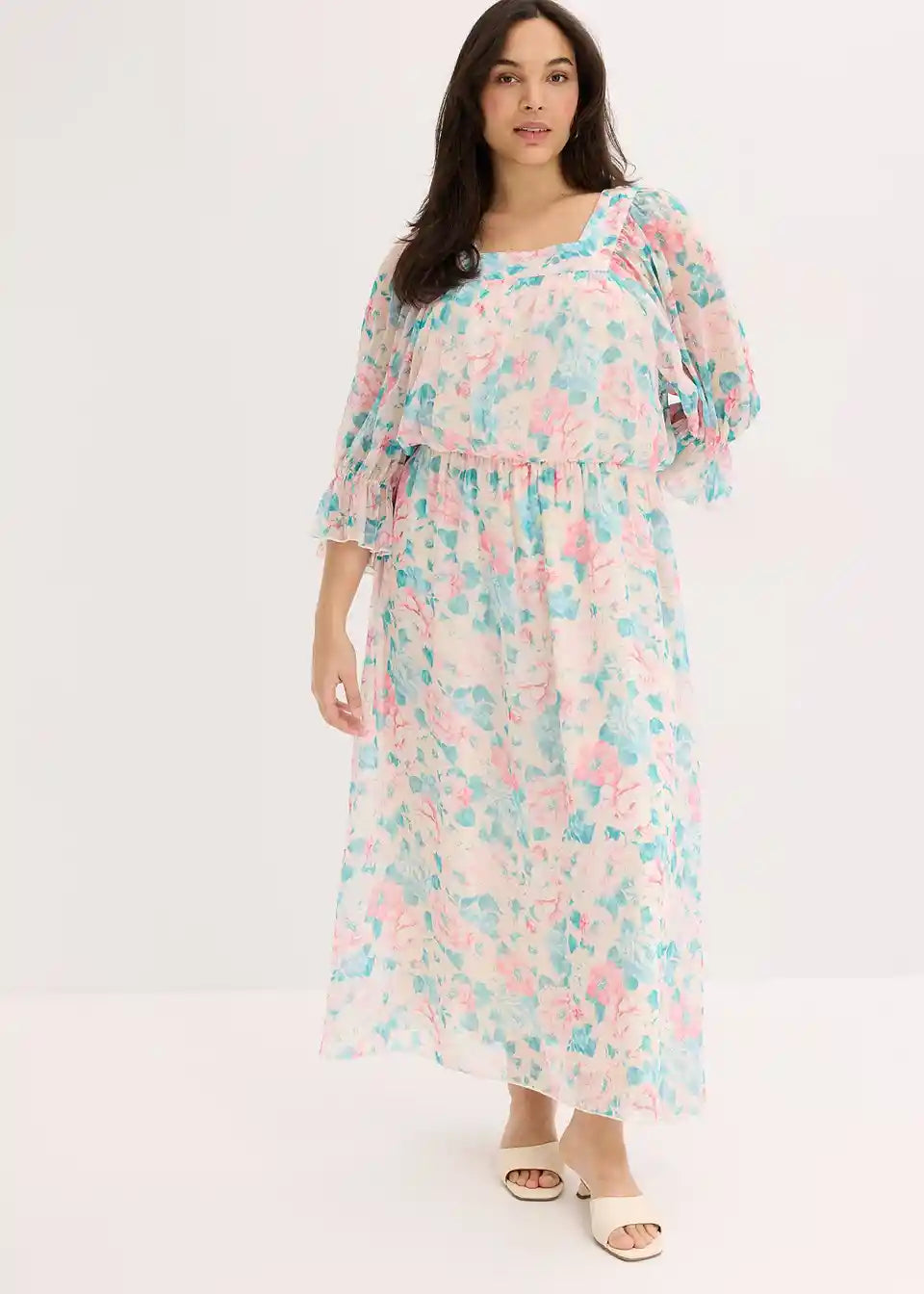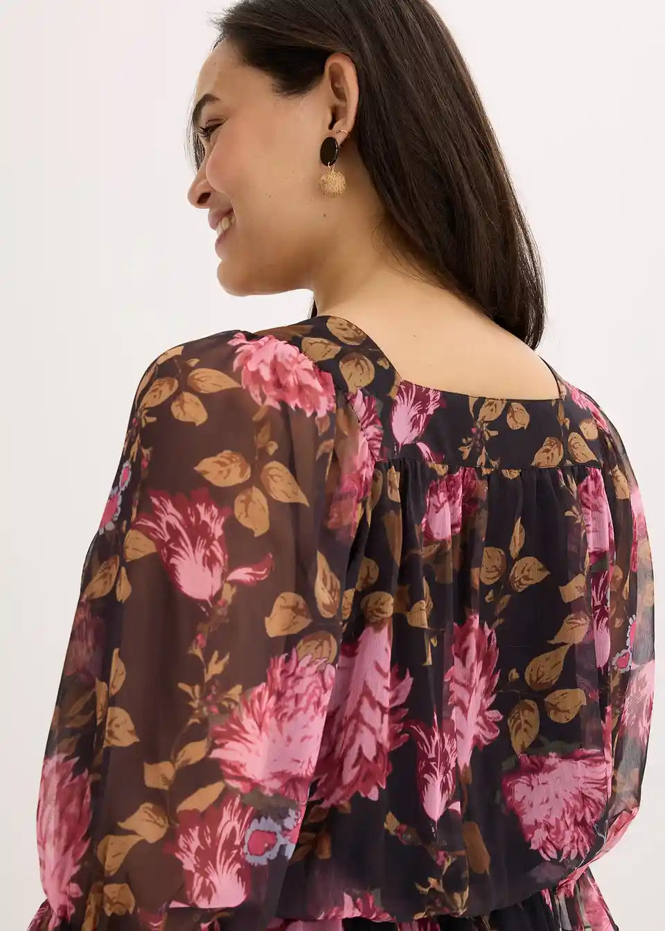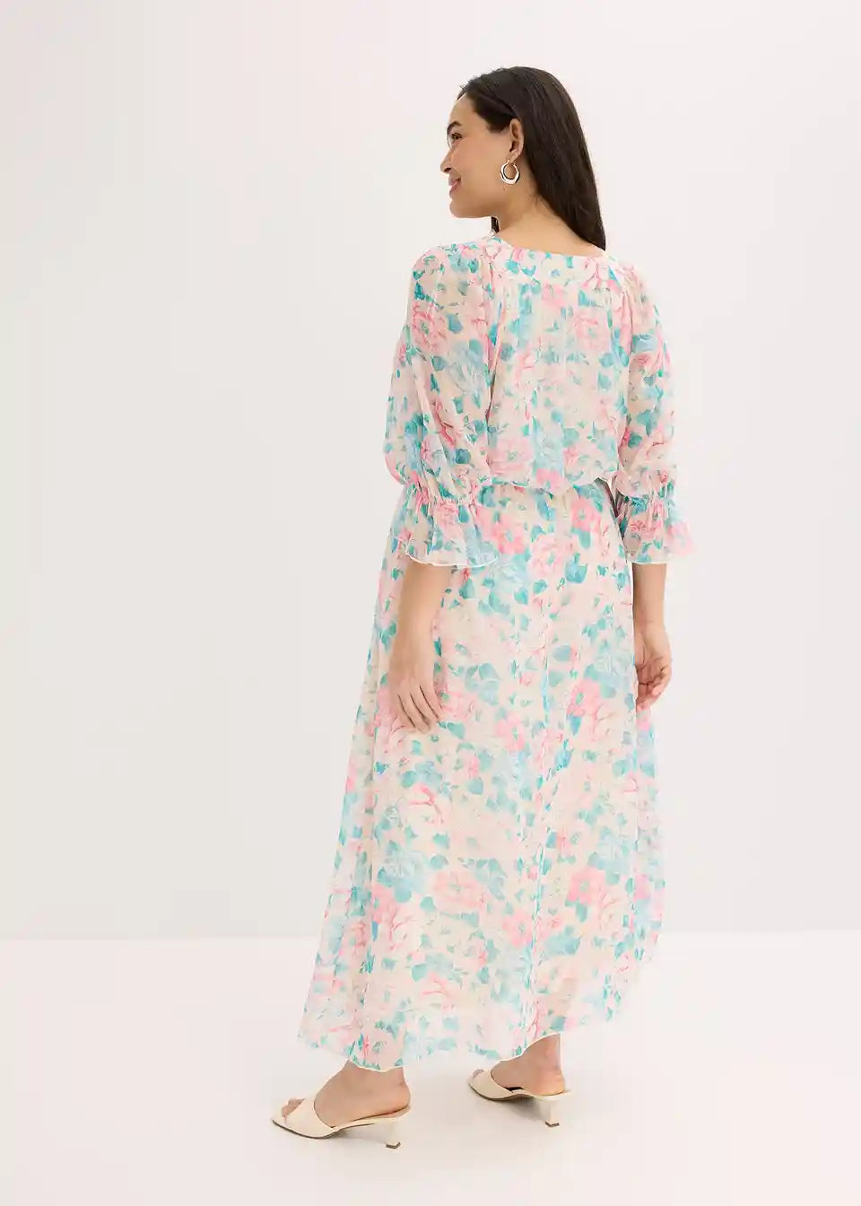 cvjetno tiskan chiffon maksi haljina s balon rukavima