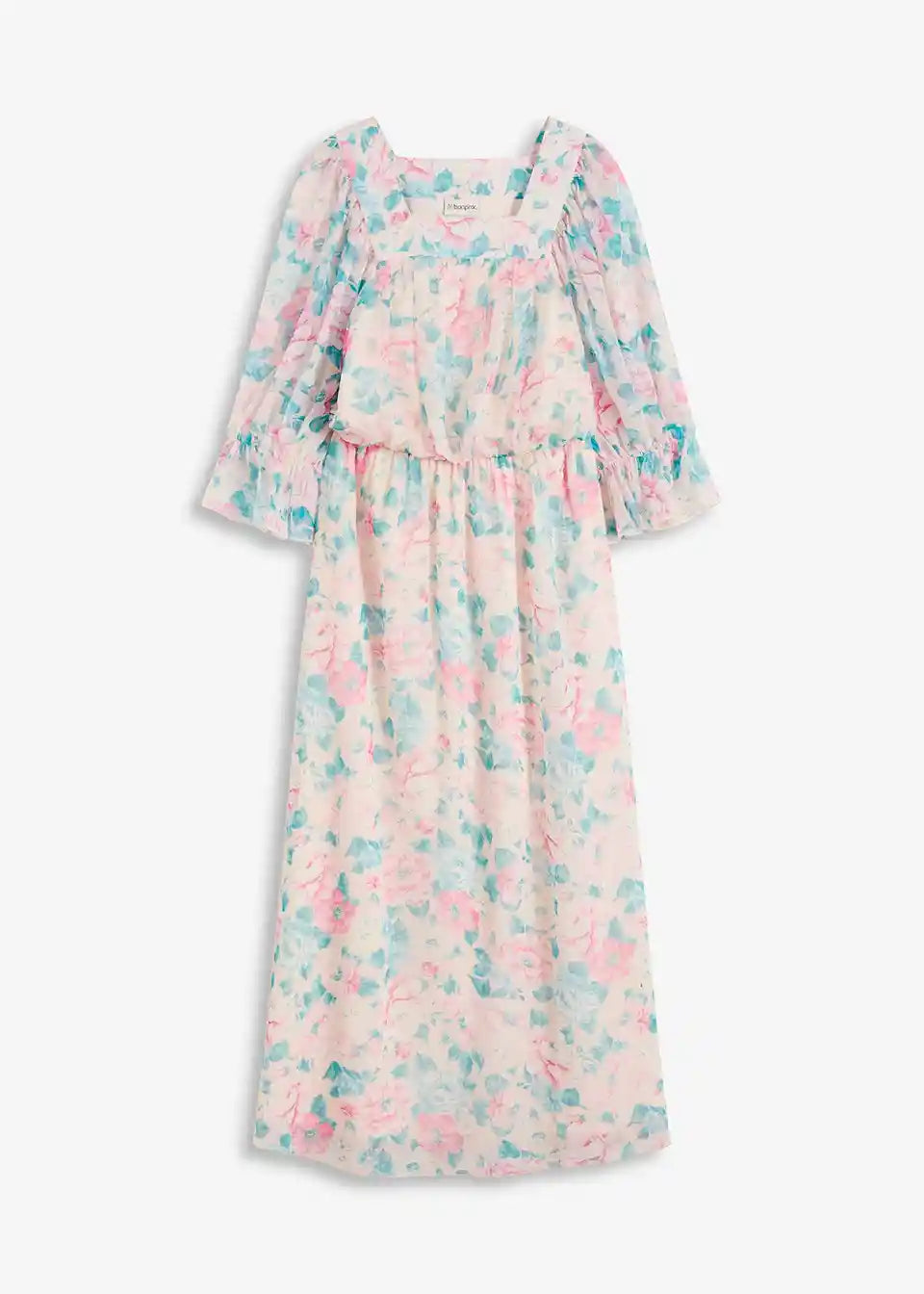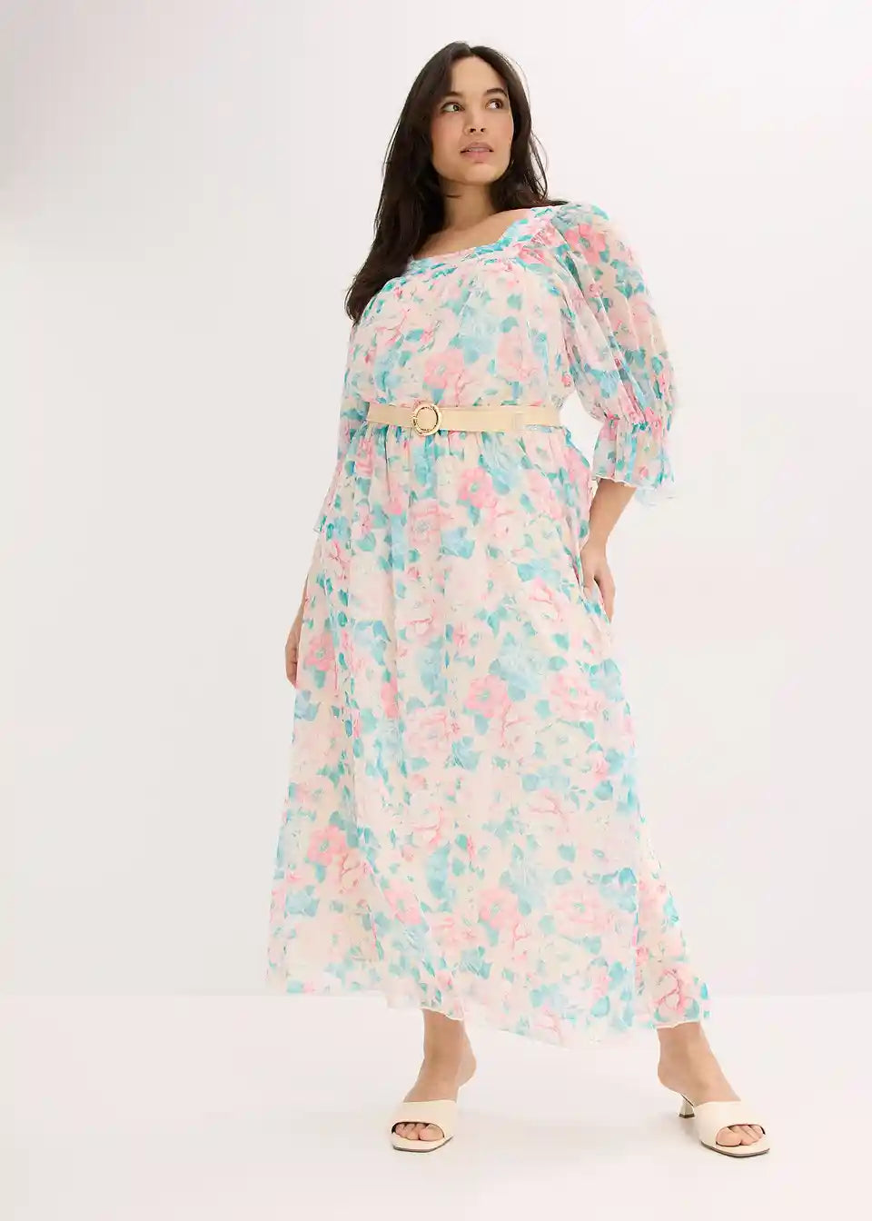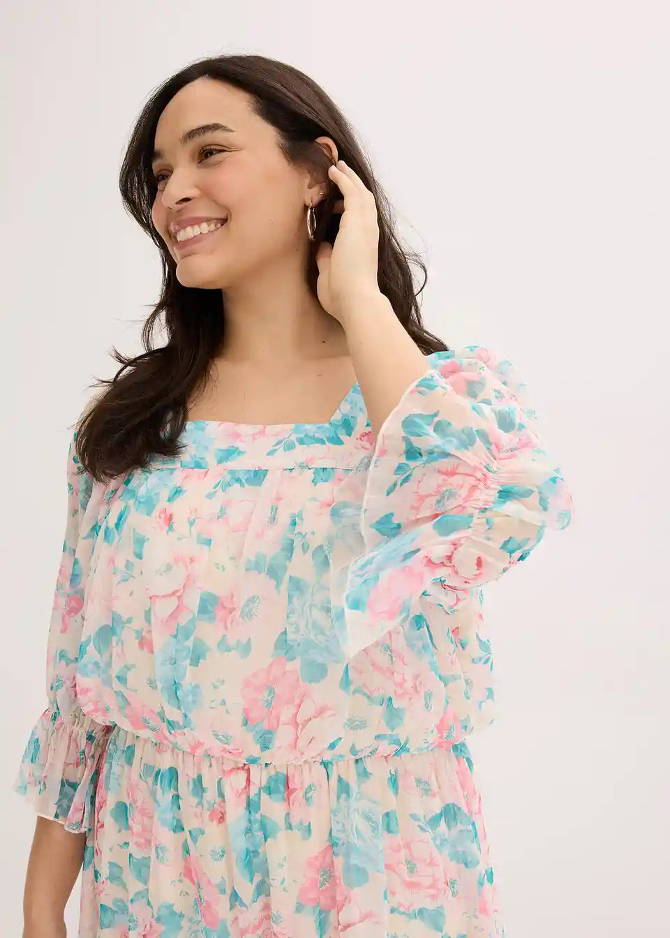 cvjetno tiskan chiffon maksi haljina s balon rukavima