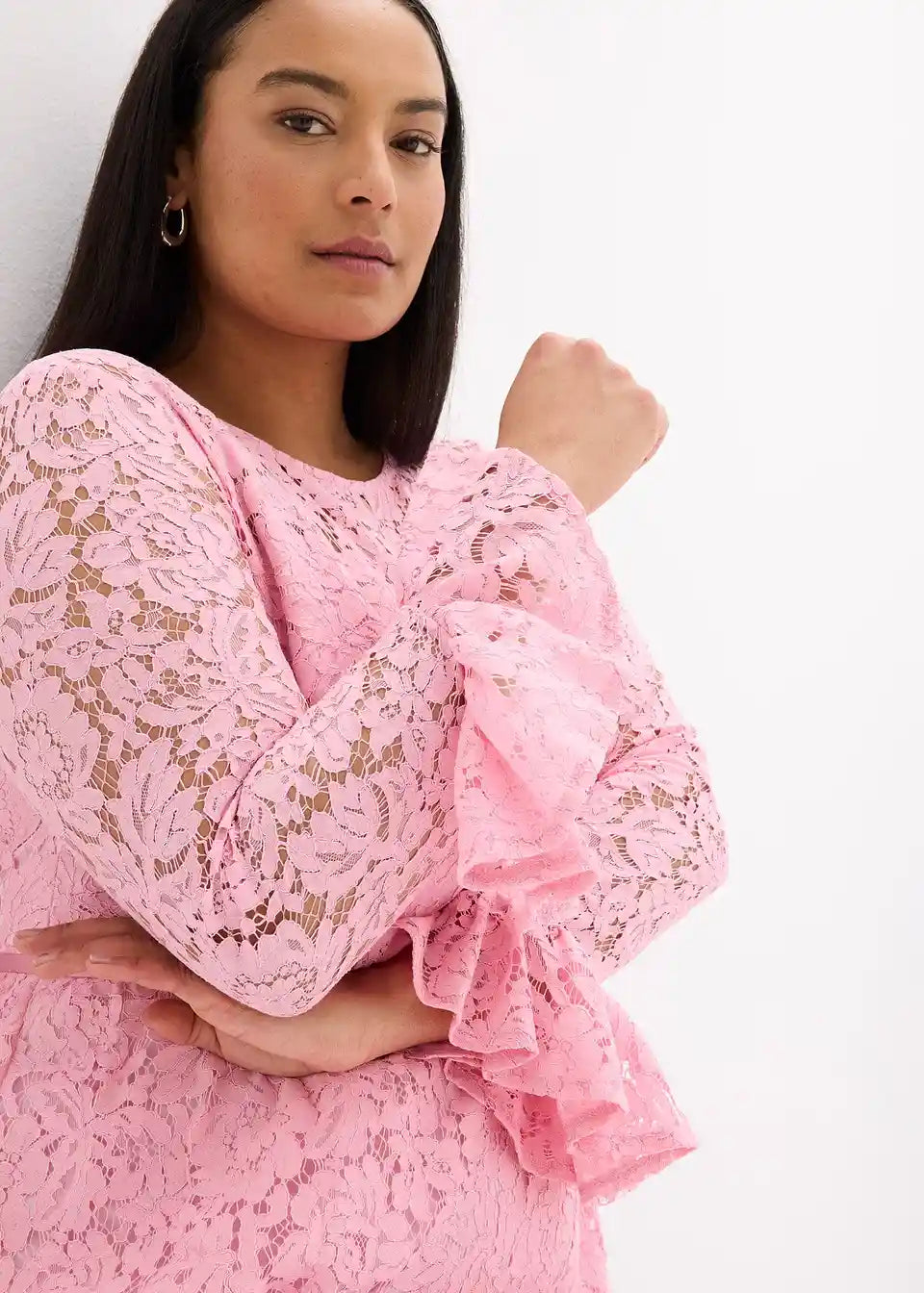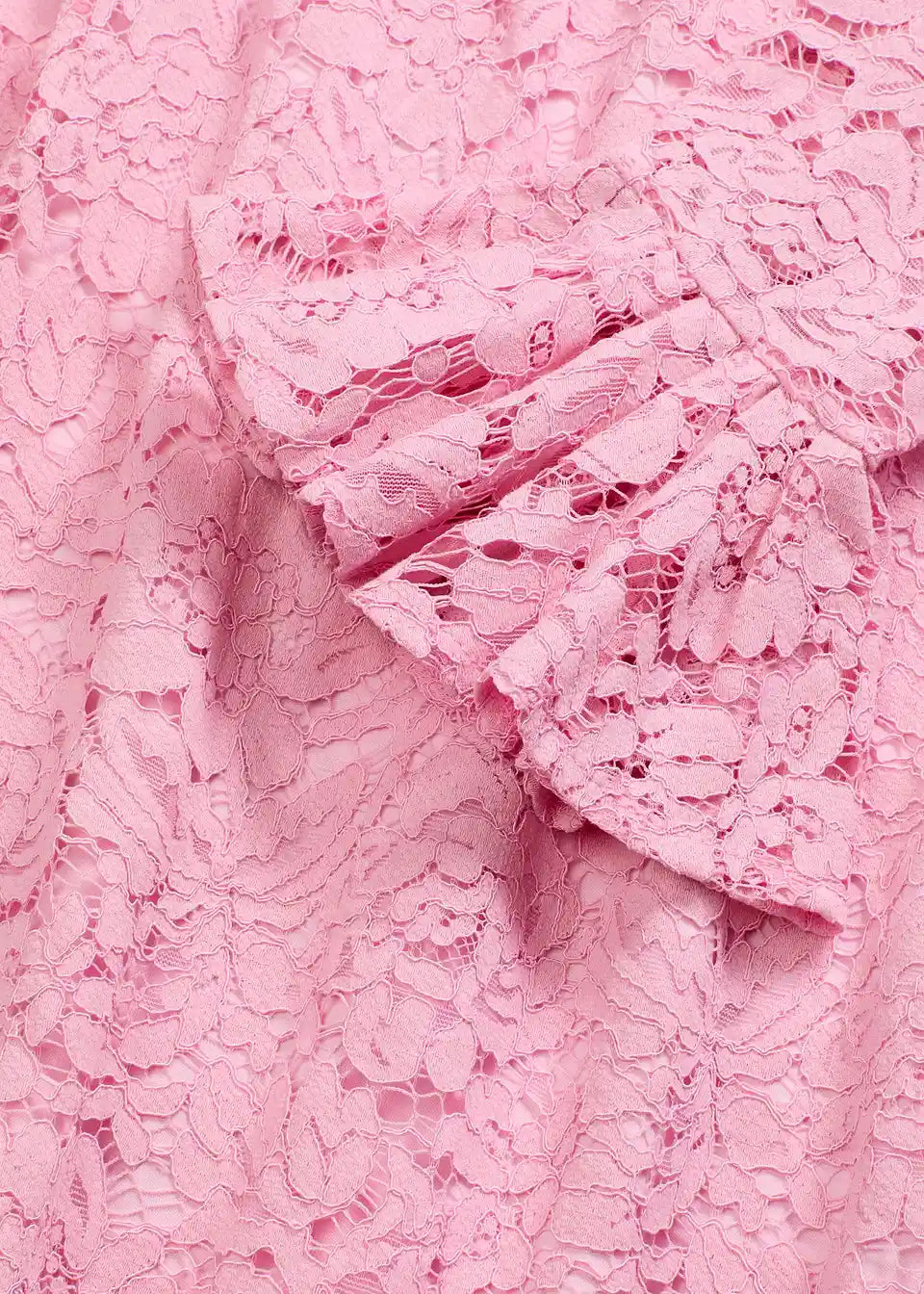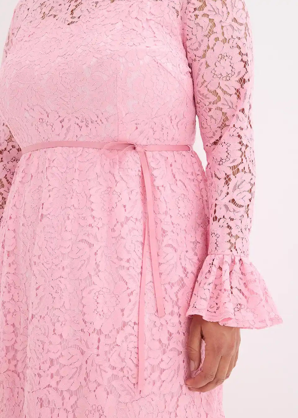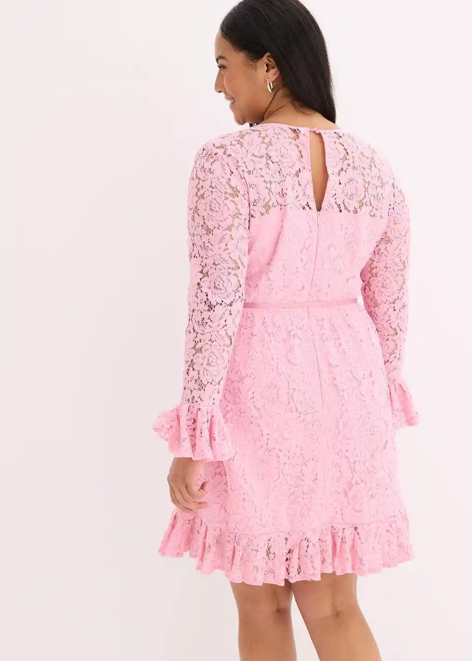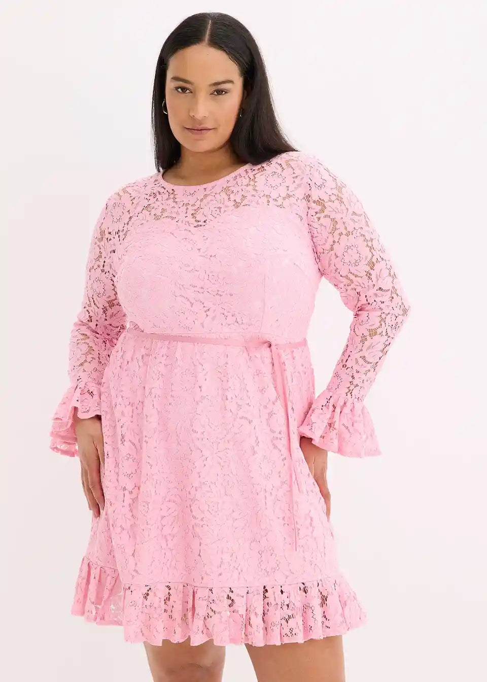 Romantična i ženstvena: mini čipkasta haljina s volanima i satenskom vrpcom u struku