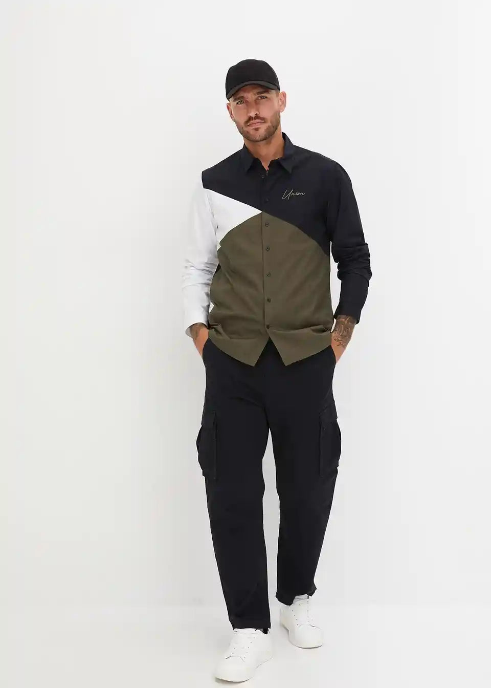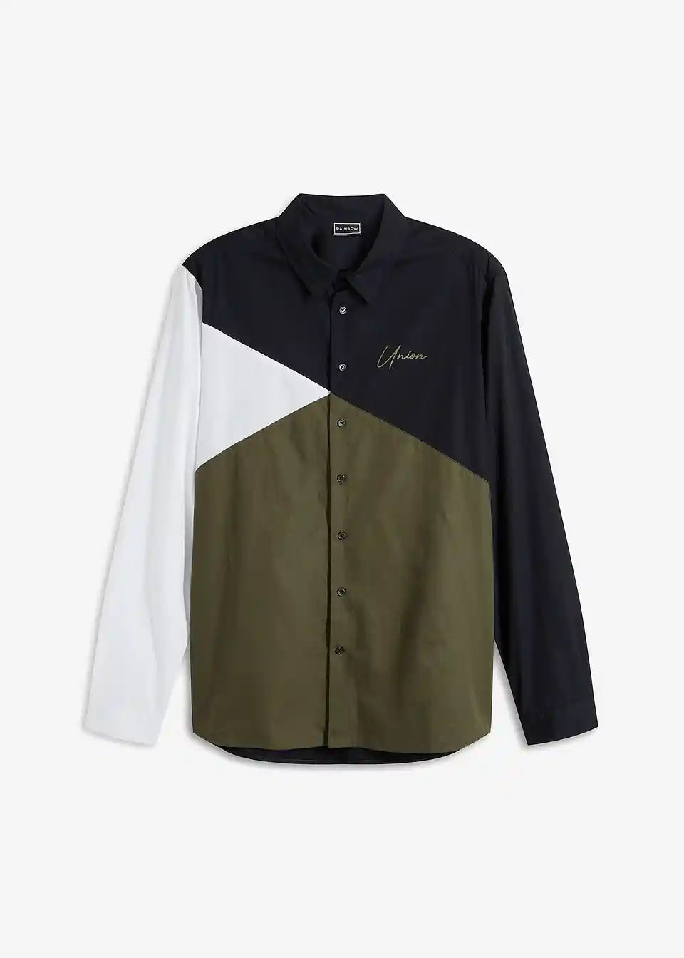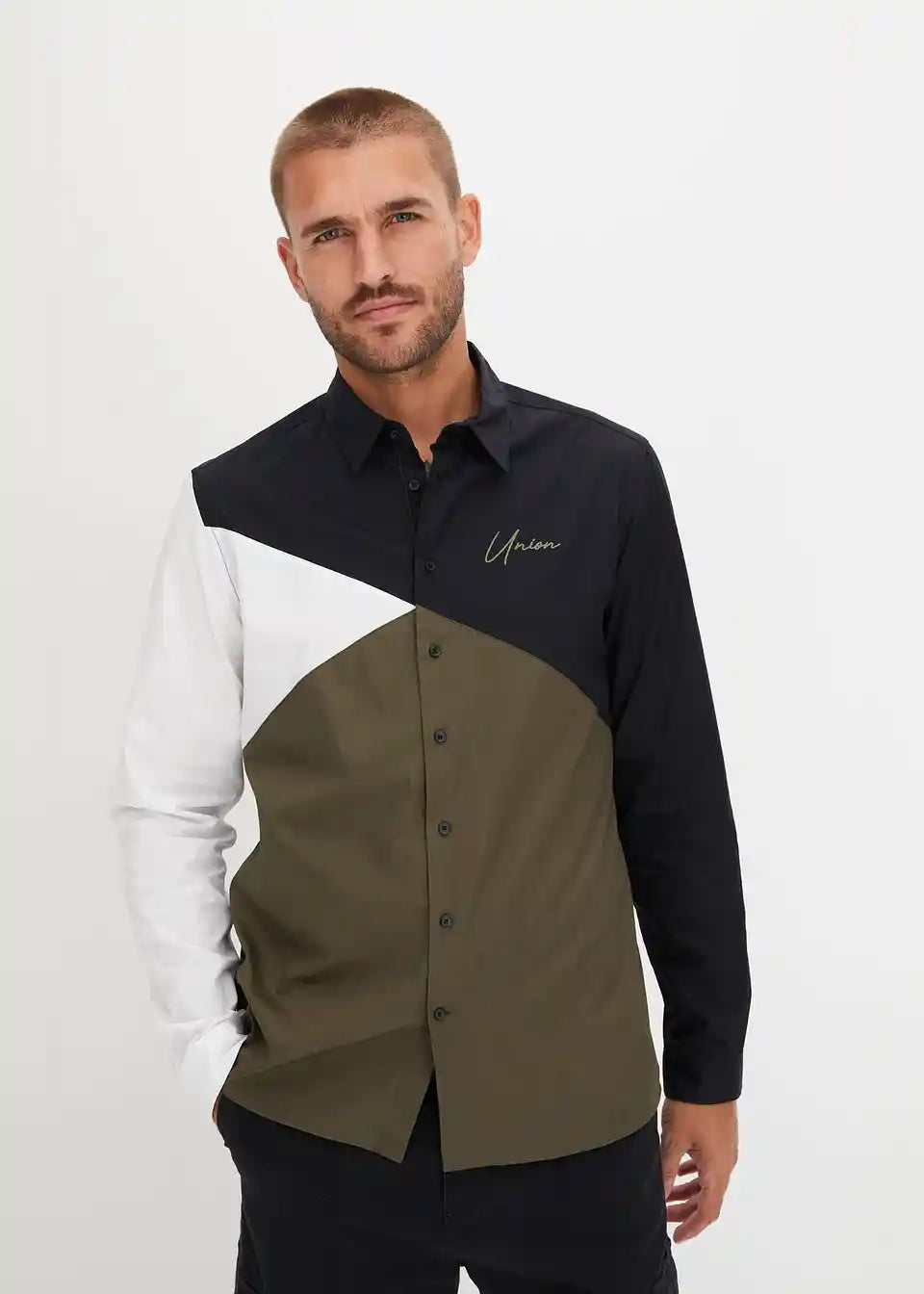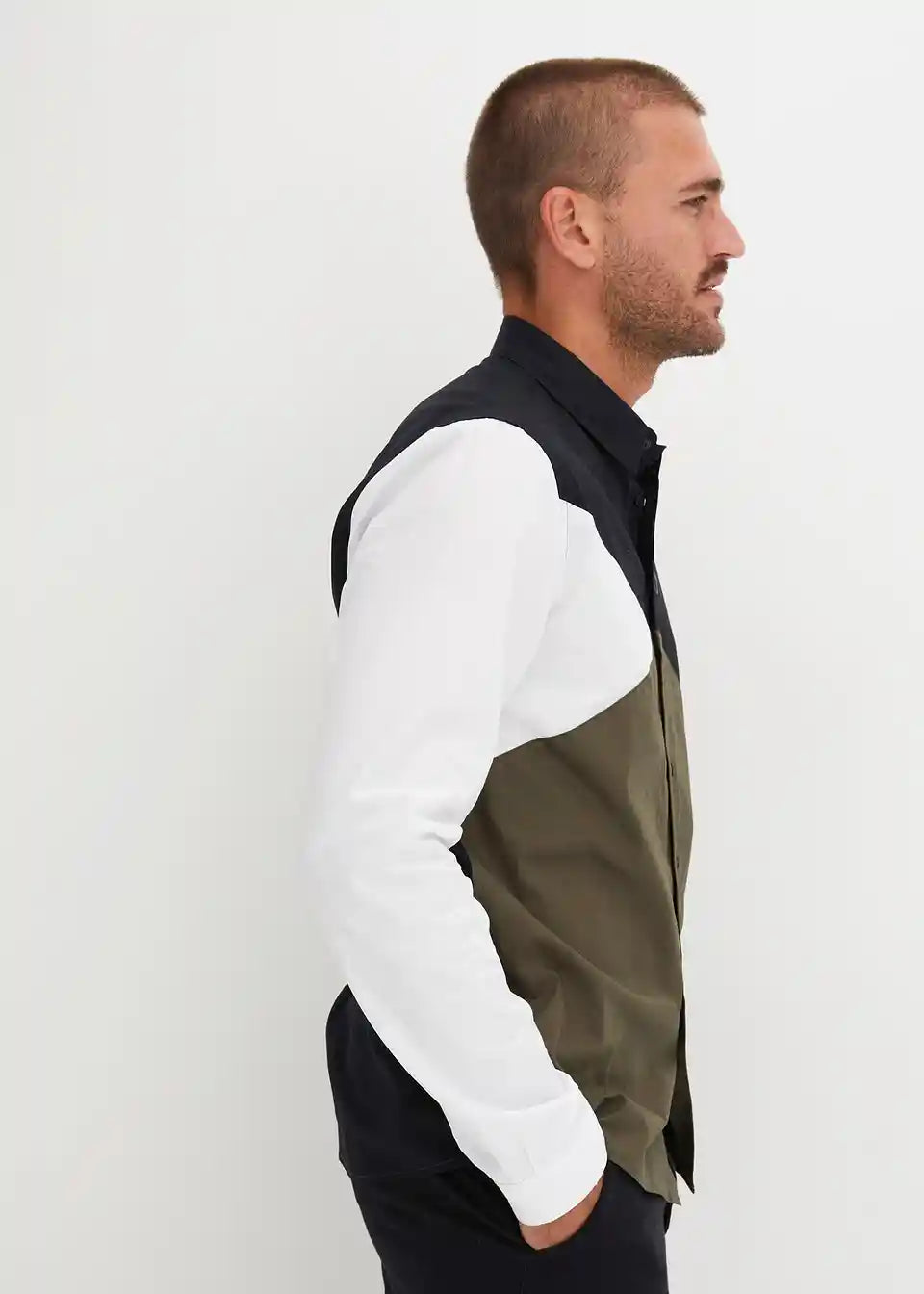 Košulja s kontrastima i dugim rukavima od čistog organskog pamuka uskog kroja