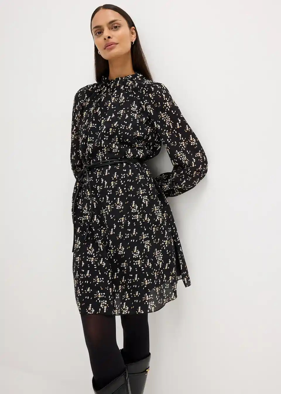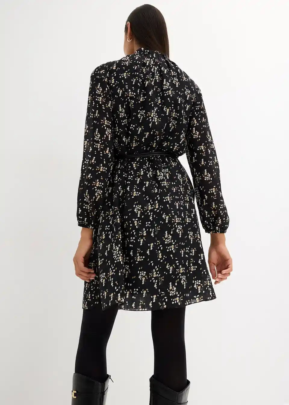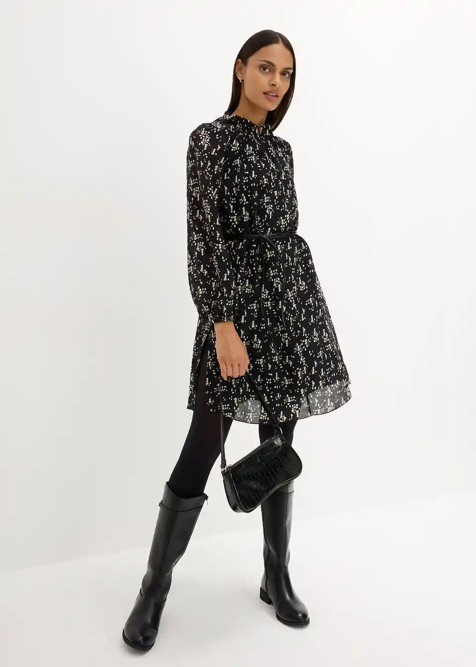Haljina u stilu tunike od nagužvanog materijala od vune i svile s remenom od imitacije kože
