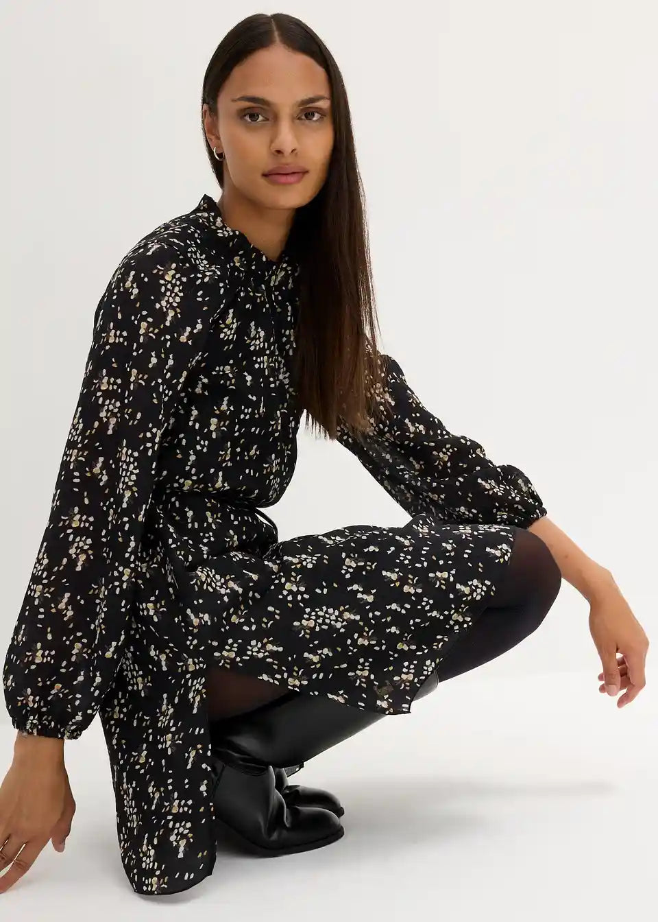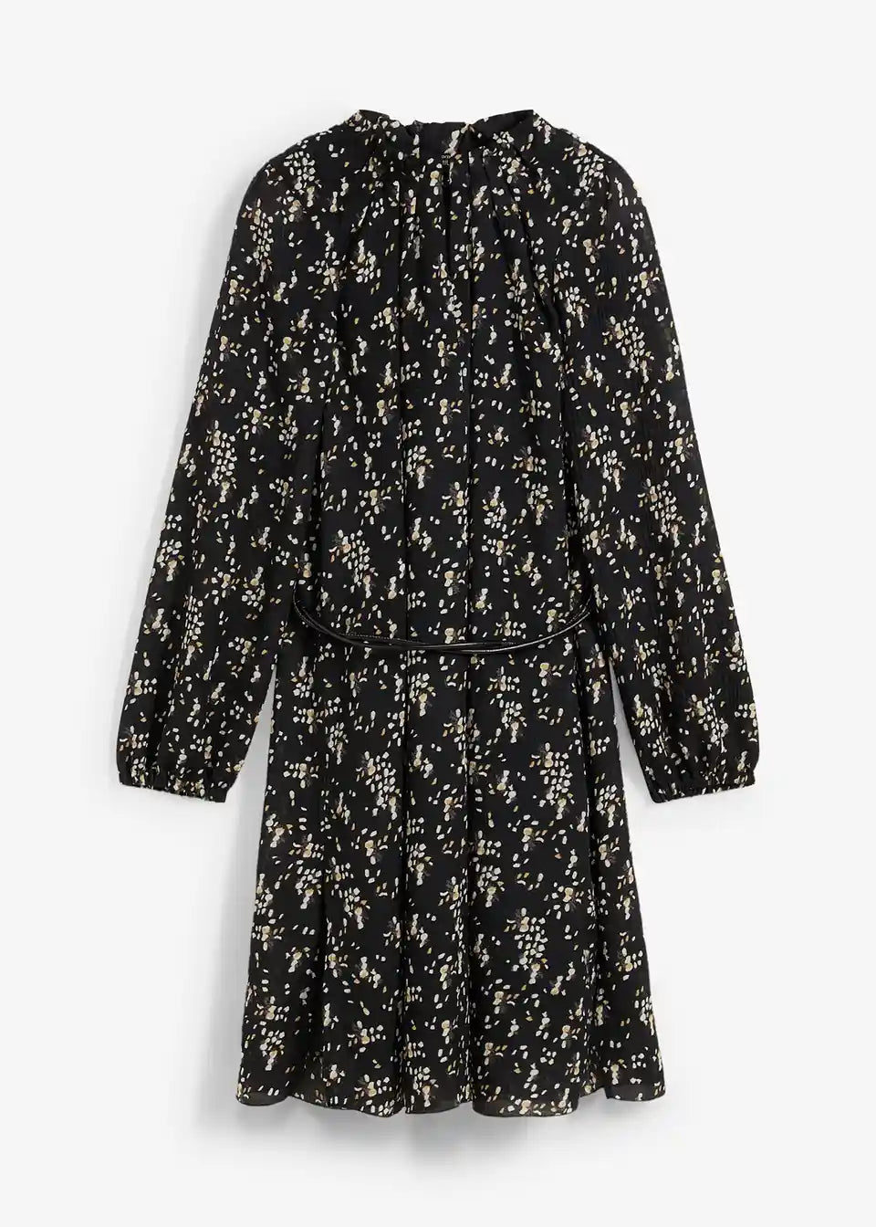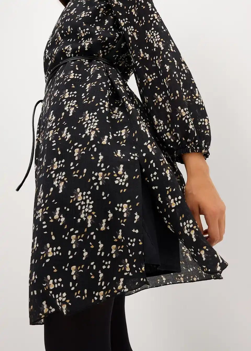 Haljina u stilu tunike od nagužvanog materijala od vune i svile s remenom od imitacije kože