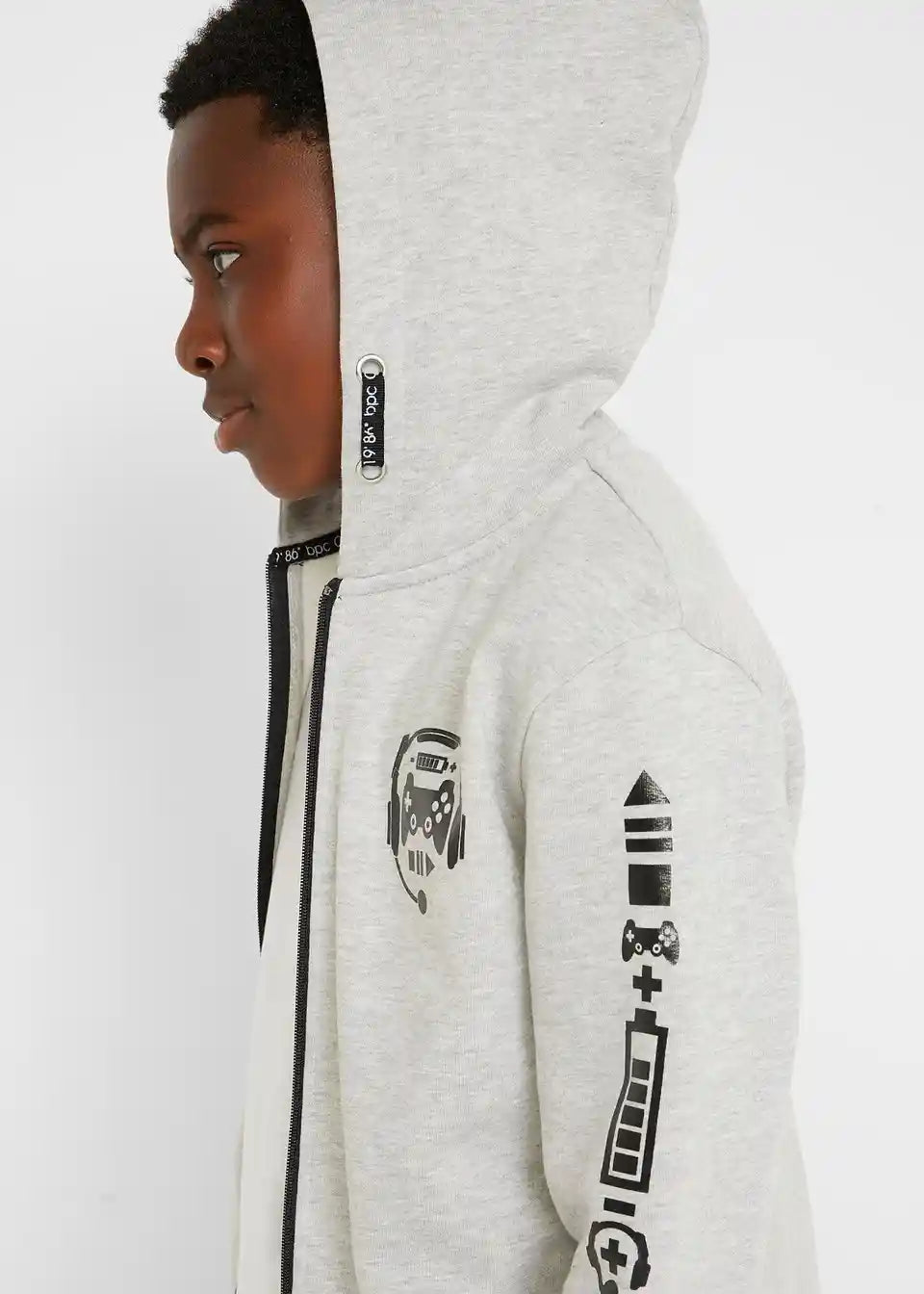 Ova moderna trenirka oduševljava svojim dizajnom za gamere. Na prednjoj strani jakne nalazi se tisak s motivom gaminga, a jakna se može brzo i lako kombinirati s trenirkom za udobnost ili trapericama i majicom za svakodnevni izgled.