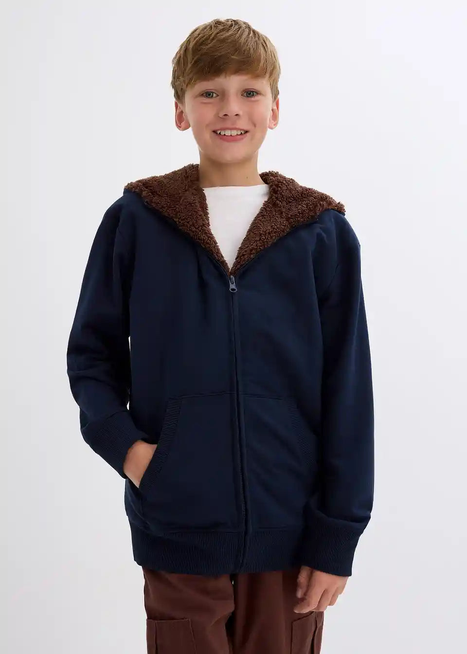 Vesta od trikoa s kapuljačom i teddy podstavom za dječake
