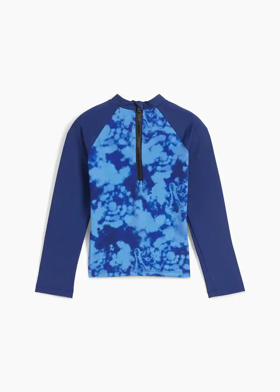 Dječja majica za kupanje s batik rukavima i patentnim zatvaračem na stražnjoj strani.