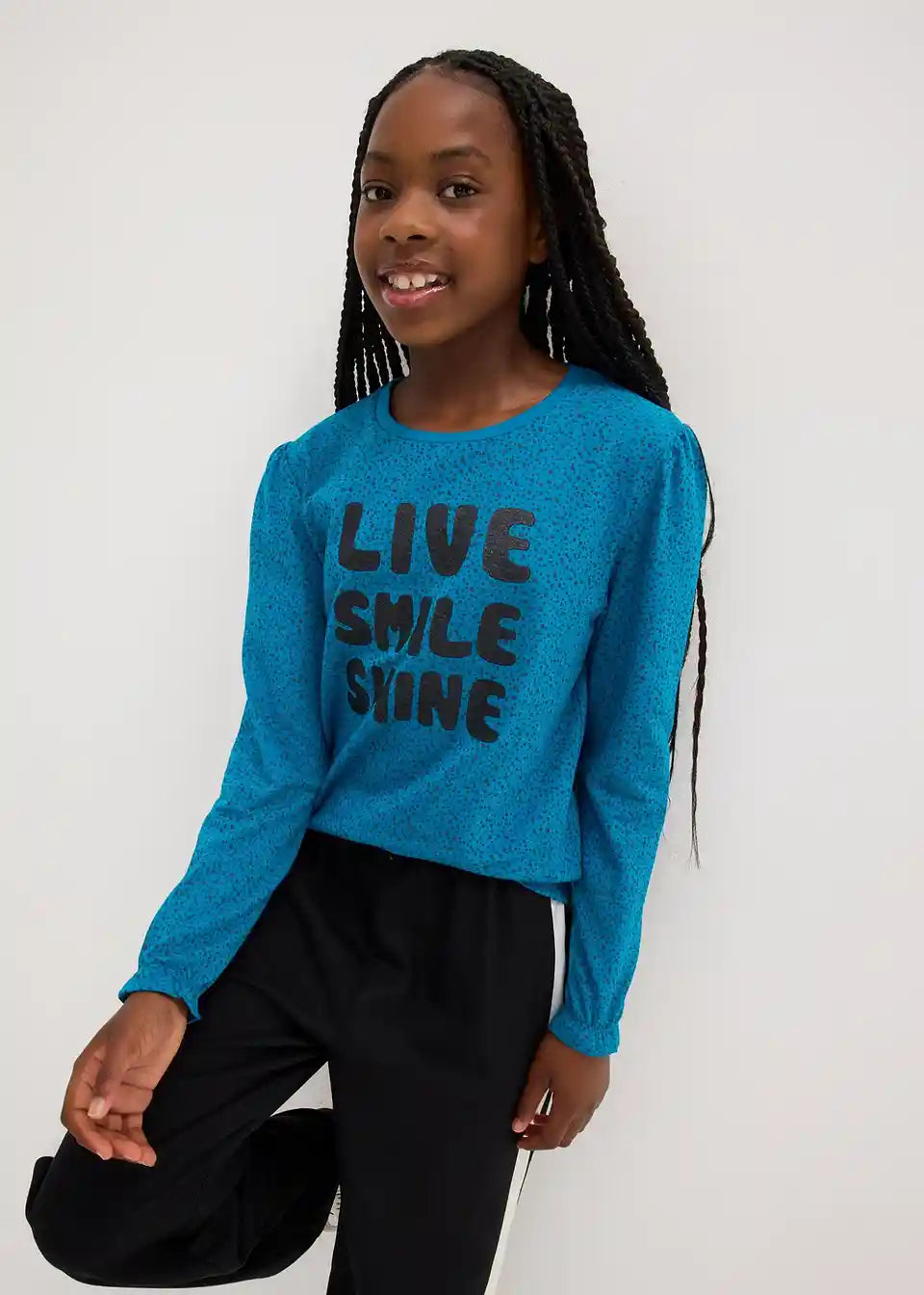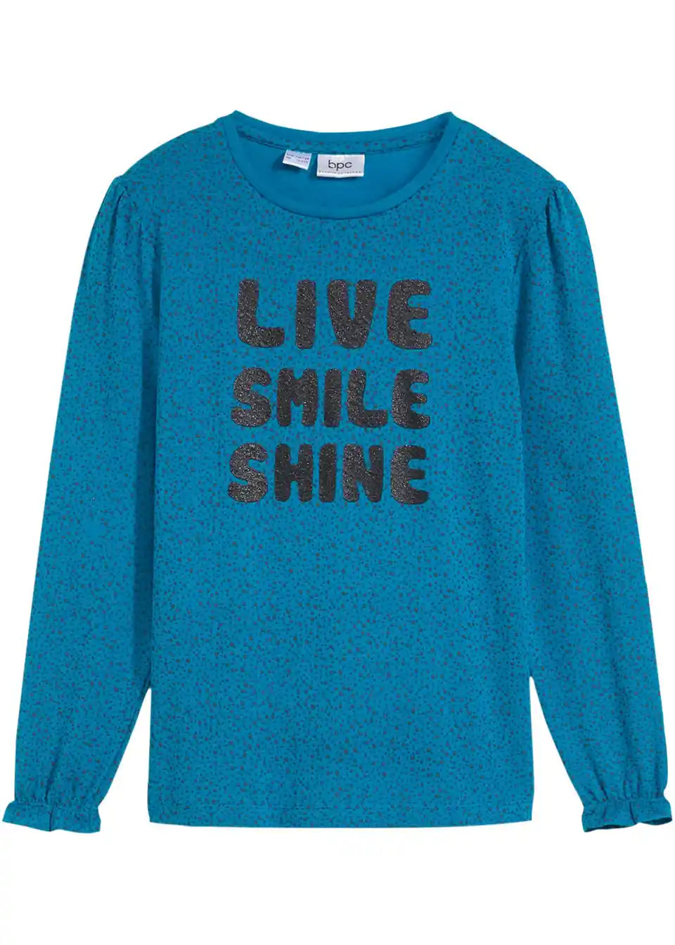 Prekrasna djevojačka majica s dugim rukavima i sjajnim printom