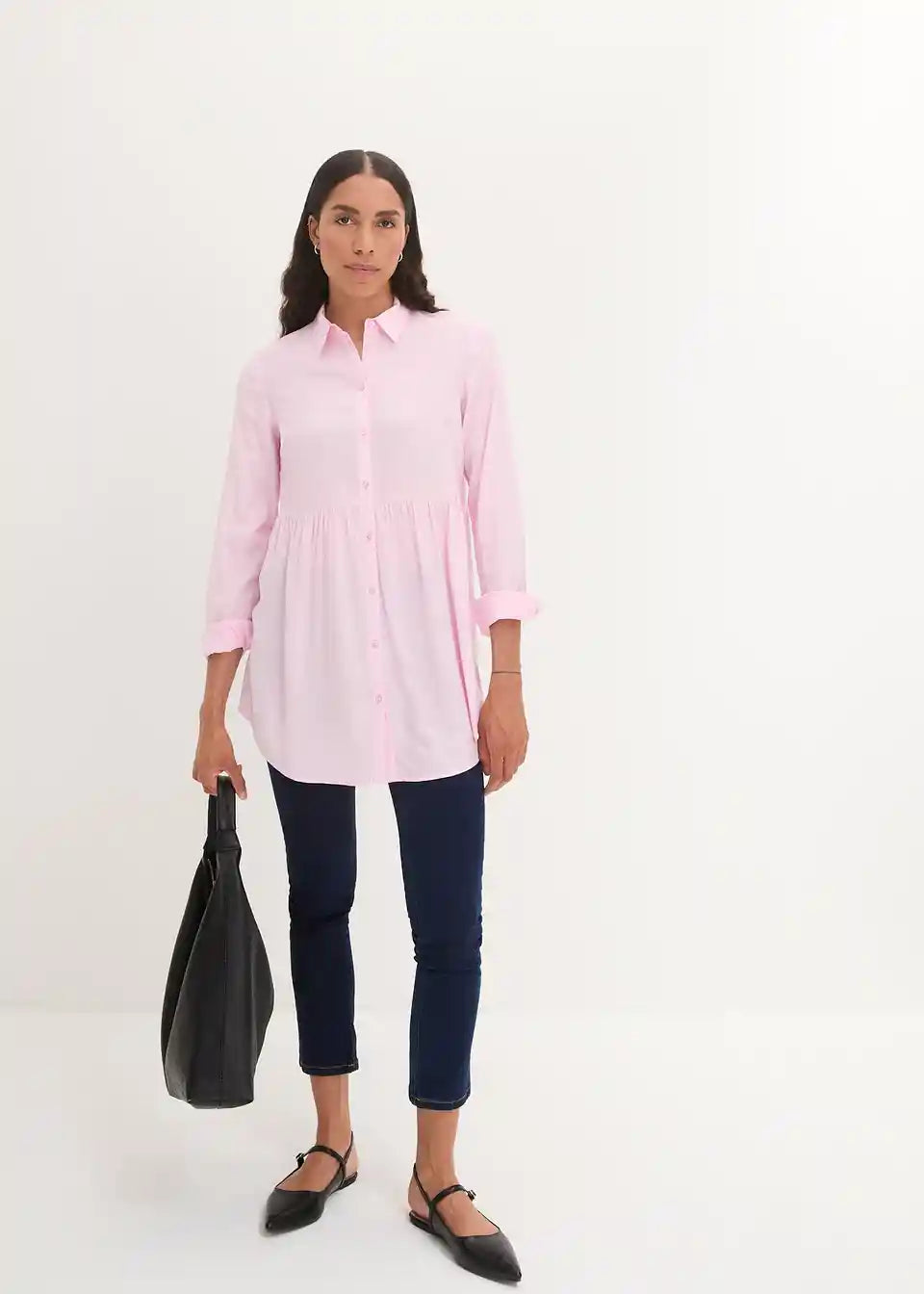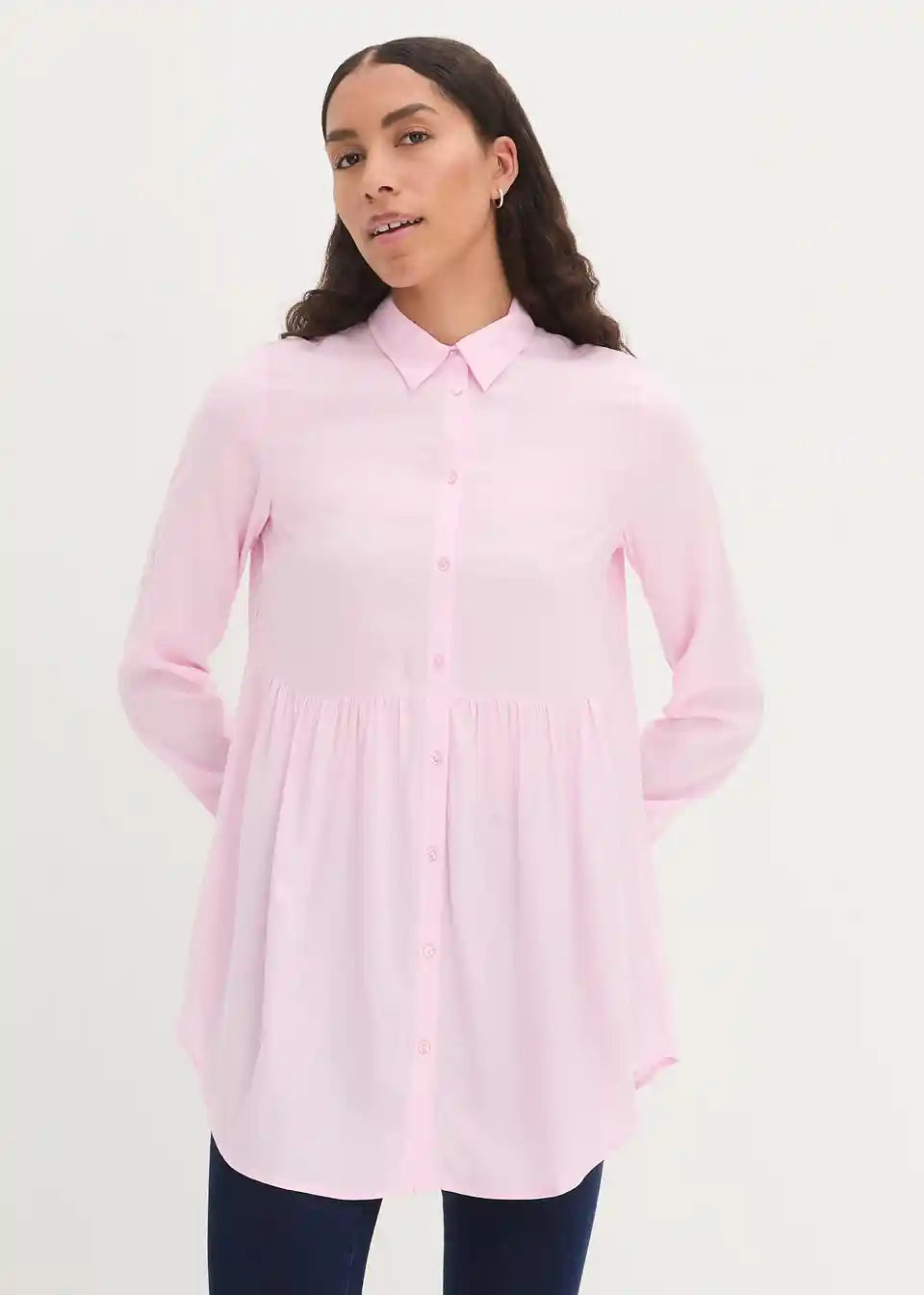 Feminina tunika od viskoze s volanima i Kent ovratnikom