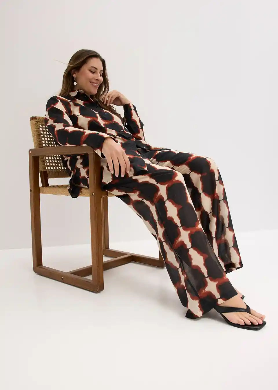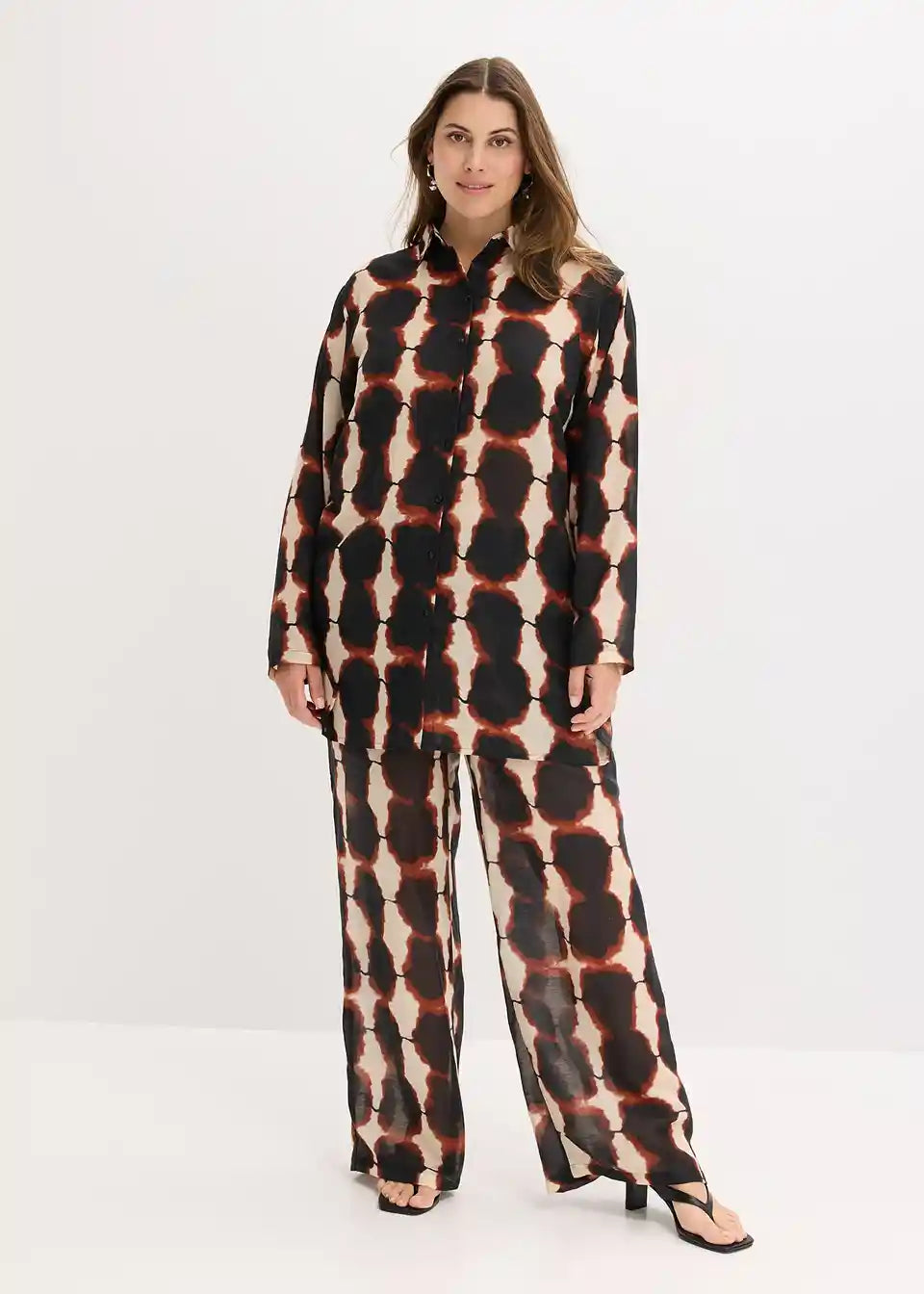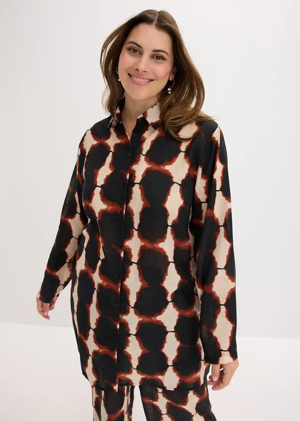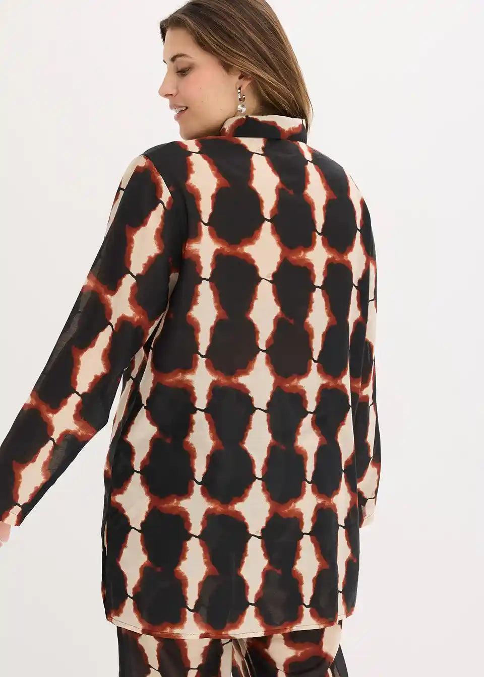 moderna duga bluza s Batik printom i bočnim prorezima