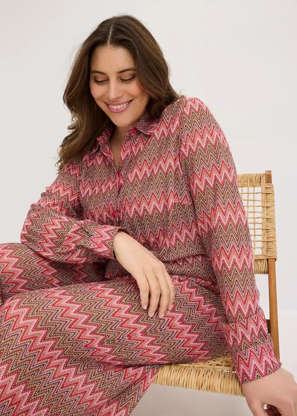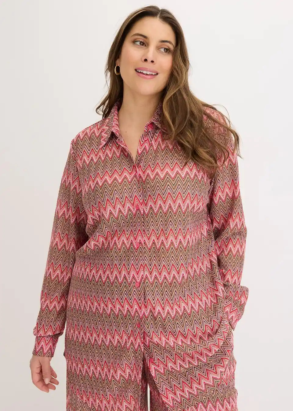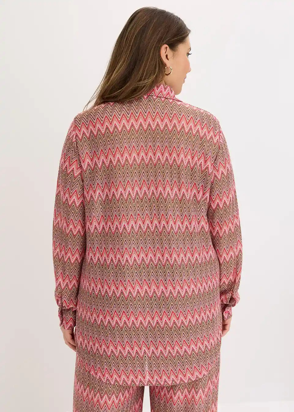 moderna, ležerno krojena duga bluza od jerseya s heklanim izgledom