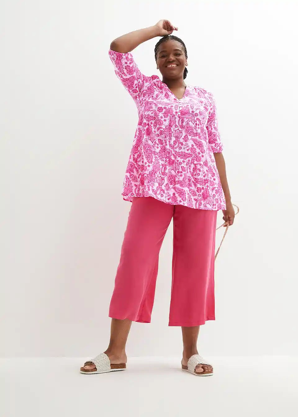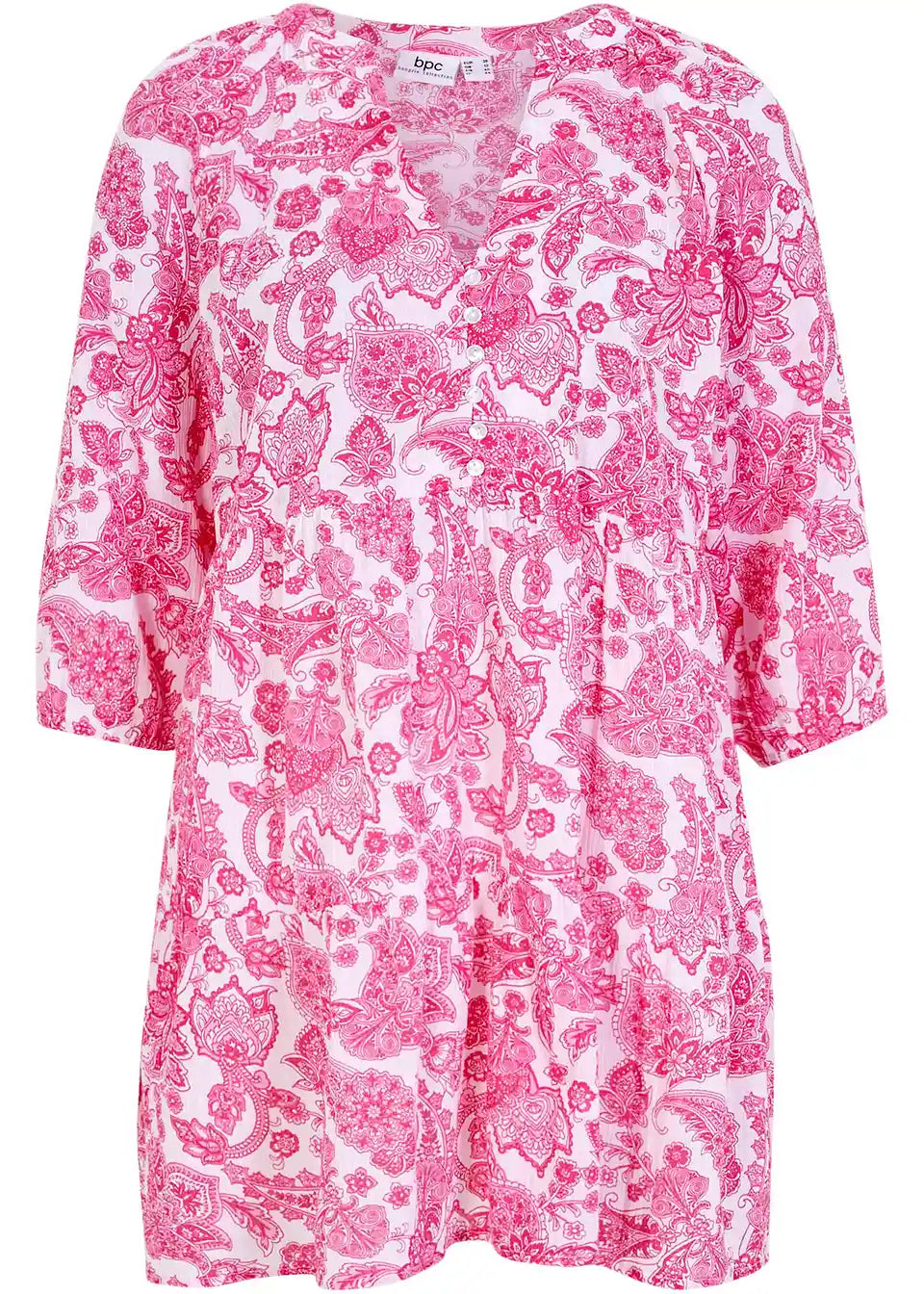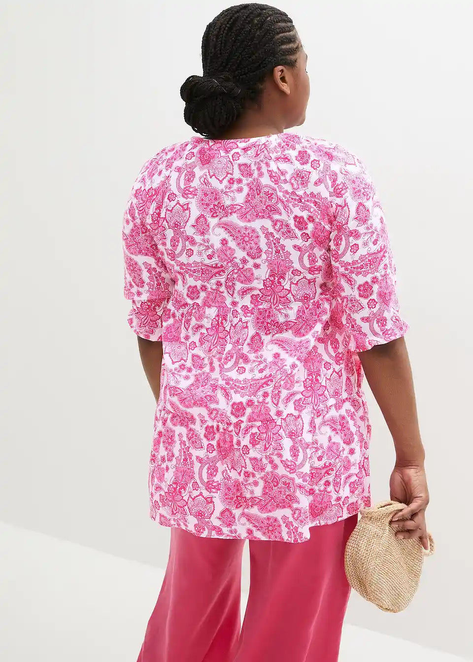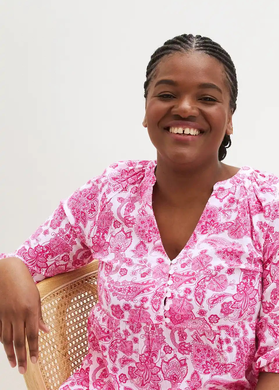 Mekana bluzica od pamučnog crinklea s cvjetnim printom nježno pada preko rukava