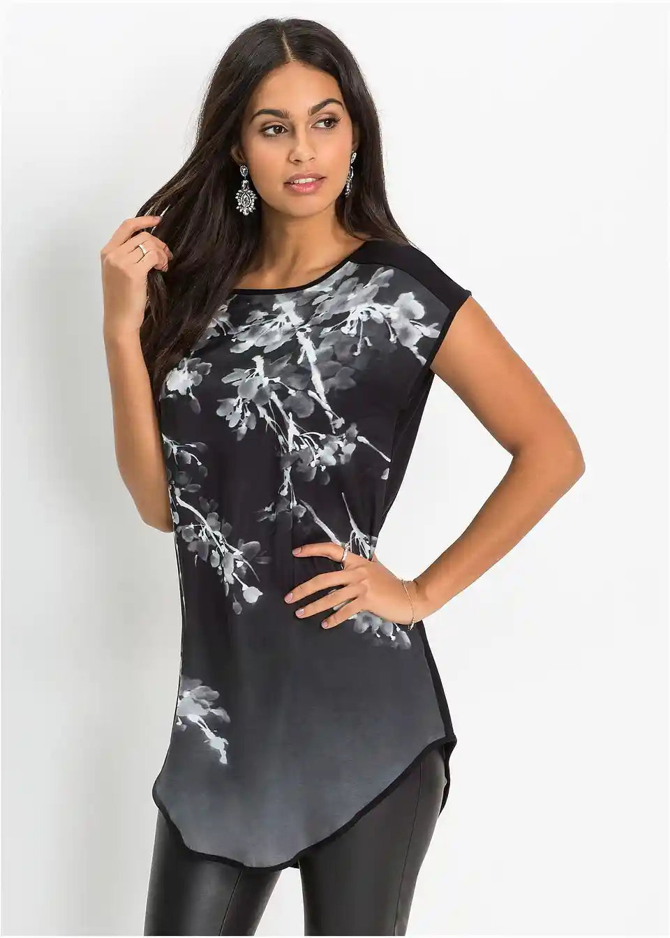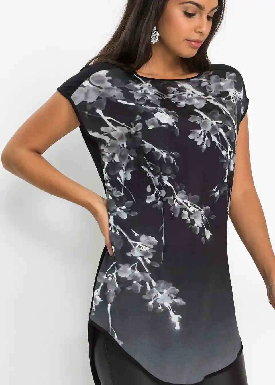 Tiskana dugačka majica s jednobojnom stražnjom stranom