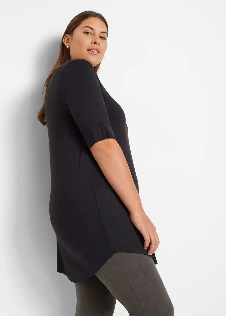 Udobna dugačka majica od viskoze s zaobljenim rubom