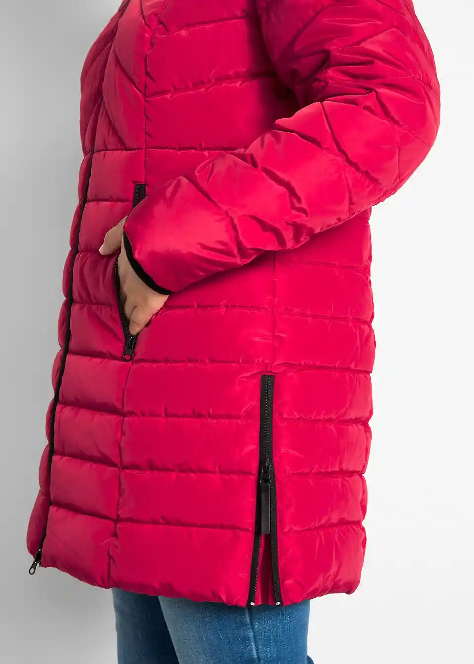 Ova prošivena jakna s kratkim ovratnikom oduševljava s obje strane: visokim komforom nošenja i opuštenim izgledom. Model marke bpc dolazi u ugodnoj duljini s odvojivom kapuljačom i vezicom. Pomoću bočnih patentnih zatvarača jakna se može proširiti u području bokova. Rukavi s rebrastim manžetama u kontrastnim bojama naglašavaju ležeran izgled. Praktična dugačka prošivena jakna s podstavom zatvara se dvosmjernim patentnim zatvaračem.