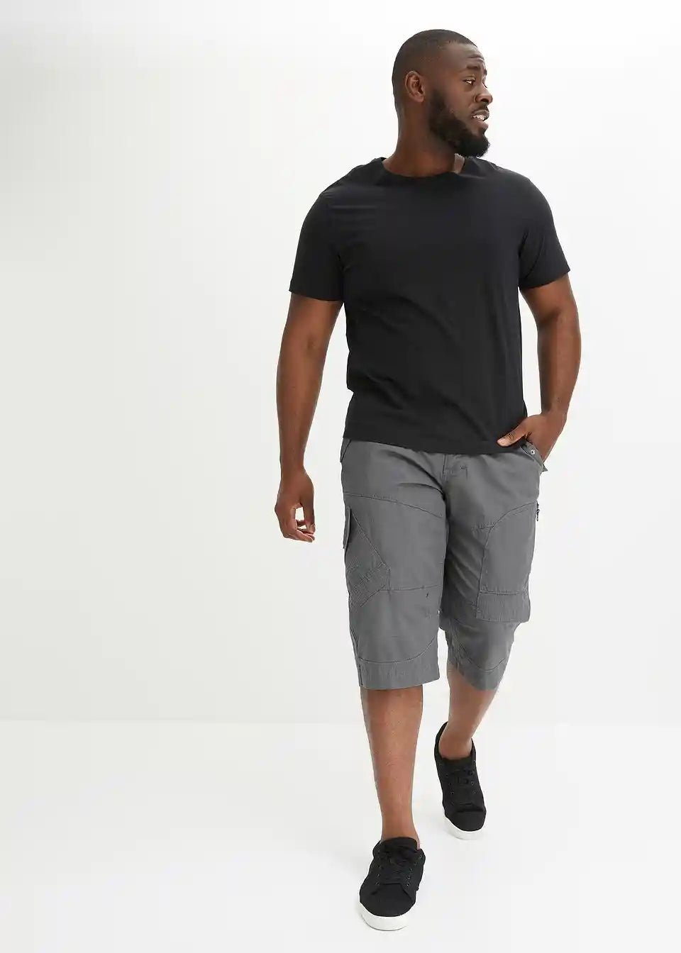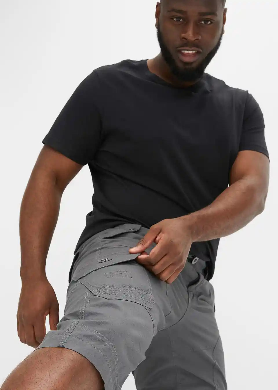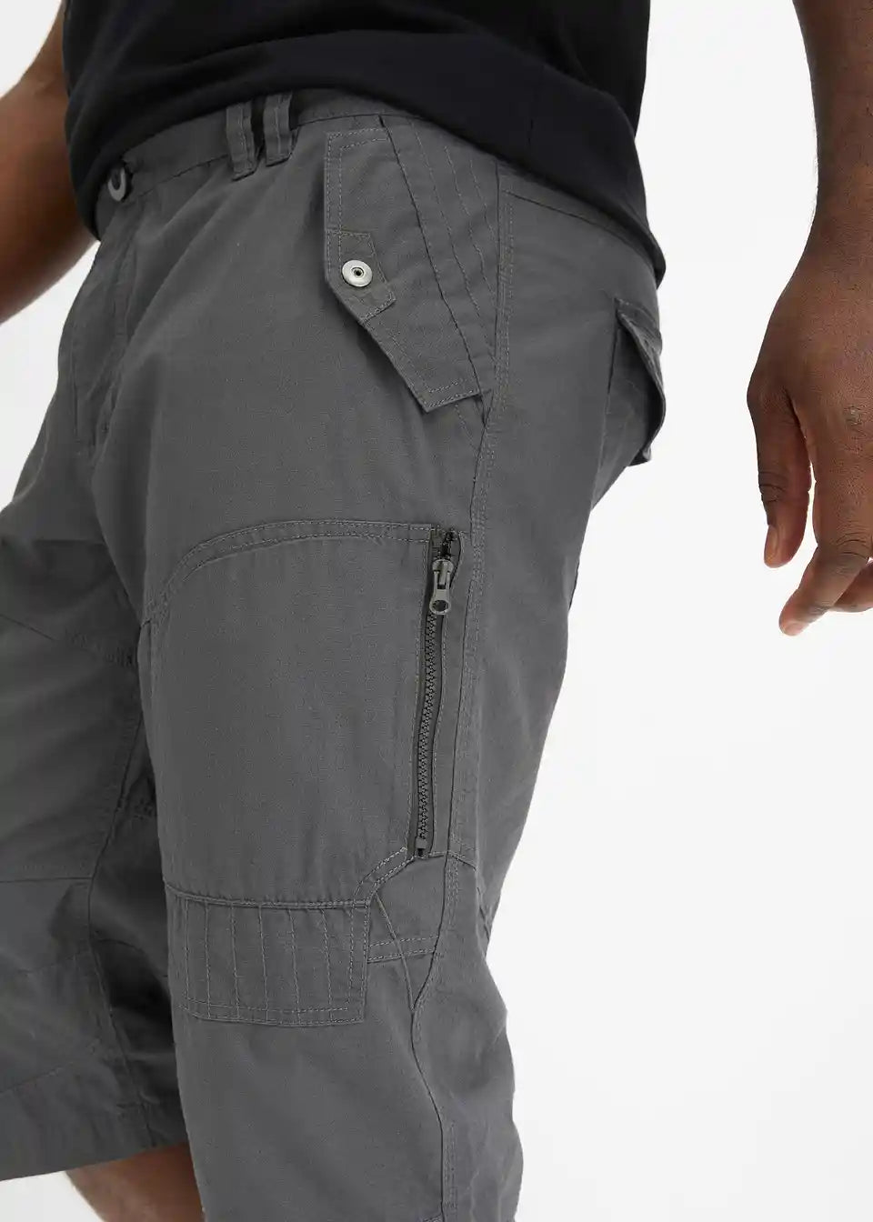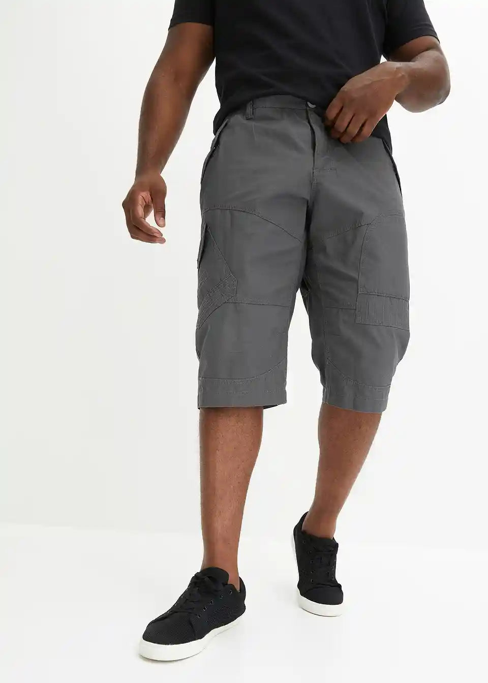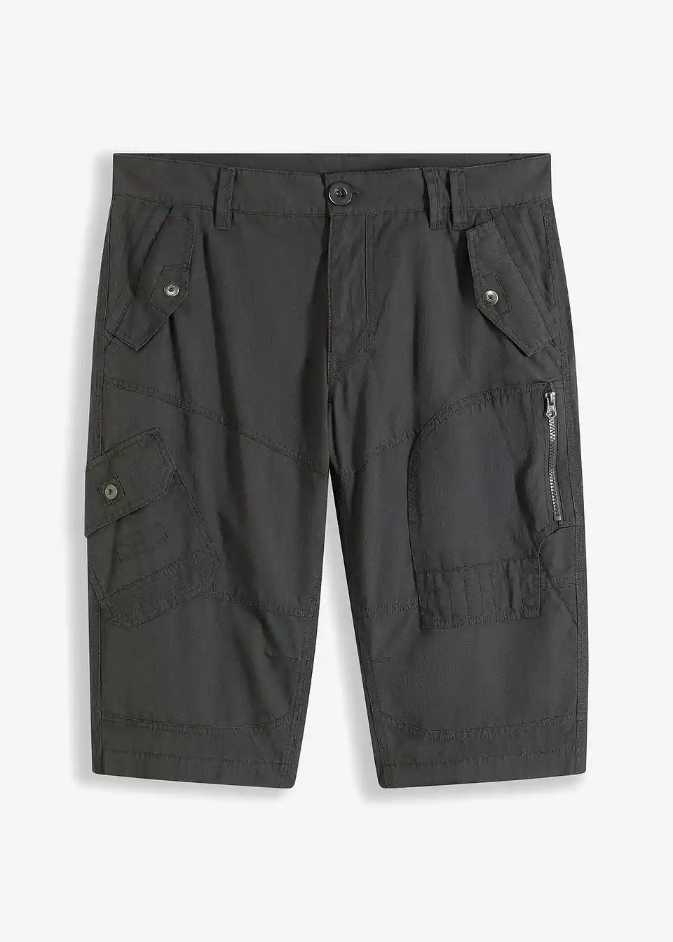 Ove moderne muške duge bermude ističu se brojnim džepovima i ukrasnim šavovima. Prednji džepovi s umetkom dizajnirani su s preklopom i gumbom. Sa strane nogavice nalaze se još dva džepa: jedan s preklopom i drukerom, a drugi sa bočnim patentnim zatvaračem. Dva stražnja džepa s preklopom dopunjuju trendovski izgled koljena prekrivajućih dugih bermuda u Regular Fit kroju.