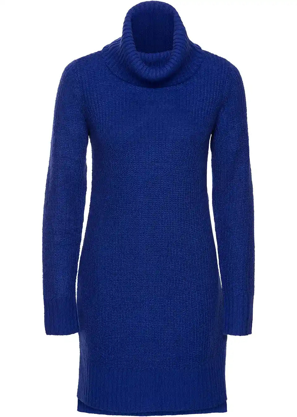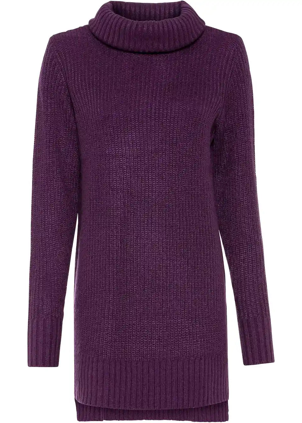 Ležerno krojeni dugi pleteni pulover s dužim stražnjim dijelom i bočnim prorezima