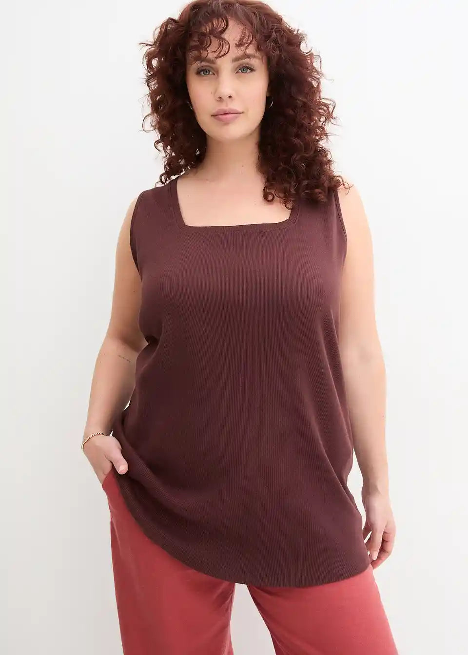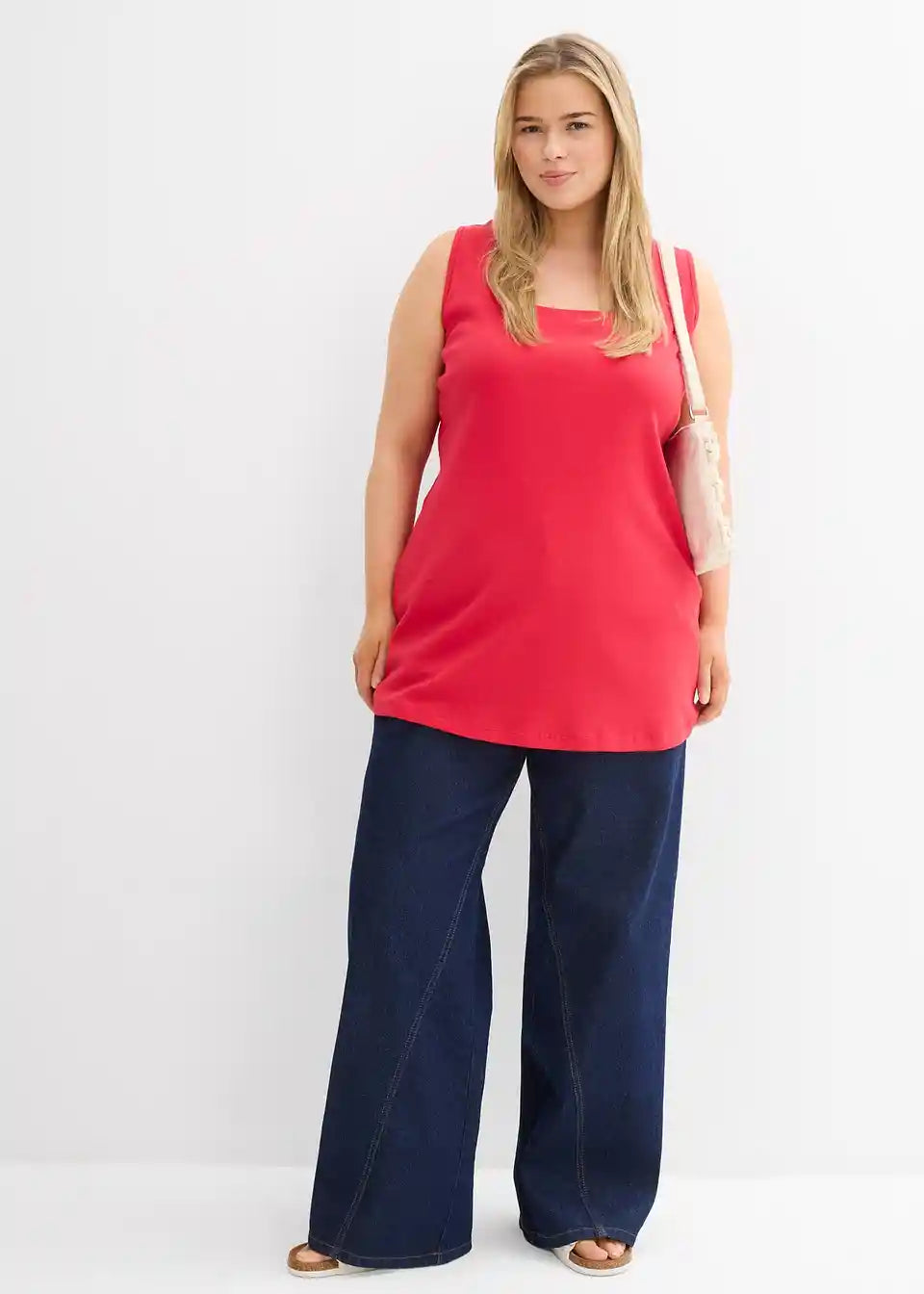 Prilegajući dugi top s Carrè-izrezom od 100% pamuka